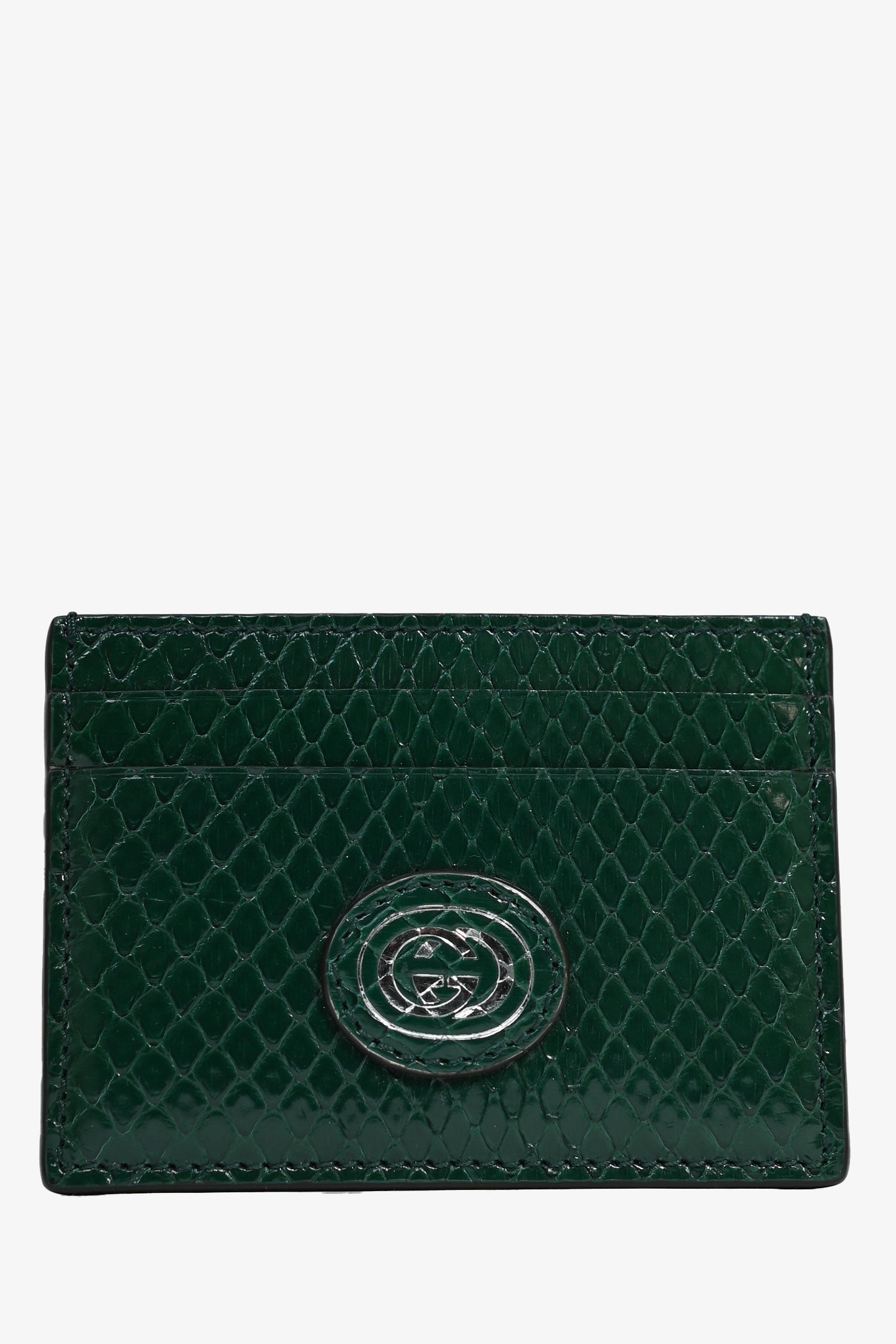 Refresh availabilityGucci Green Python Double G Card Holder. 5 card slots. Silver-tone hardware. Tonal stitching.