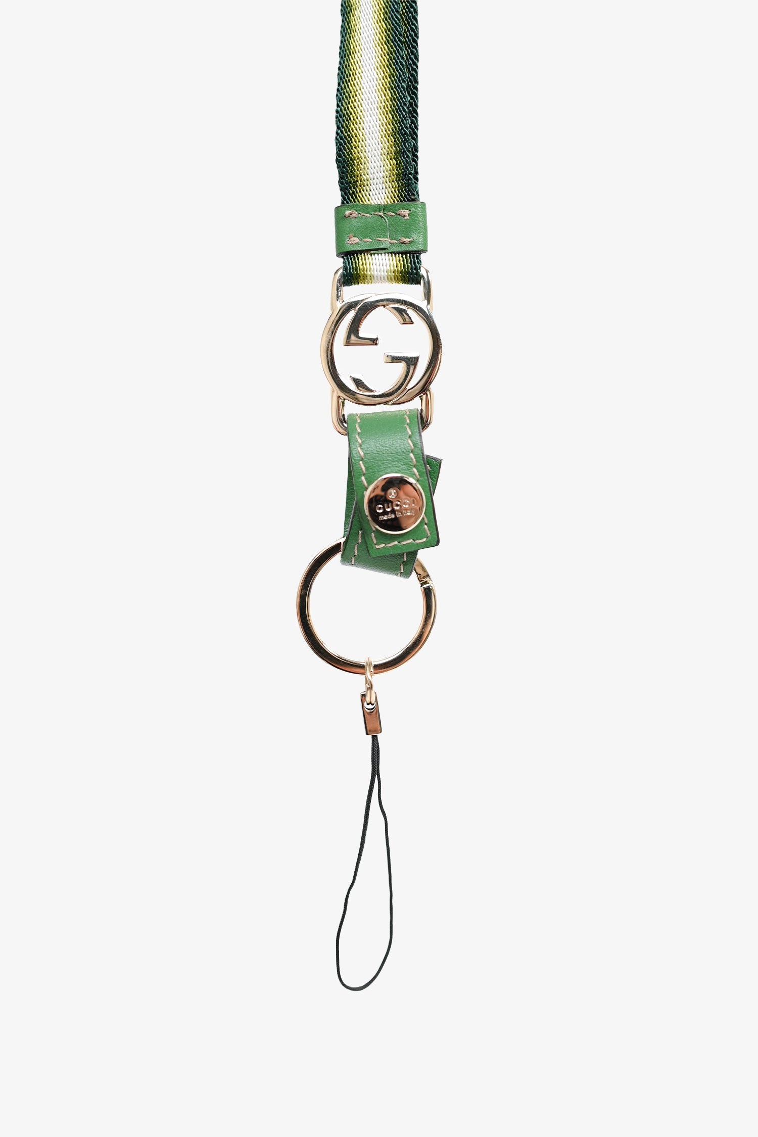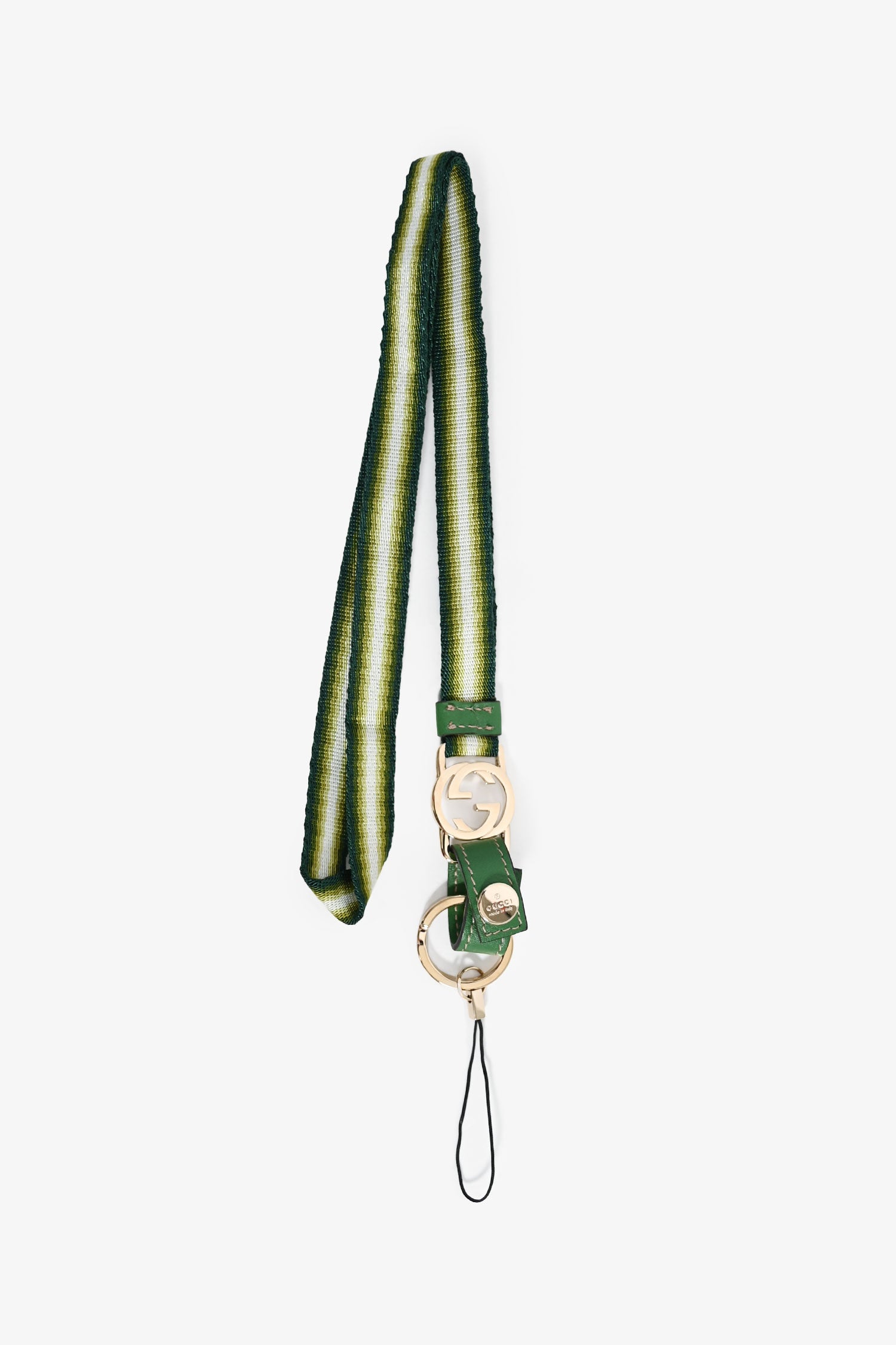 Refresh availabilityGucci Green Ribbon GG Lanyard Key Holder. Snap button closure. Gold-tone hardware. Tonal stitching.