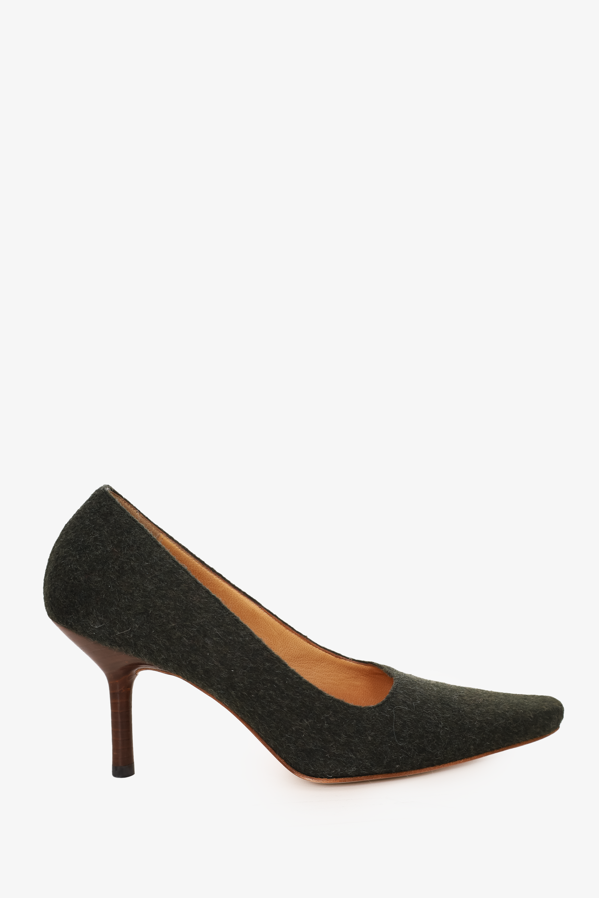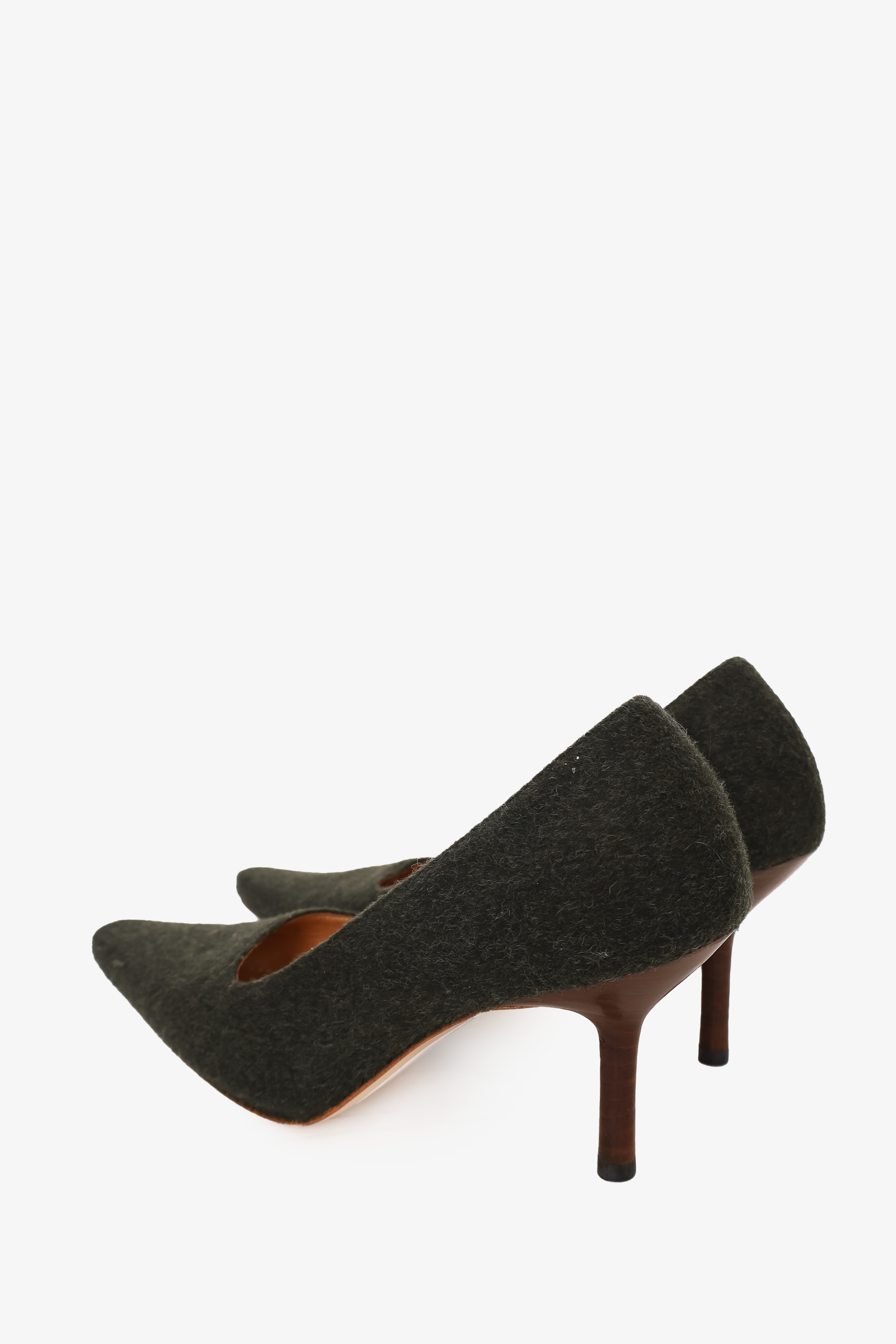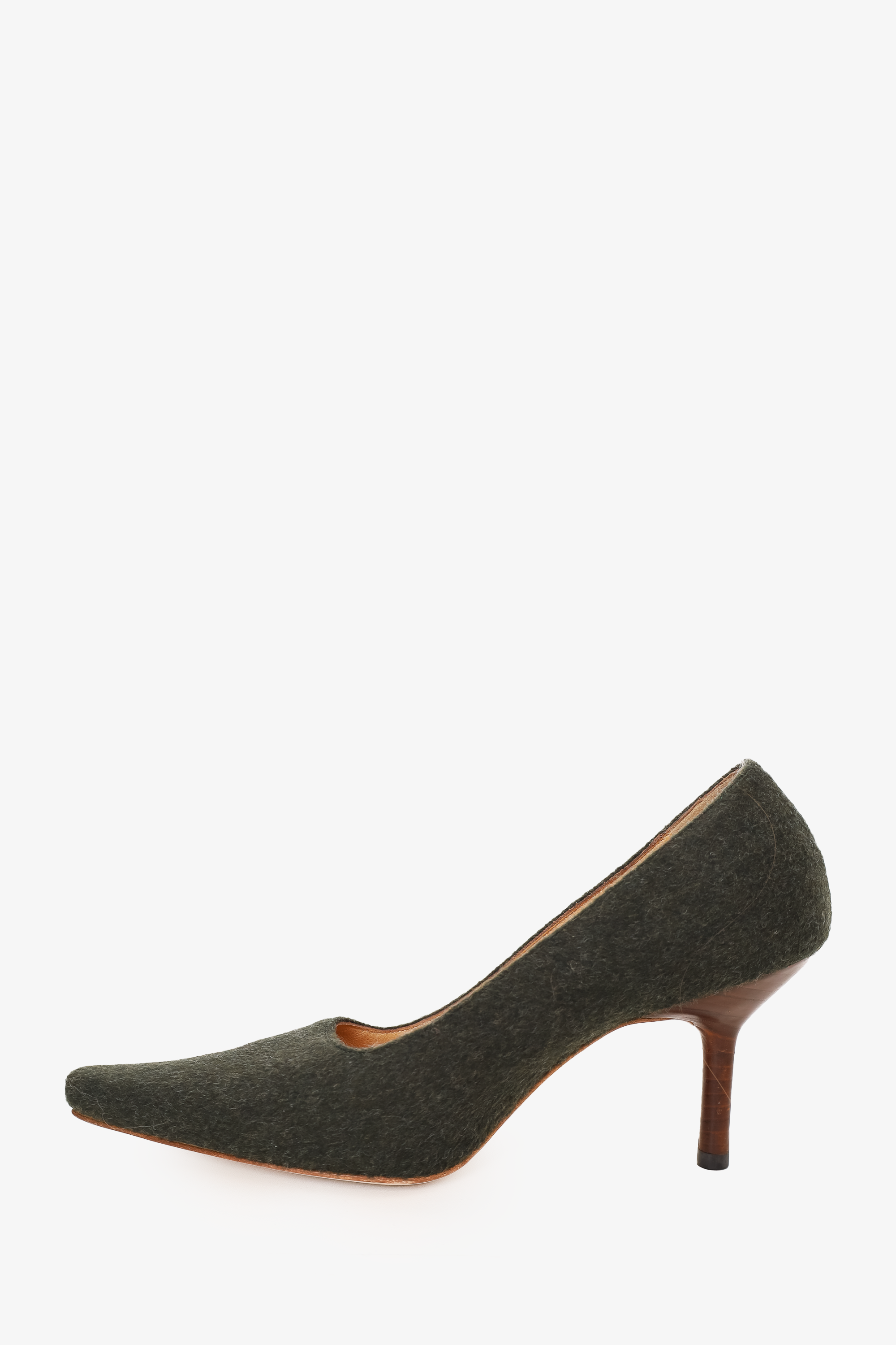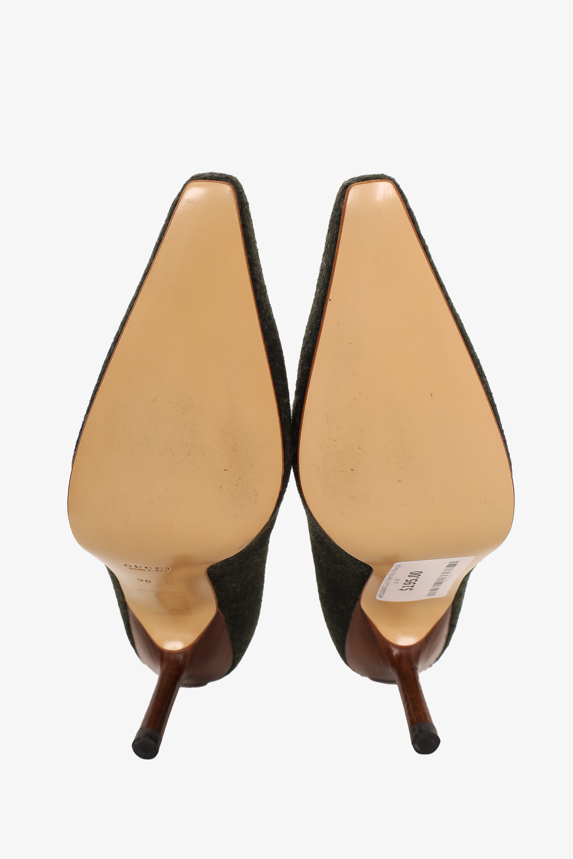 Refresh availabilityGucci Green Wool Pumps. Slide-on. Pointed toe. Tonal stitching.
