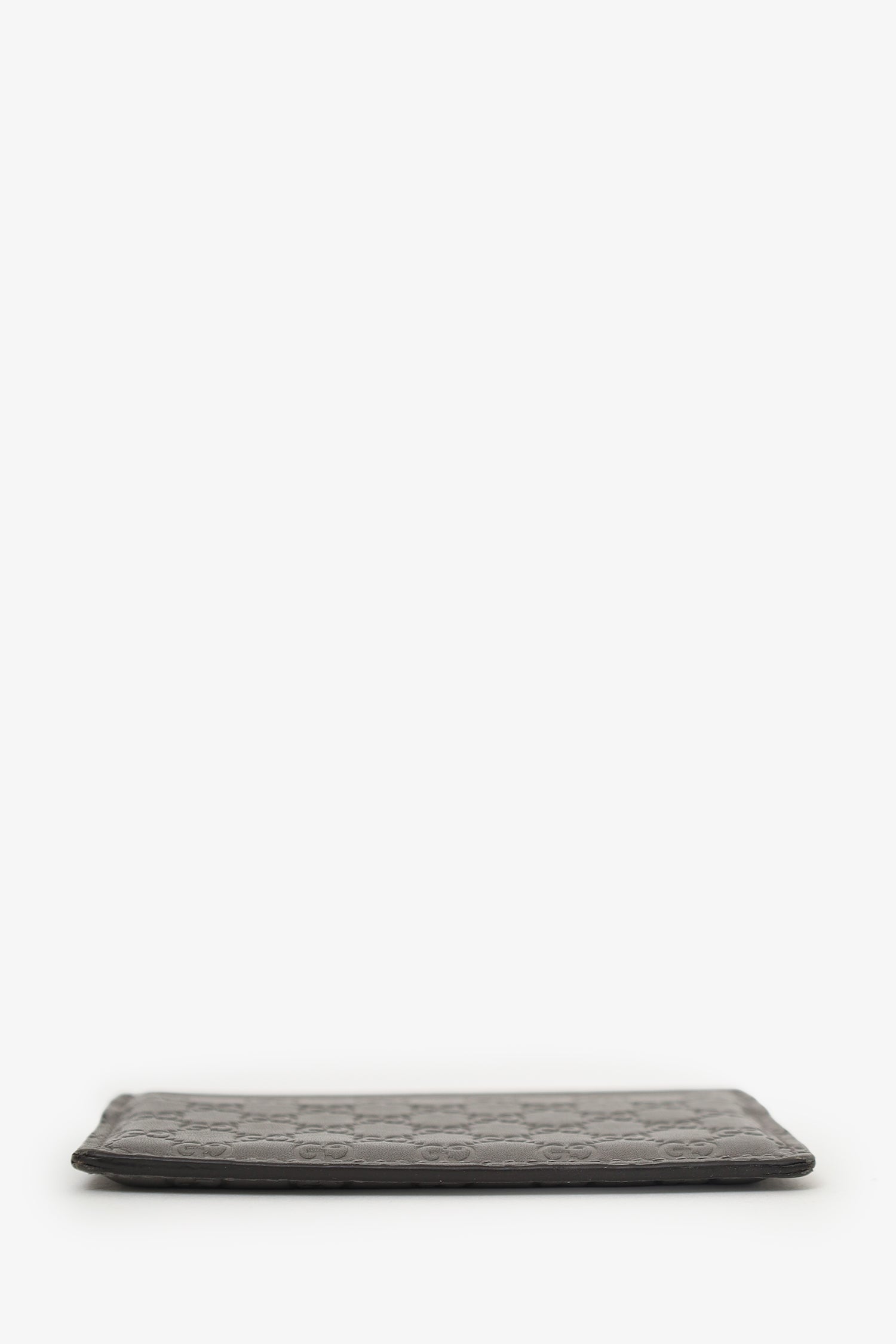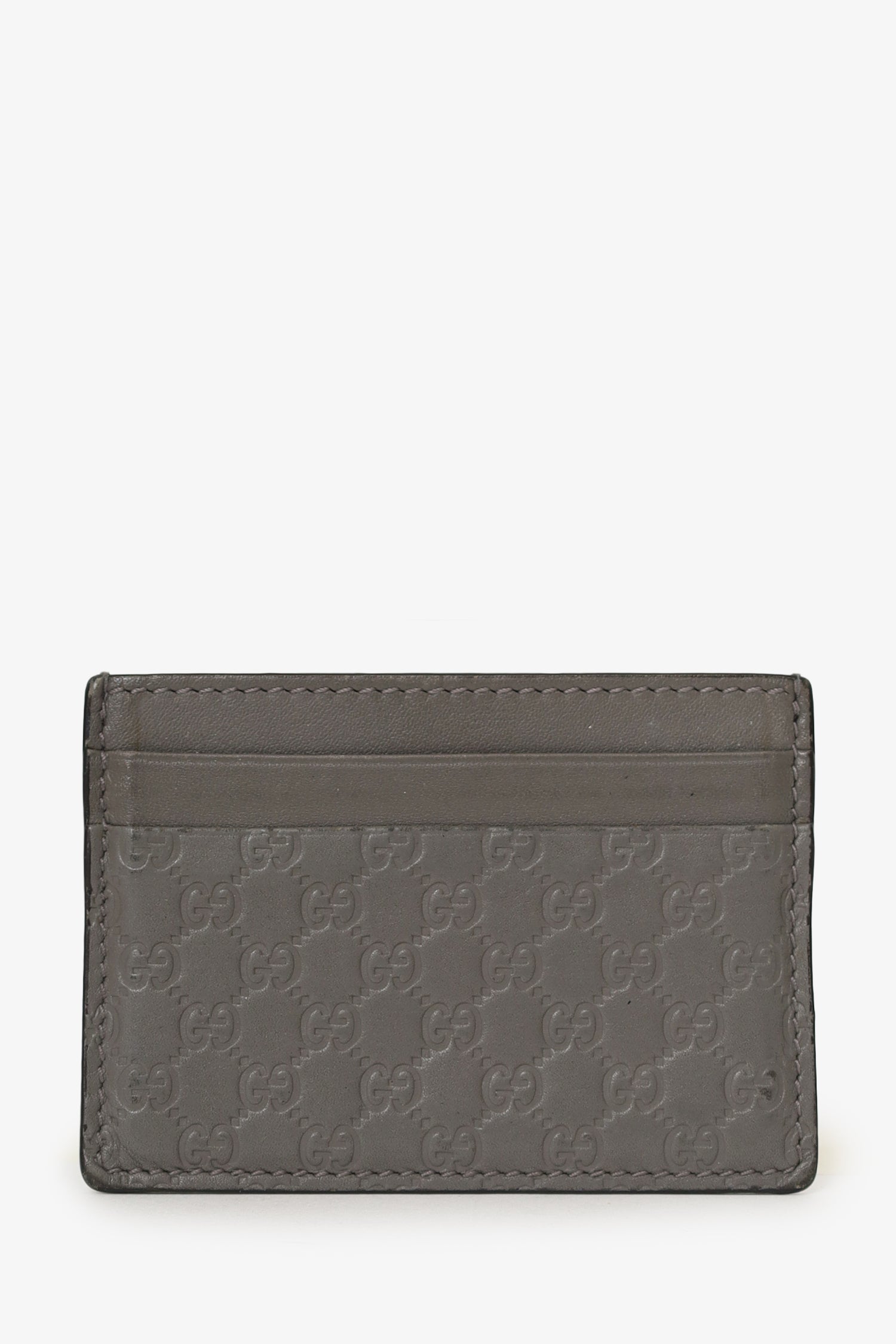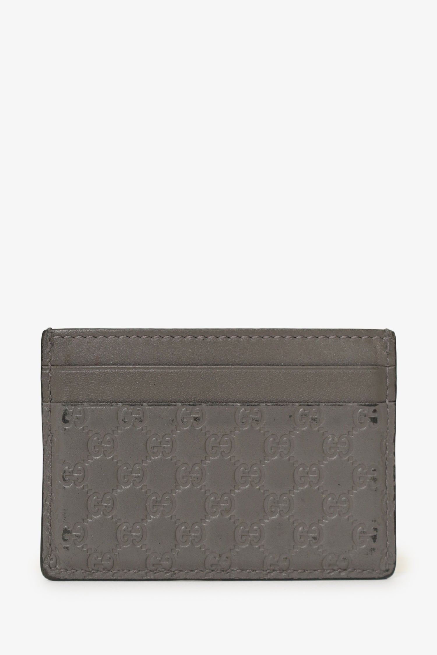 Refresh availabilityGucci Grey Leather 'GG' Embossed Card Holder. 5 exterior slip pockets; 2 front, 2 rear, and 1 middle. Tonal stitching.
