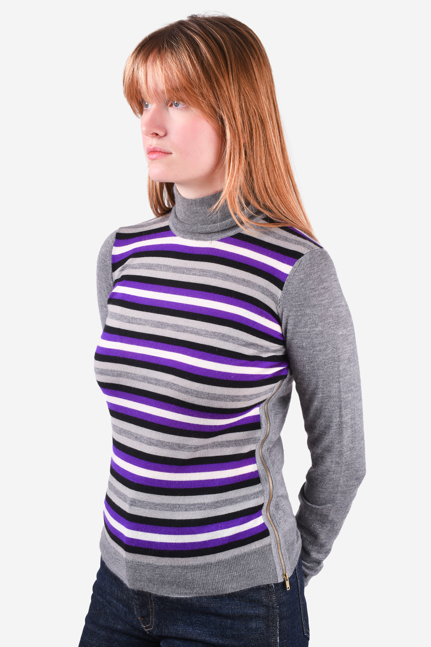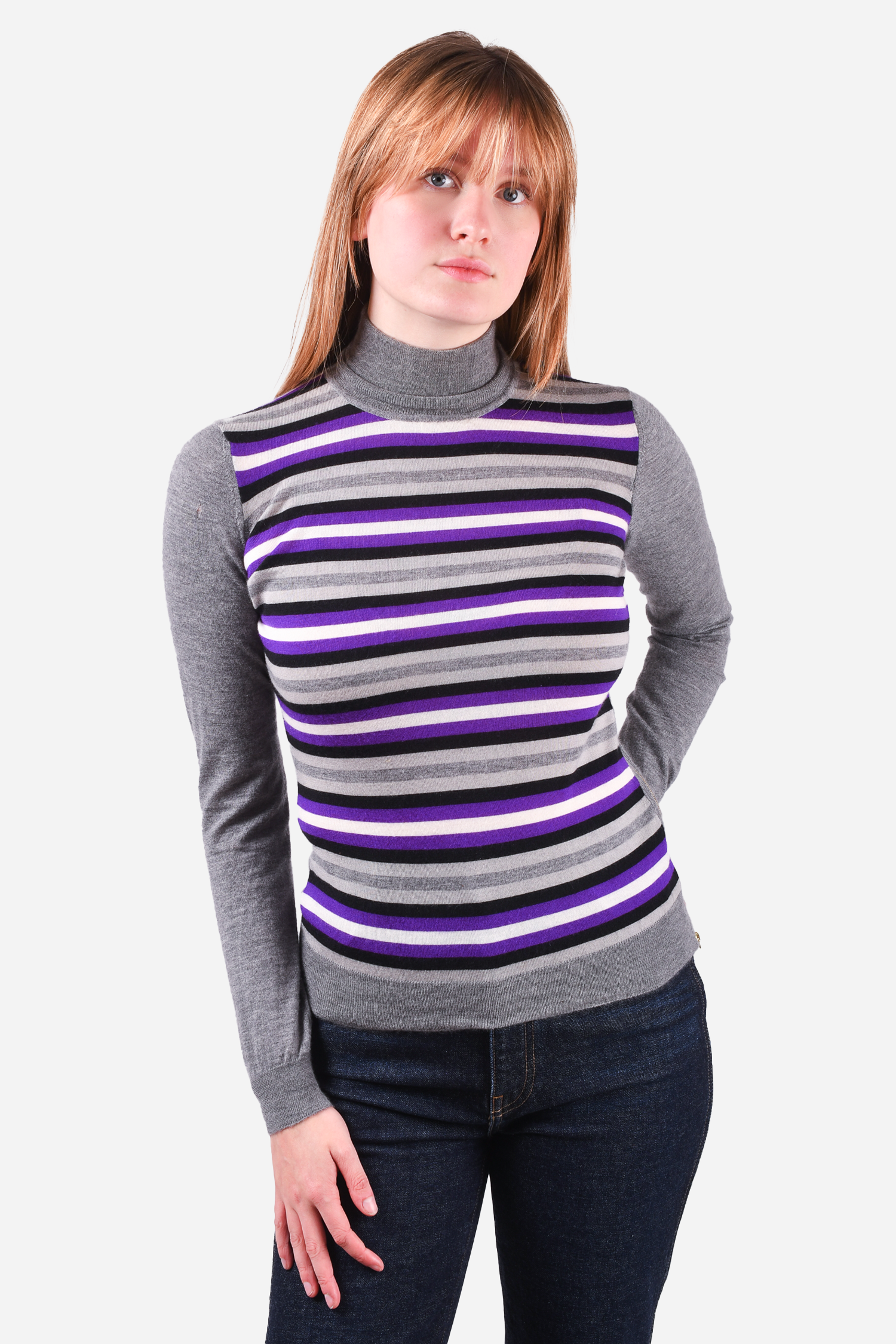 Refresh availabilityGucci Grey/Purple Cashmere Turtleneck Sweater. Pull-on. Tonal stitching.
