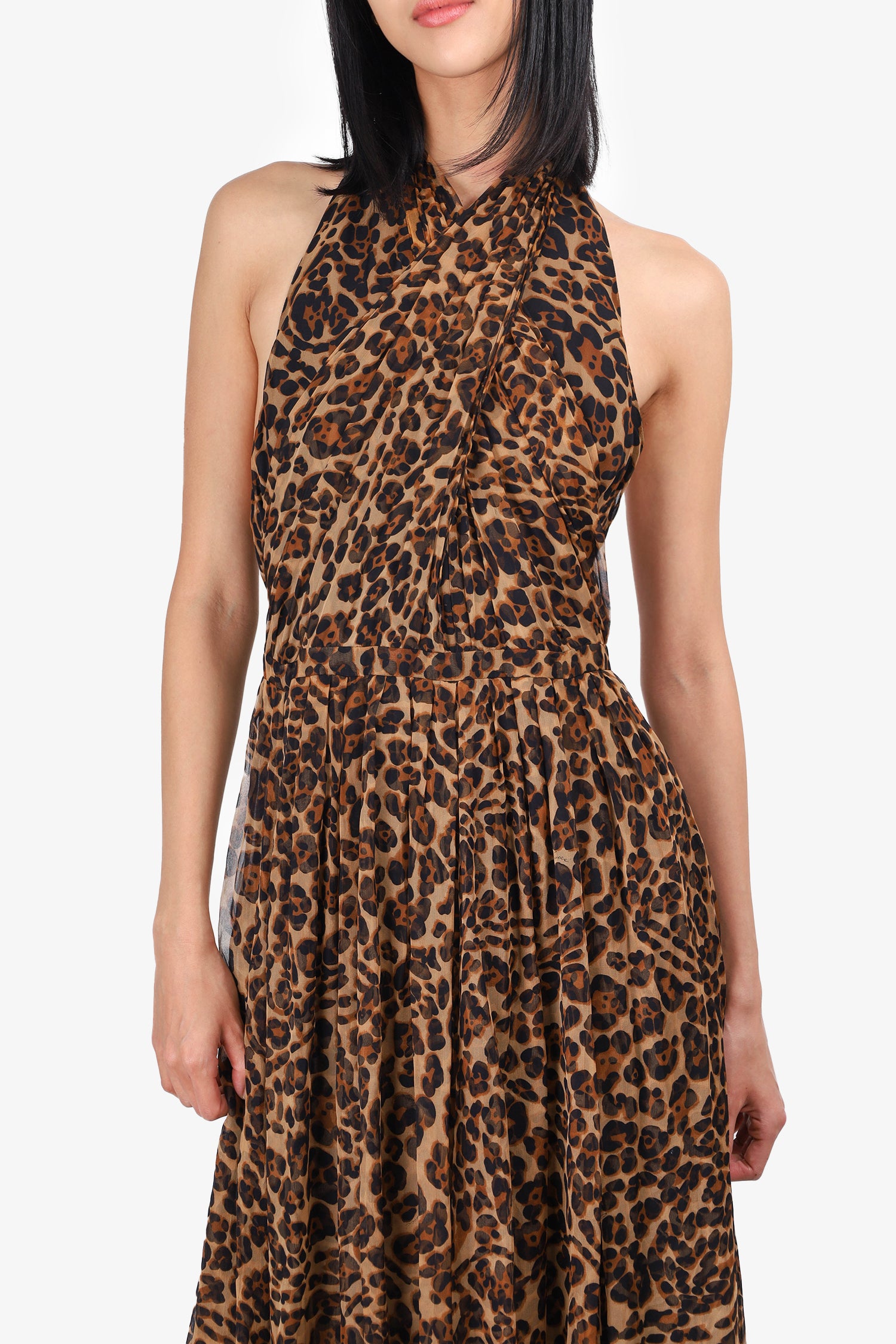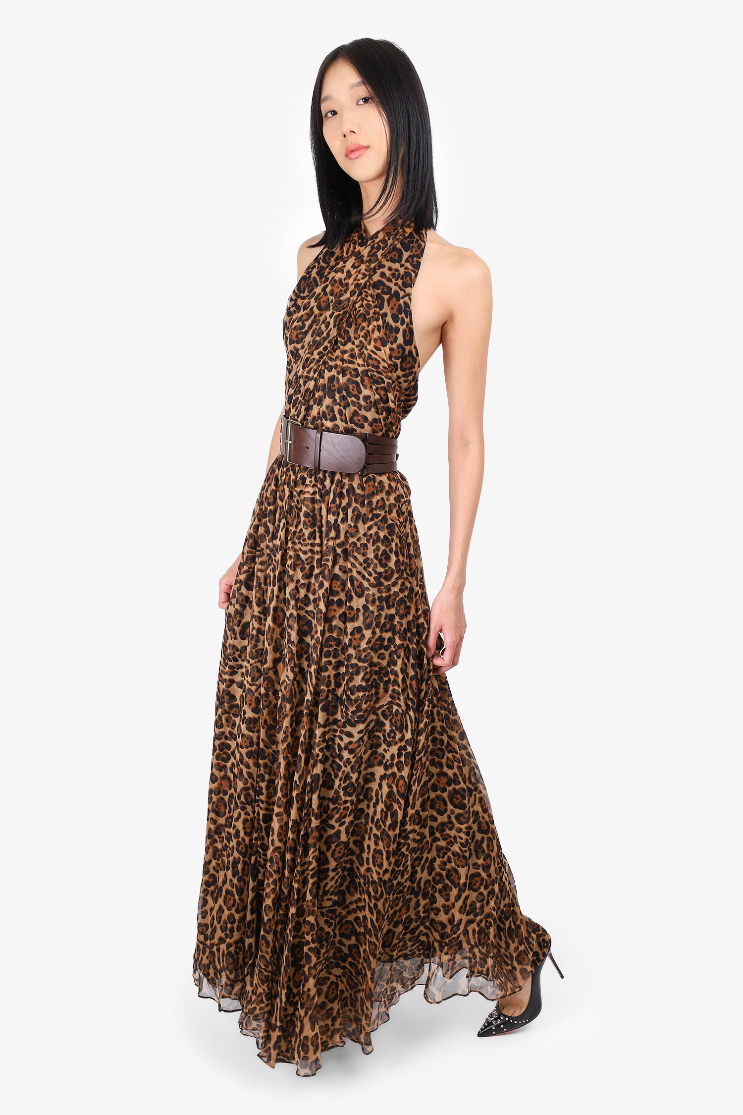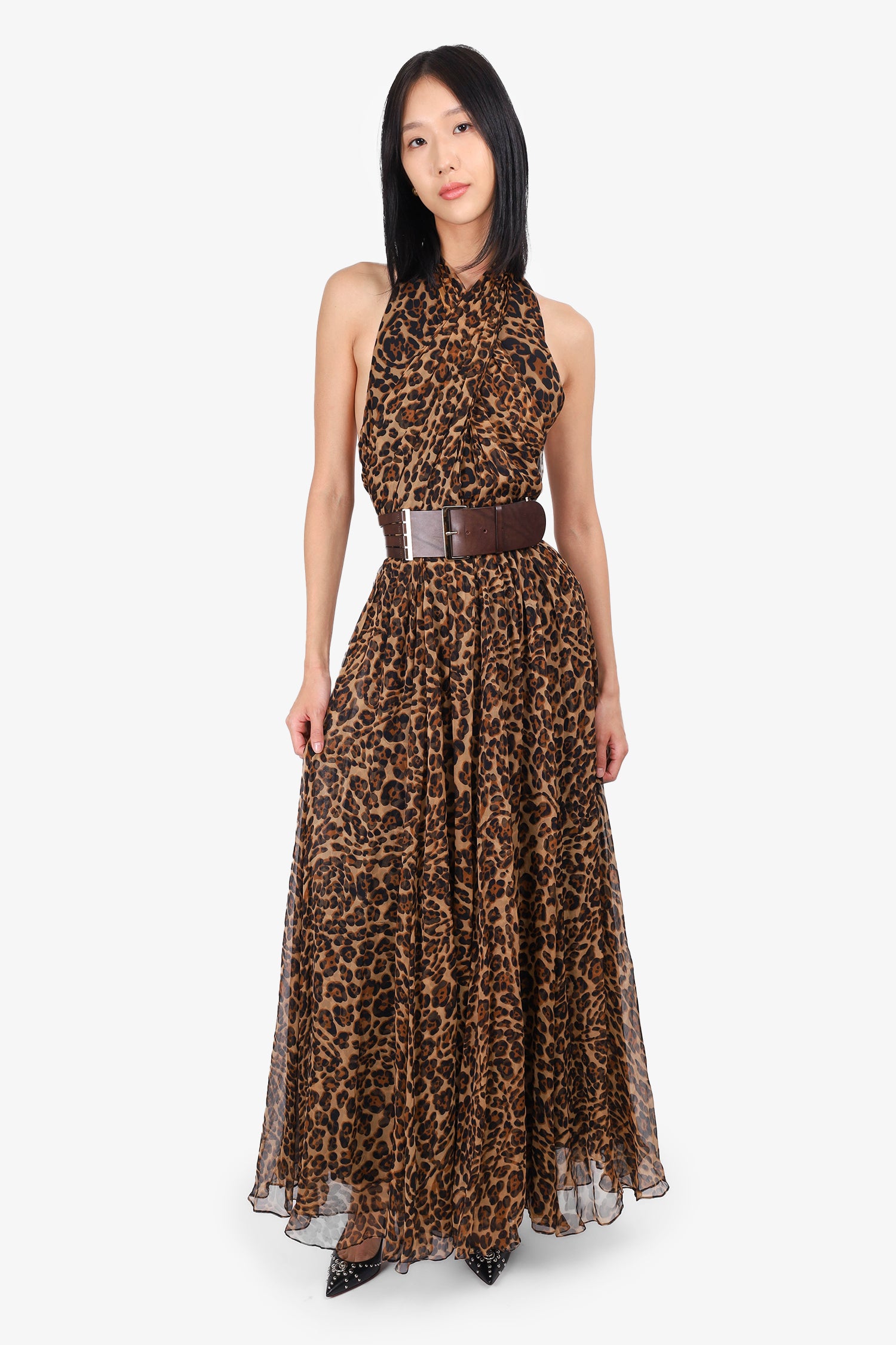 Refresh availabilityGucci Leopard High Neck Gown. Rear zip and button closure. Tonal stitching.