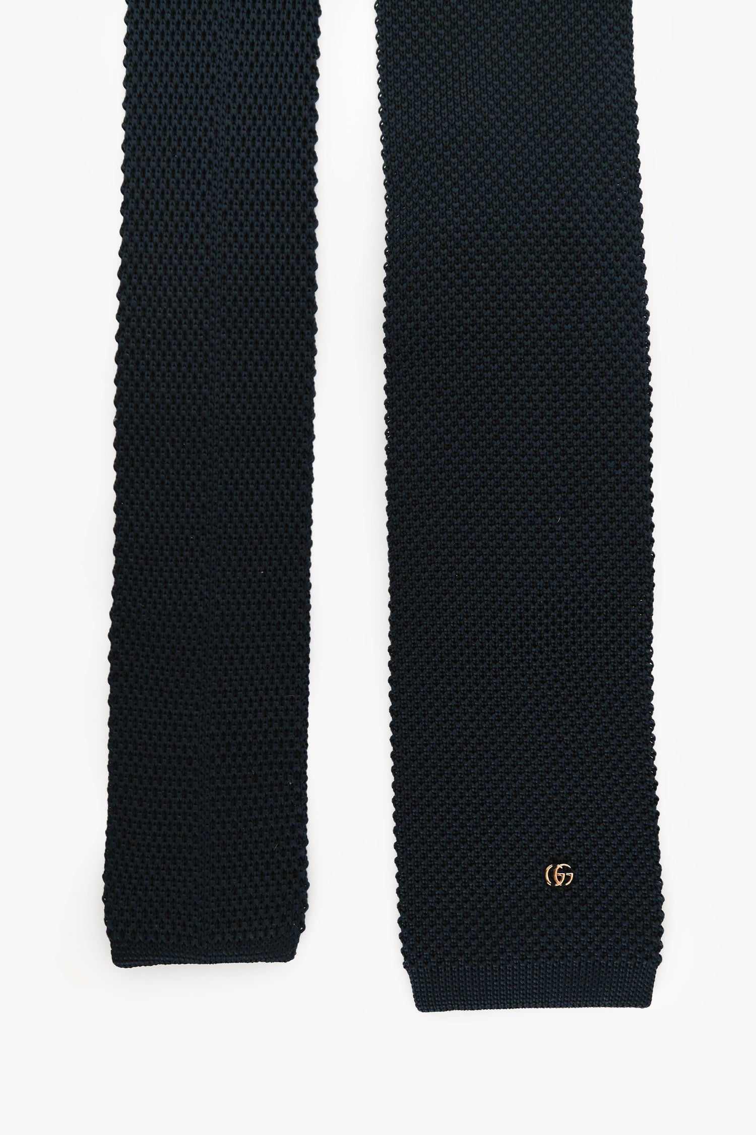 Refresh availabilityGucci Navy Blue Knit Tie with Gold GG Mens. Gold-tone hardware. Tonal stitching.