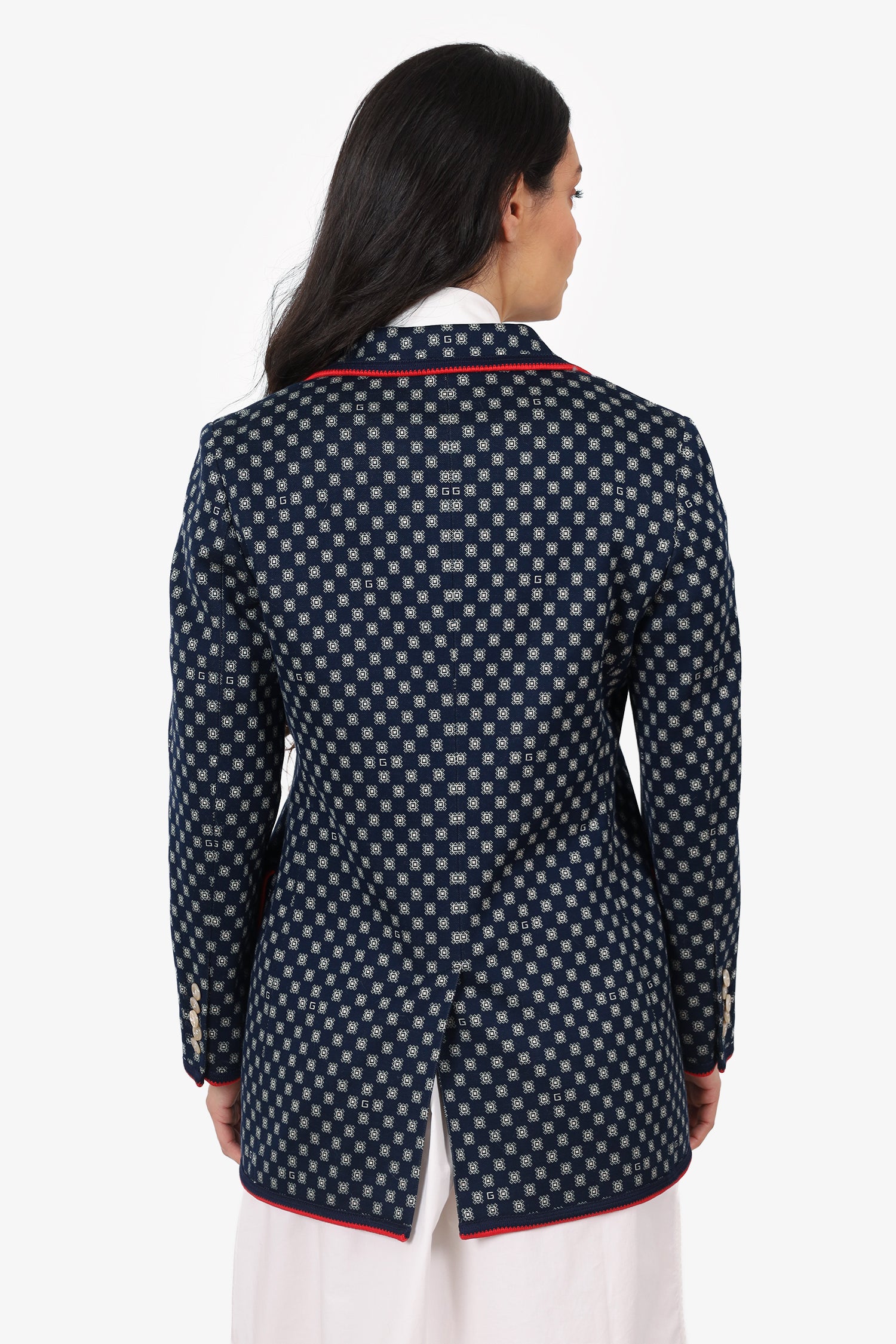 Gucci Navy Blue/Red Trim Printed Single Breasted Blazer Size 44