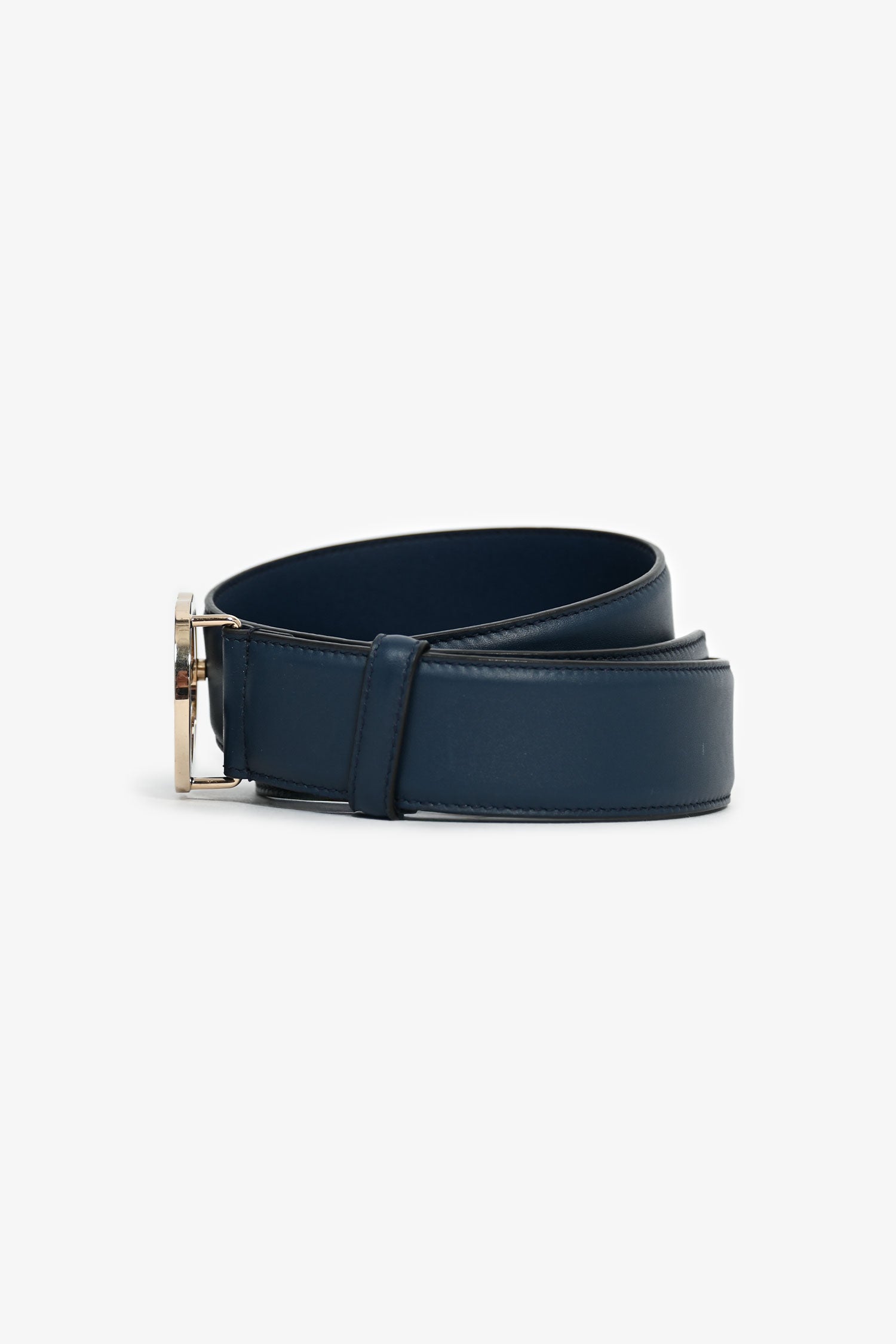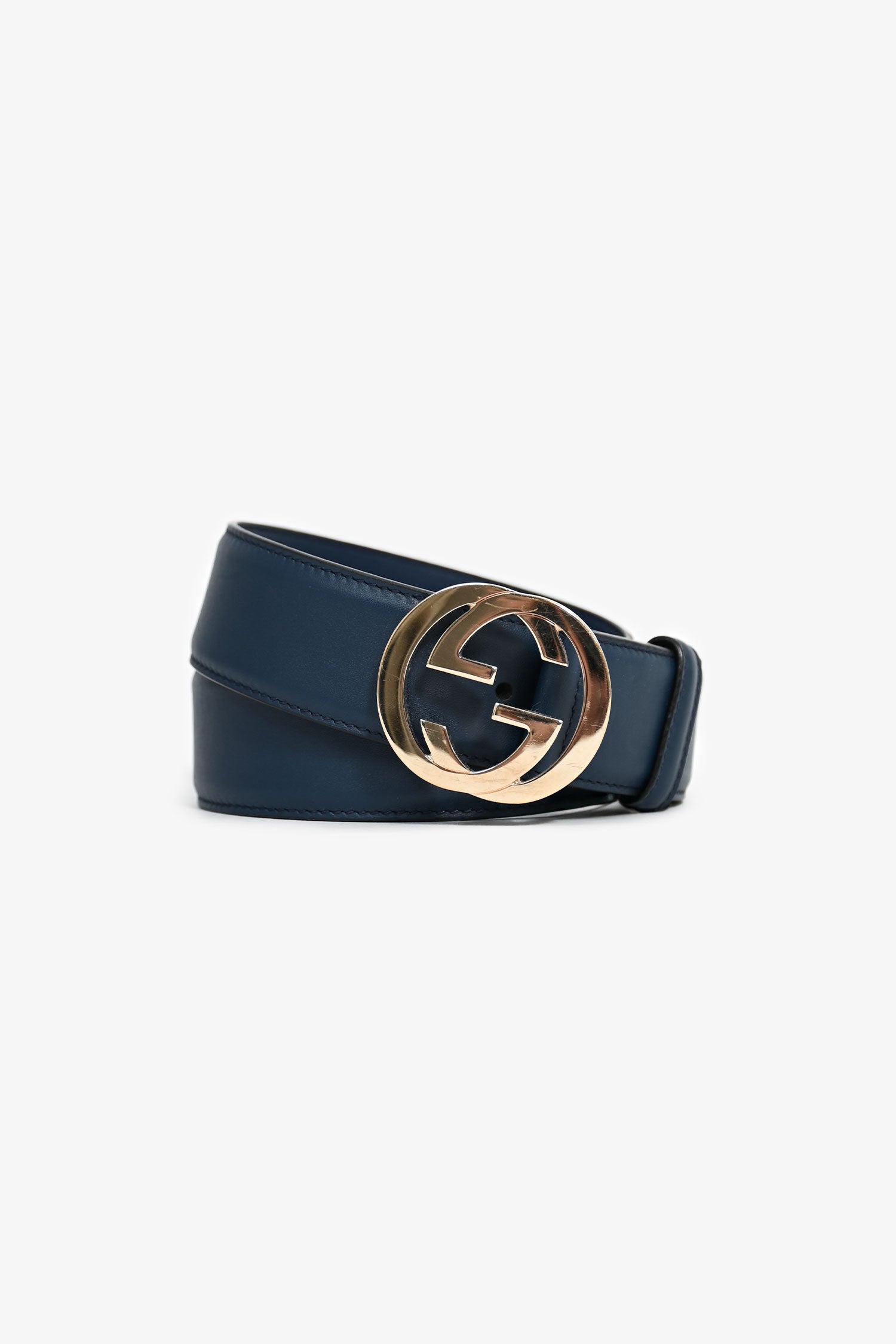 Gucci Navy Leather Interlocking GG Belt Size 80/32