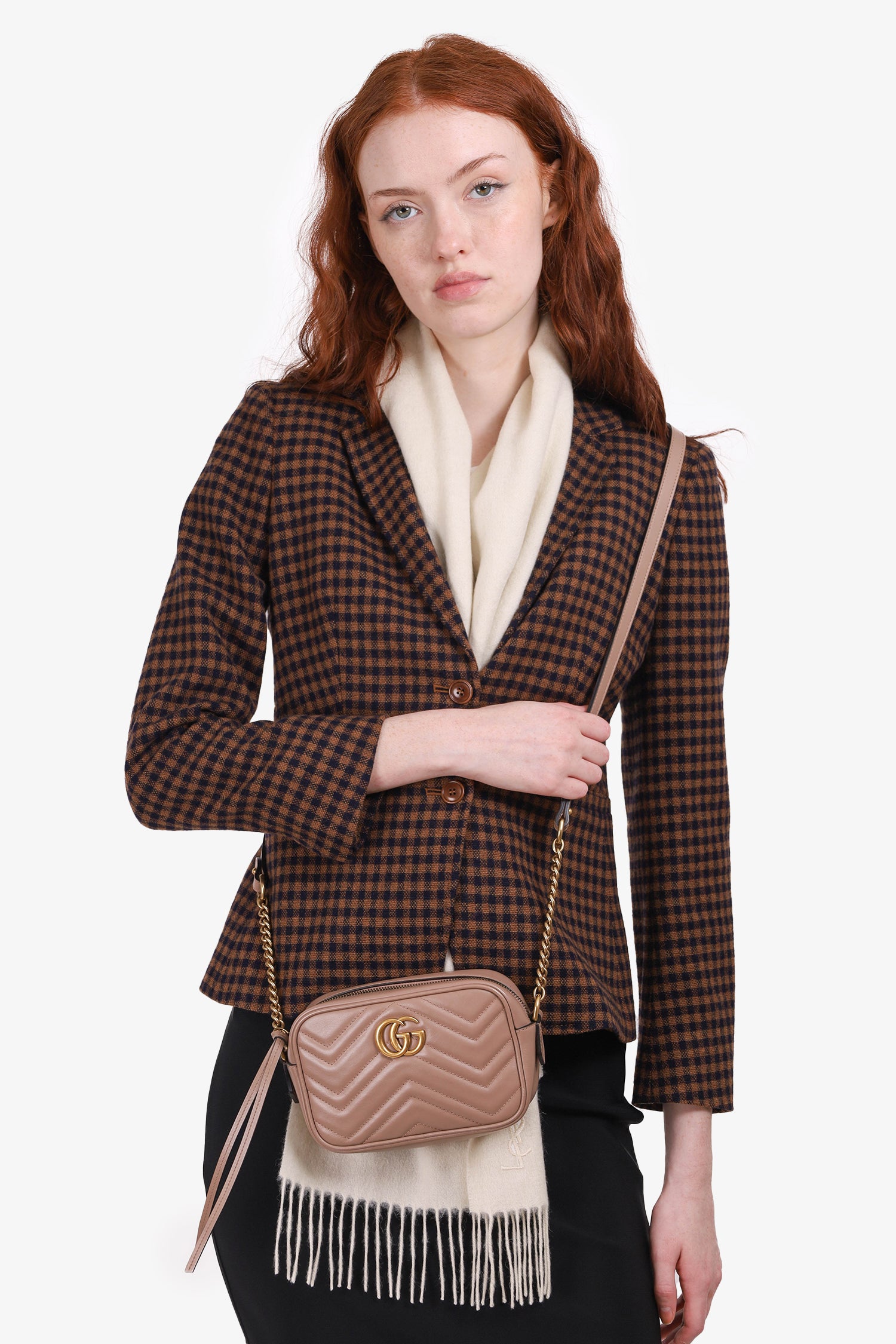 Refresh availabilityGucci Nude Calfskin Matelasse Mini GG Marmont Matelassé Camera Bag. Top zip closure. Crossbody strap. Open suede interior with single wall slip pocket. Gold-tone hardware. Tonal stitching.