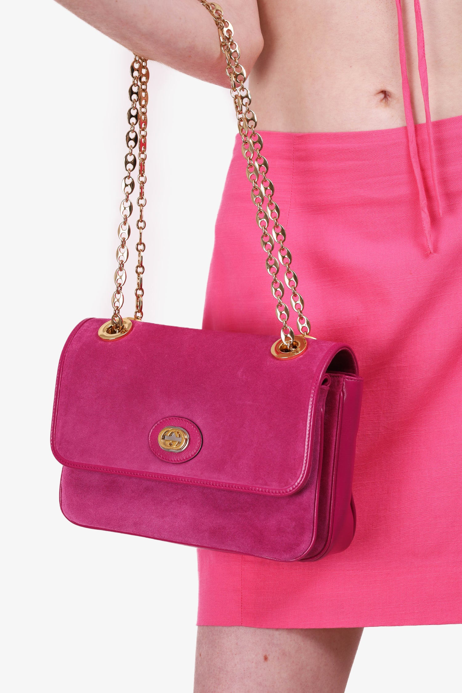 Gucci Pink Suede Marina Chain Shoulder Bag