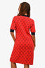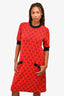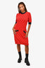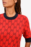 Gucci Red/Blue Wool Blend Knit GG Midi Dress Size M