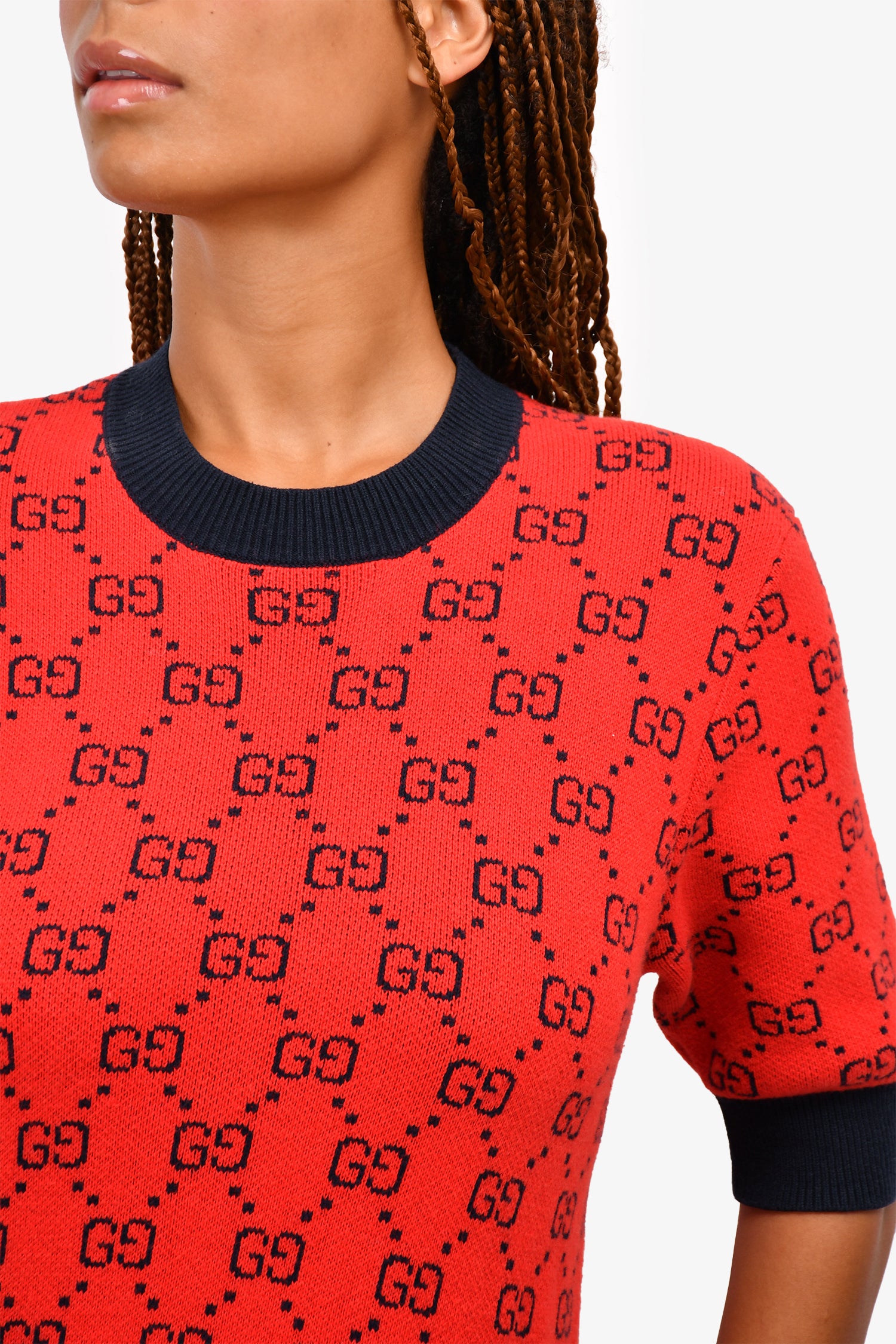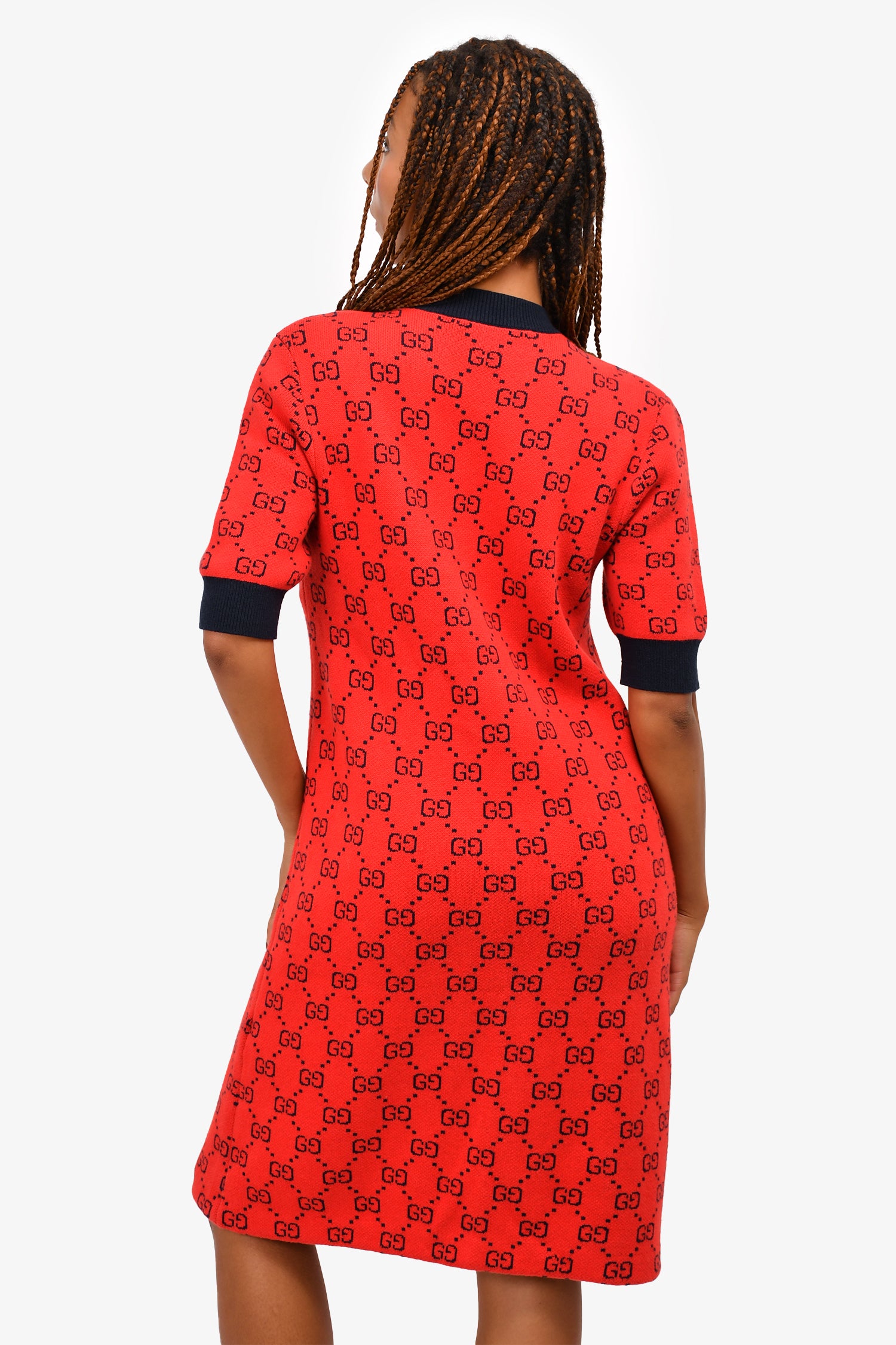 Refresh availabilityGucci Red/Blue Wool Blend Knit GG Midi Dress