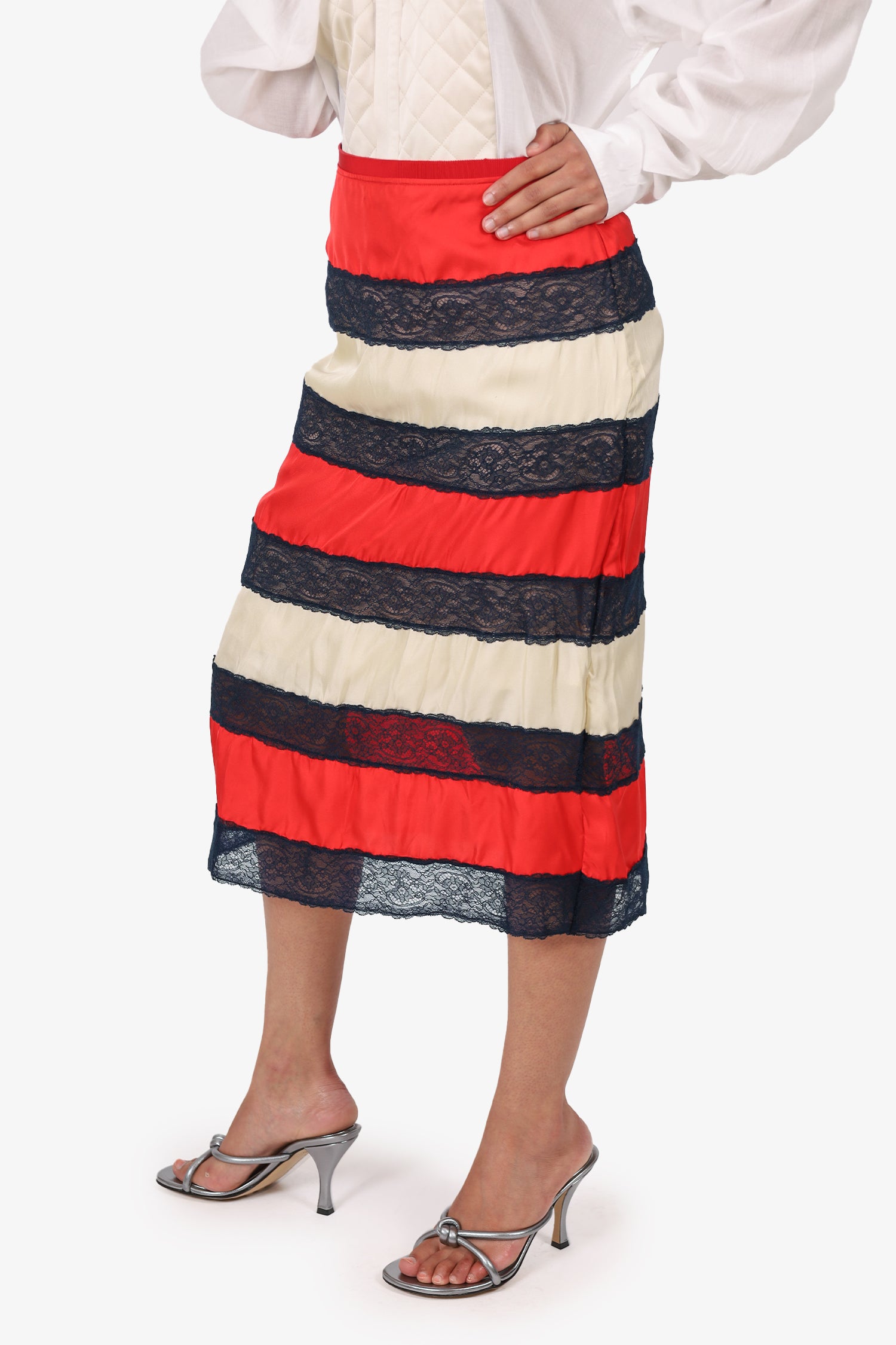 Gucci Red/Cream Silk/Lace Tiered Midi Skirt Size 40