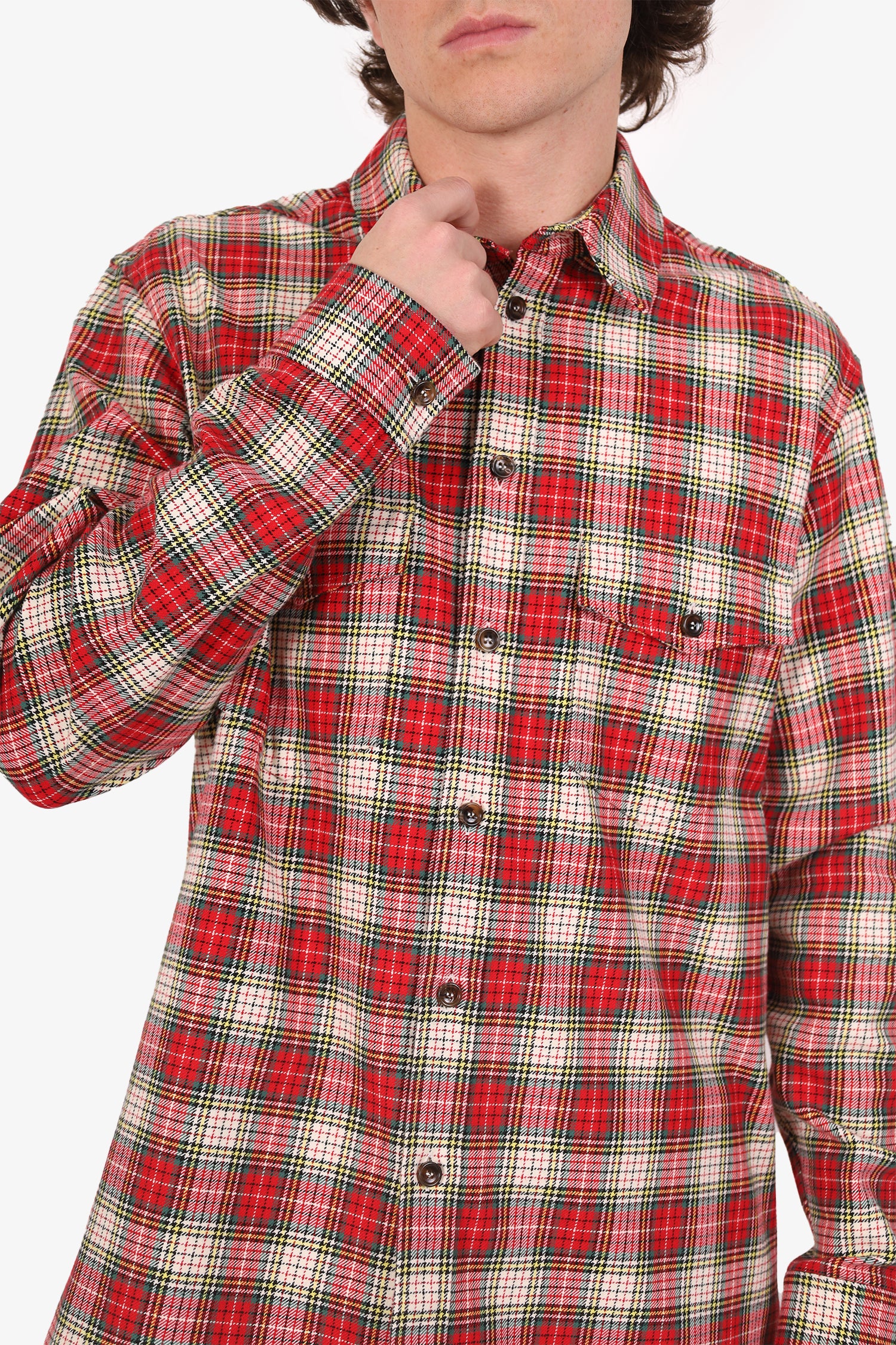Gucci Red Embroidered Snake Checked Shirt Size 48 Mens