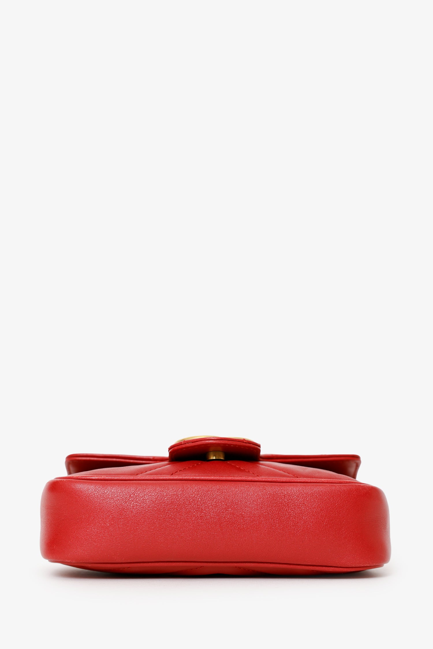 Gucci Red Leather GG Marmont Super Mini Crossbody Bag