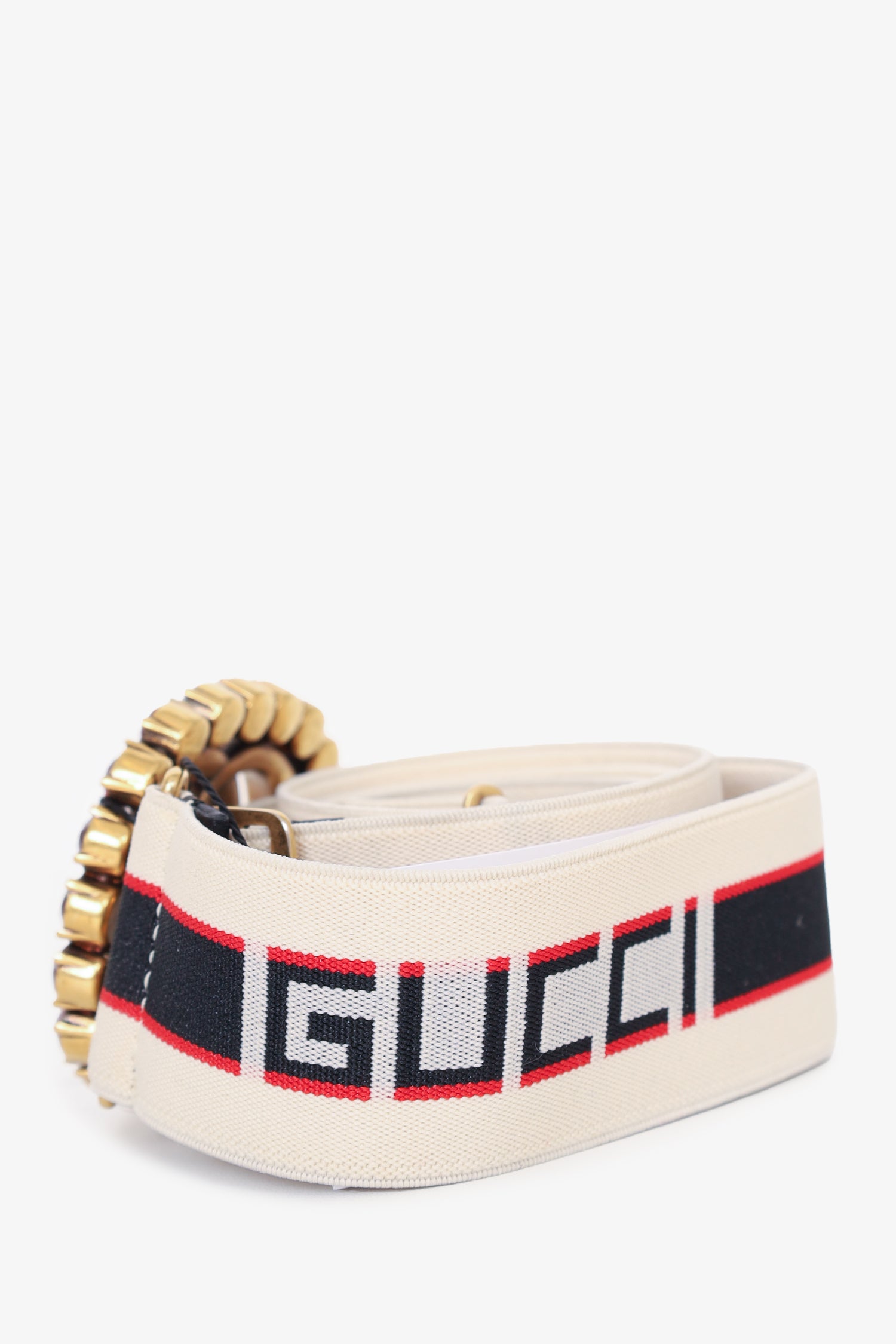 Gucci Red/White Jacquard Crystal Stripe Double G Belt size 100.40