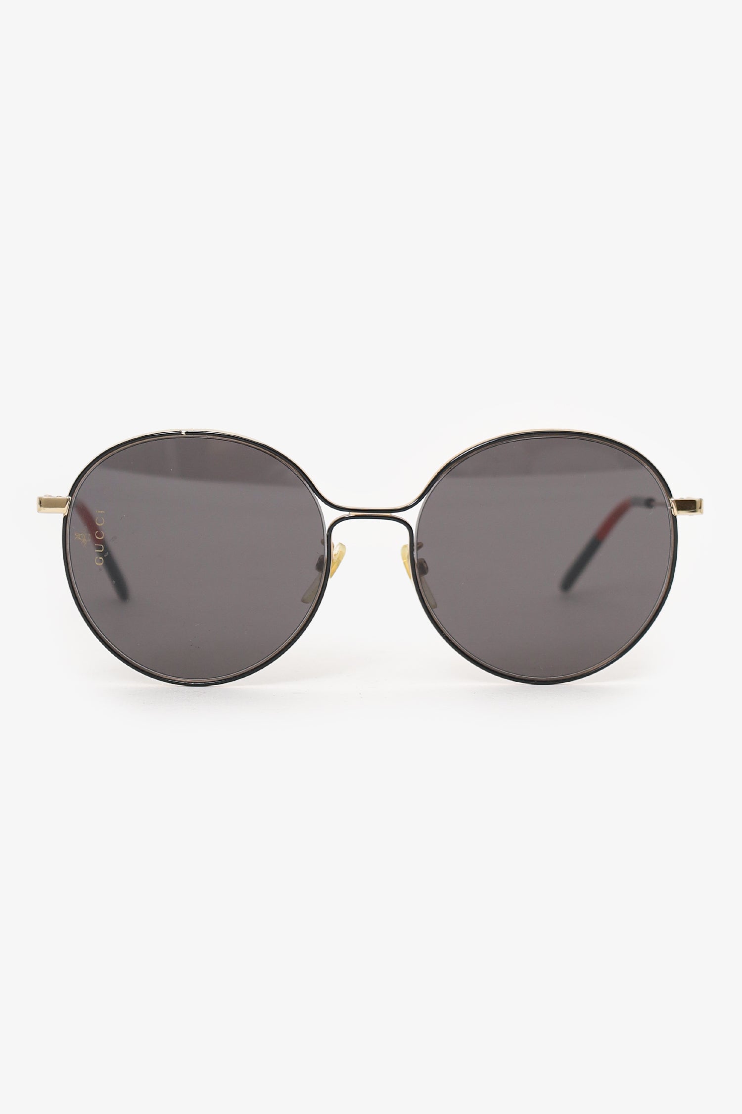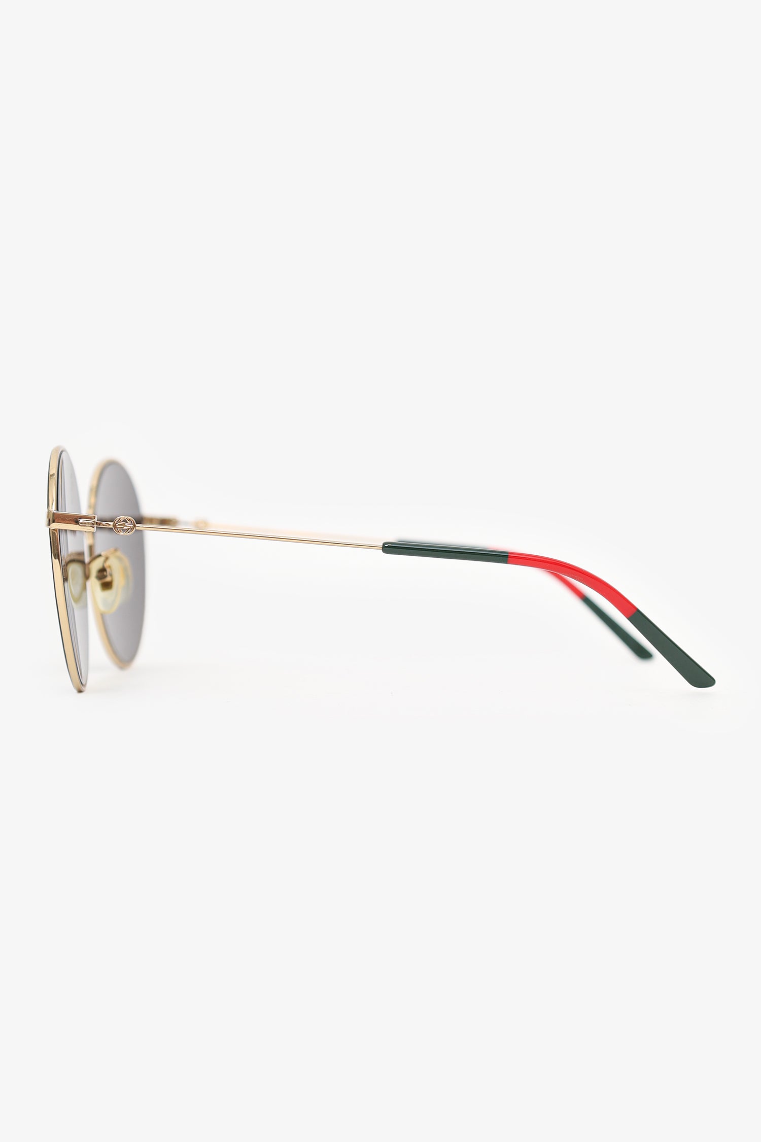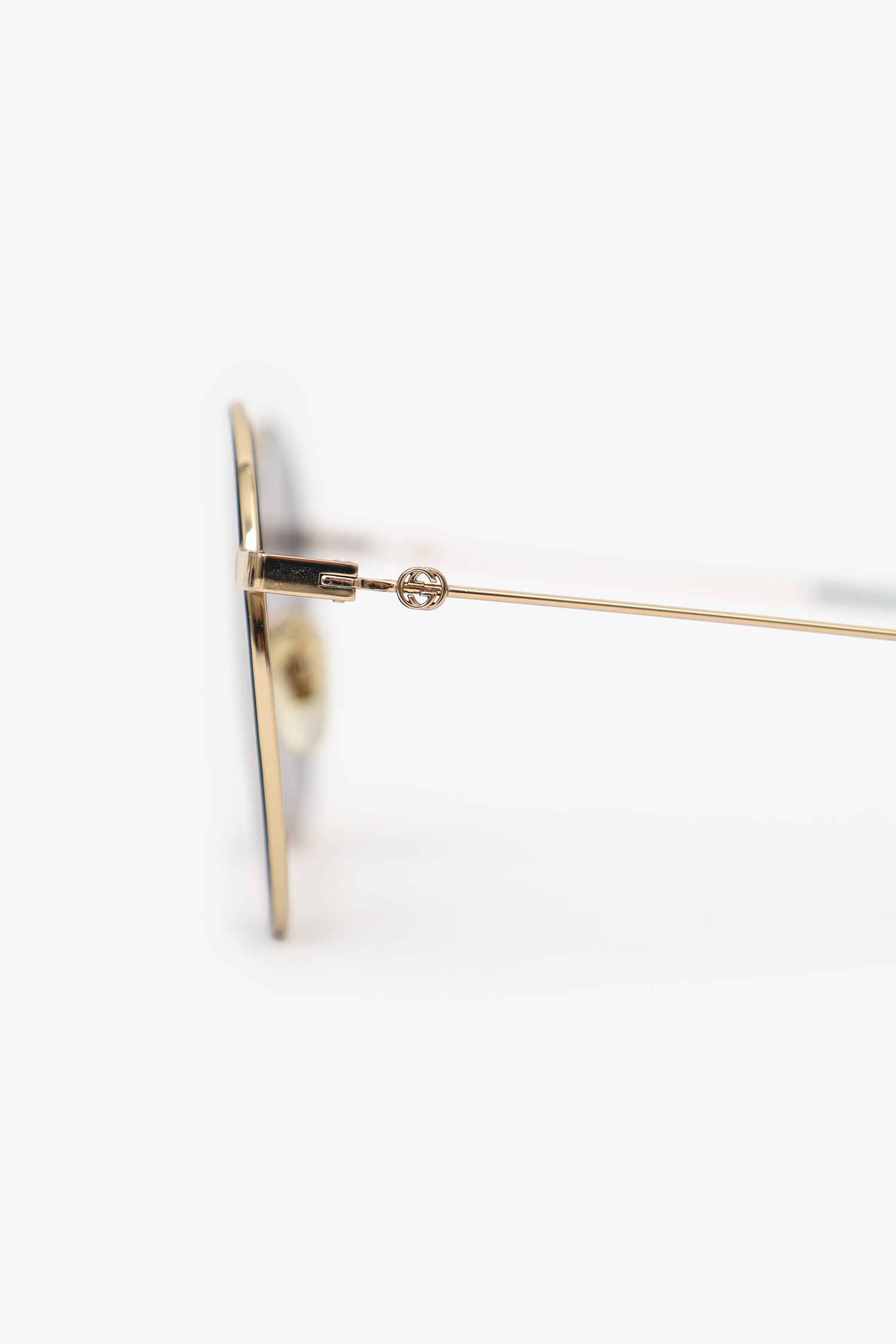 Refresh availabilityGucci Round Red/Blue Sunglasses. Adjustable nose pads. Gold-tone hardware.
