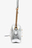 Gucci Silver Leather Pearl Studded Marmont Crossbody Bag