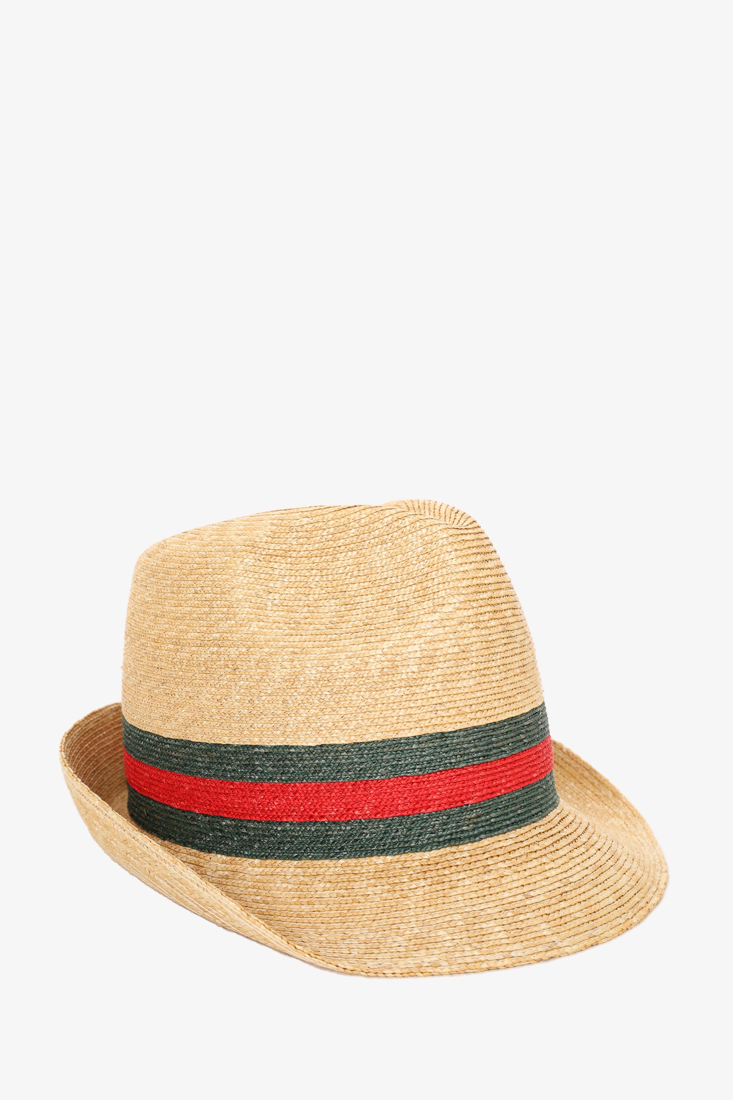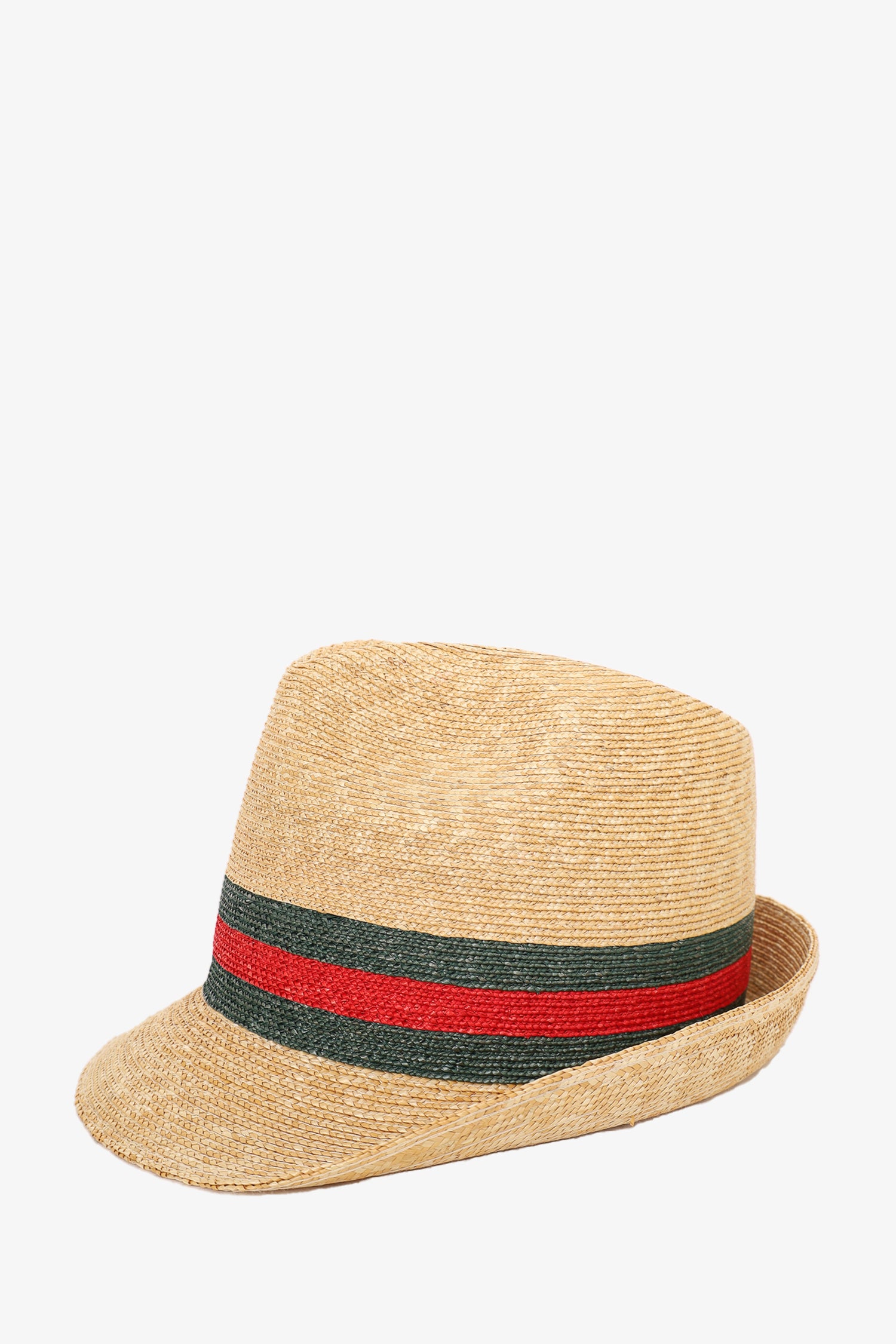 Refresh availabilityGucci Striped Straw Fedora Hat. Tonal stitching.