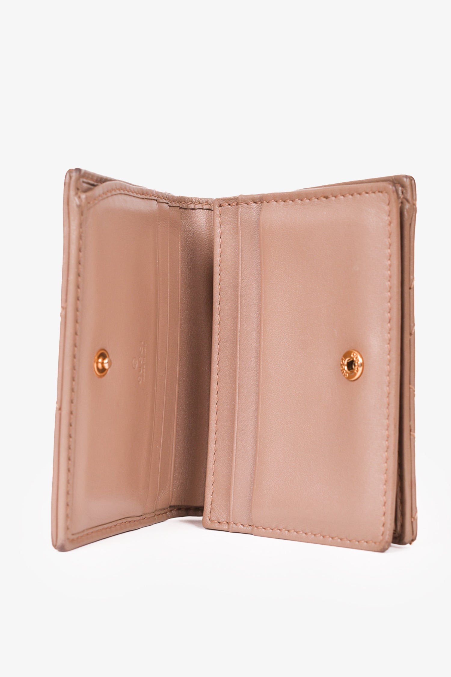 Gucci Taupe Leather GG Marmont Chevron Quilted Compact Wallet