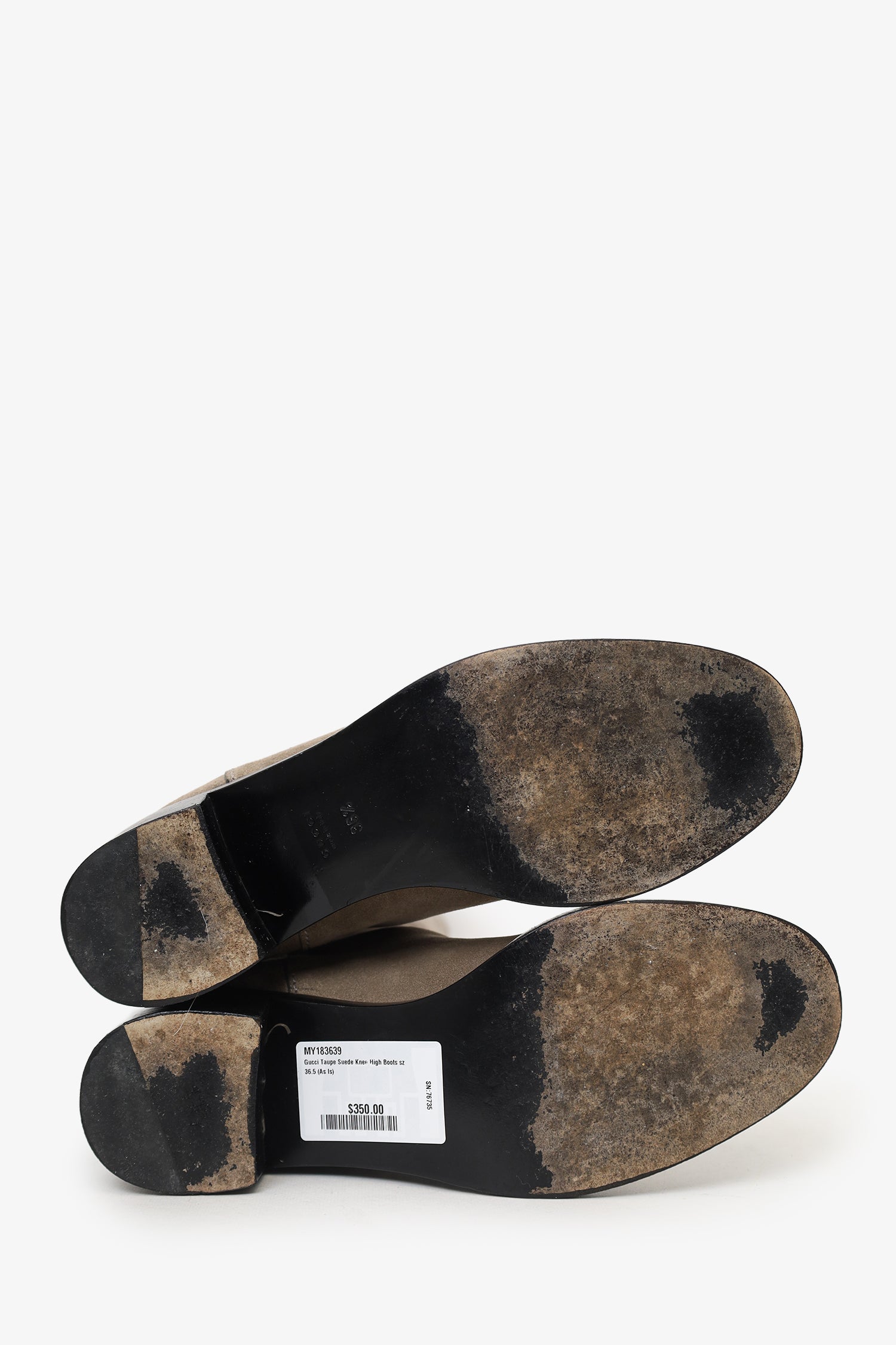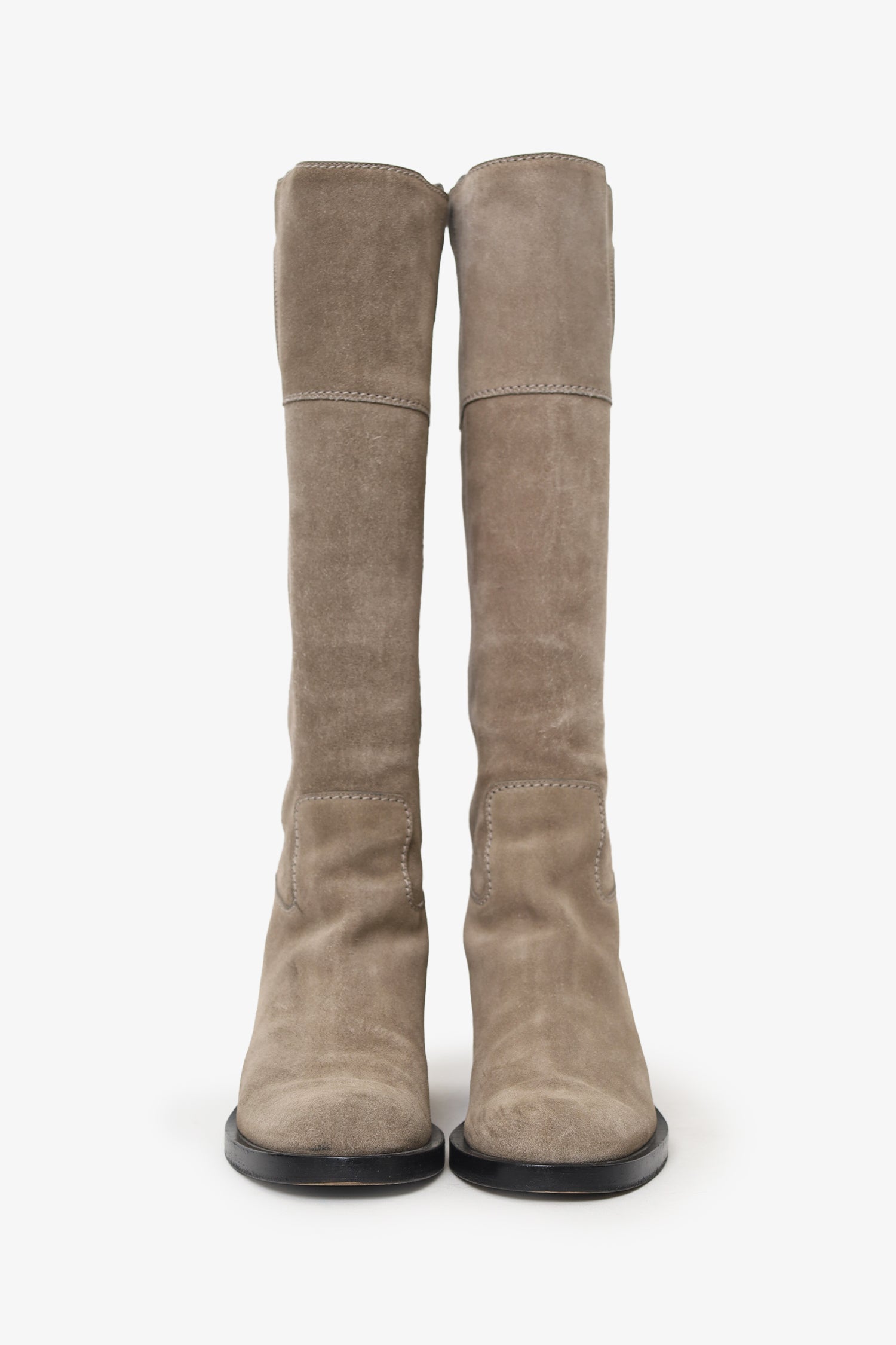 Refresh availabilityGucci Taupe Suede Knee High Boots. Pull-on. Round toe. Tonal stitching.