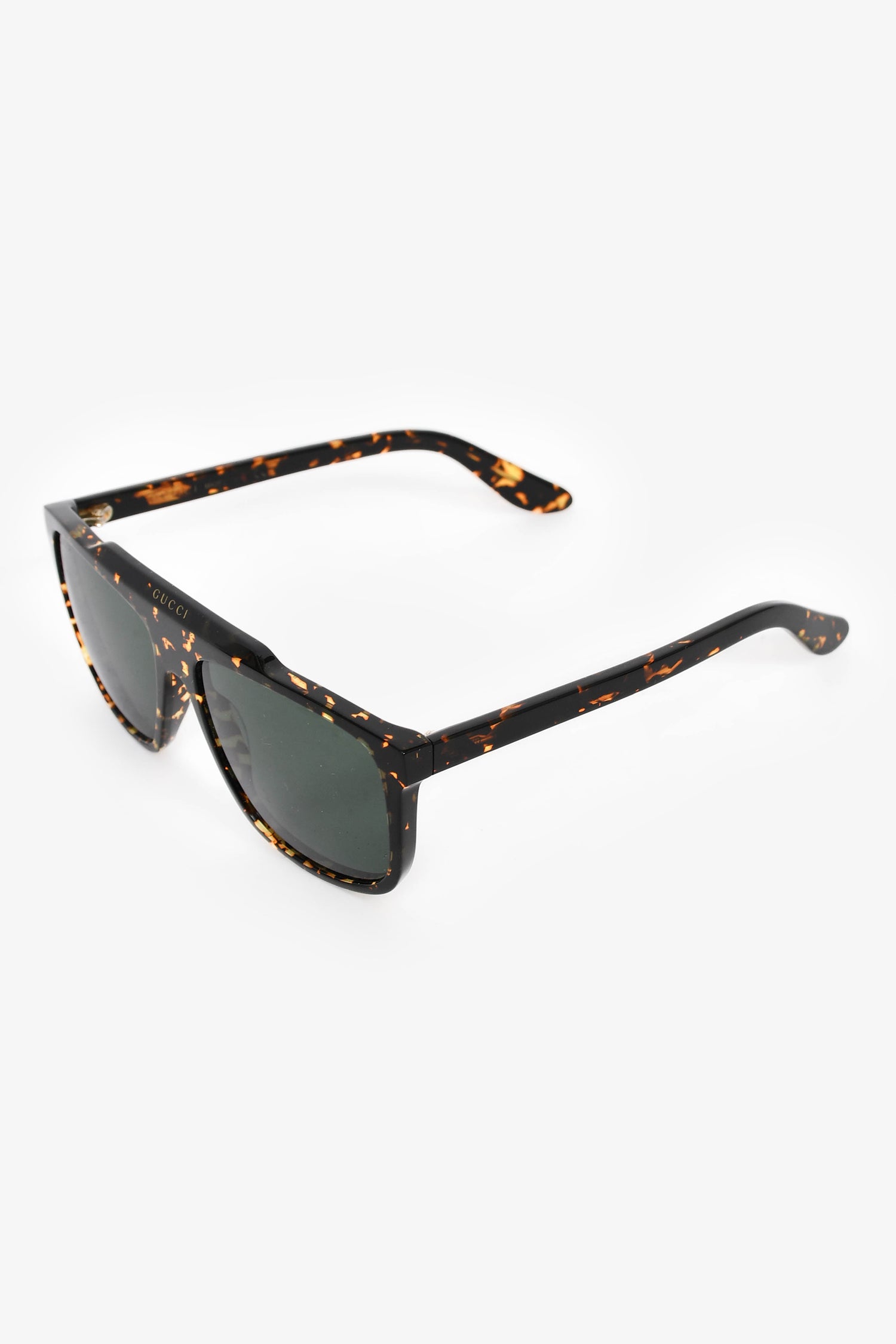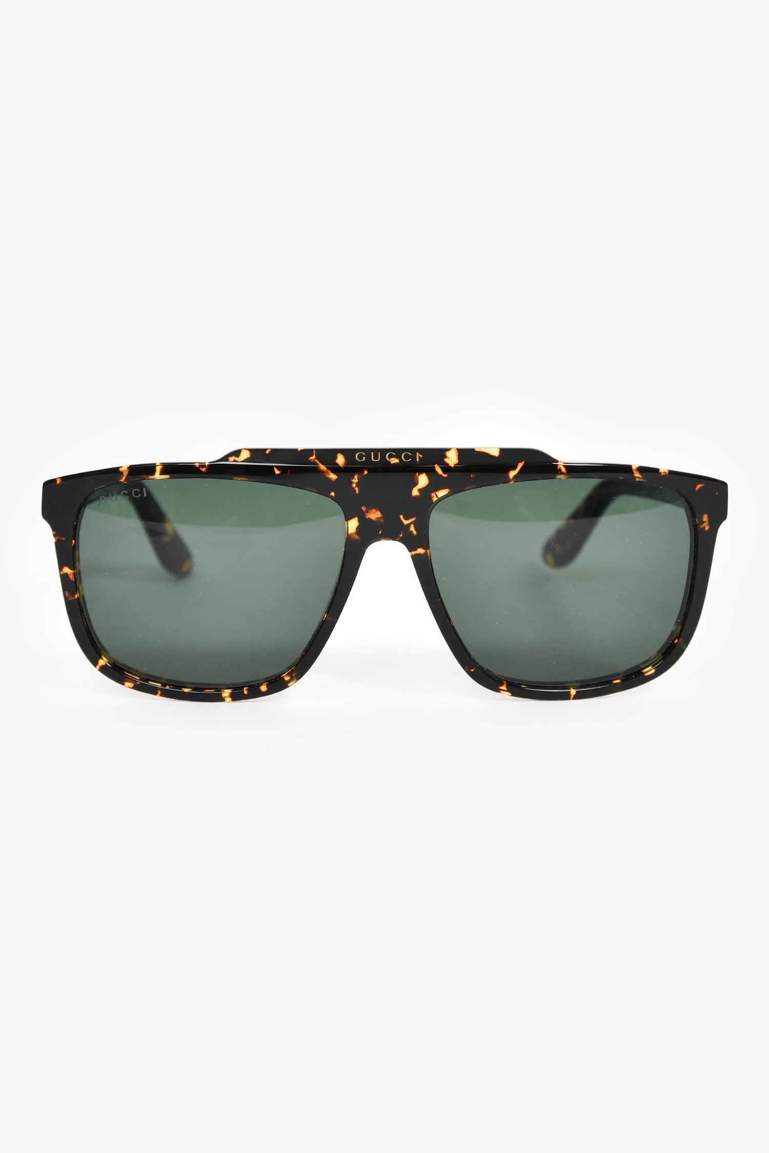 Refresh availabilityGucci Tortoise Acrylic Green Lens Logo Sunglasses. Frame nose pads. Gold-tone hardware.