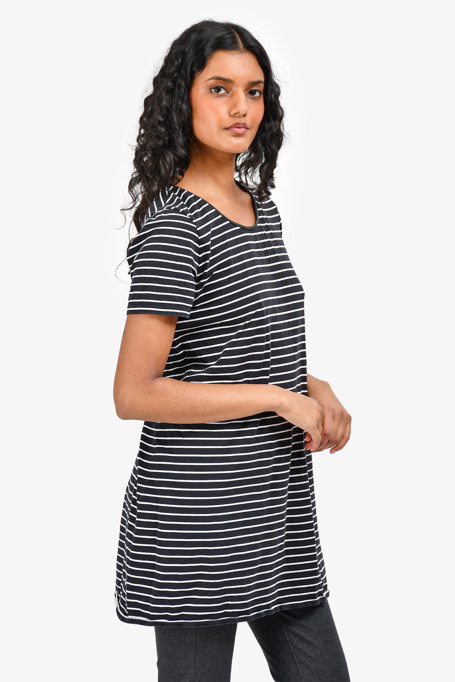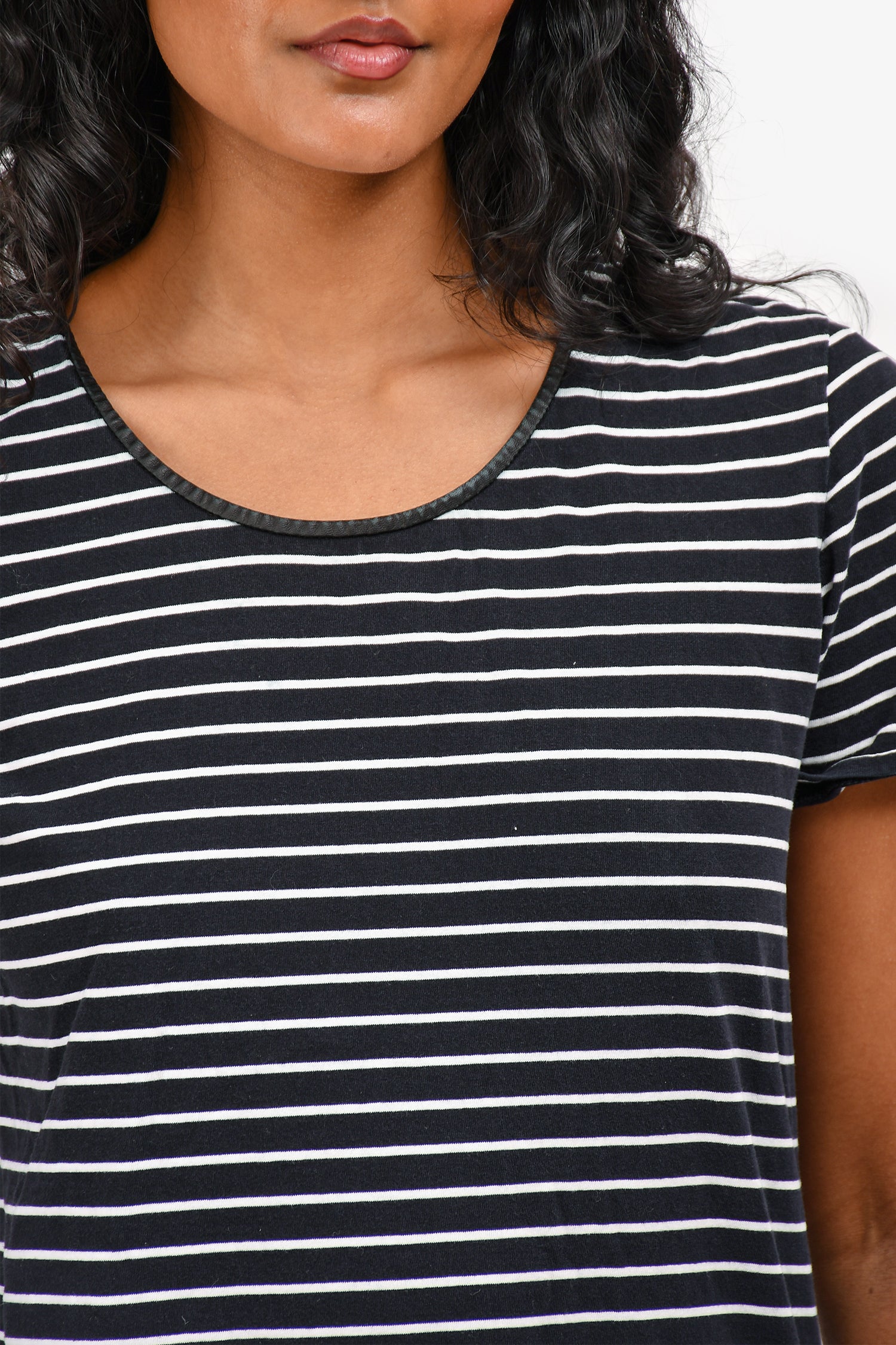 Refresh availabilityGucci Vintage Black/White Striped Long T-Shirt. Round neckline. Leather trimmed neckline. Tonal stitching.