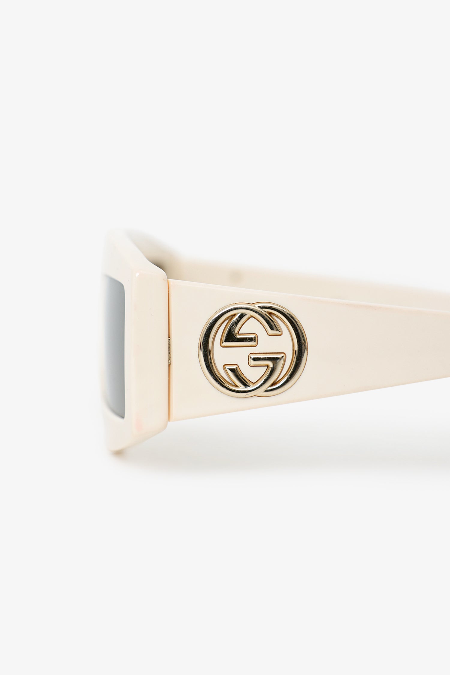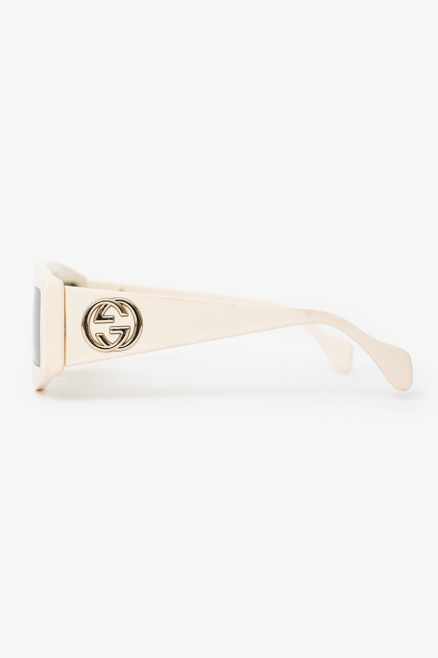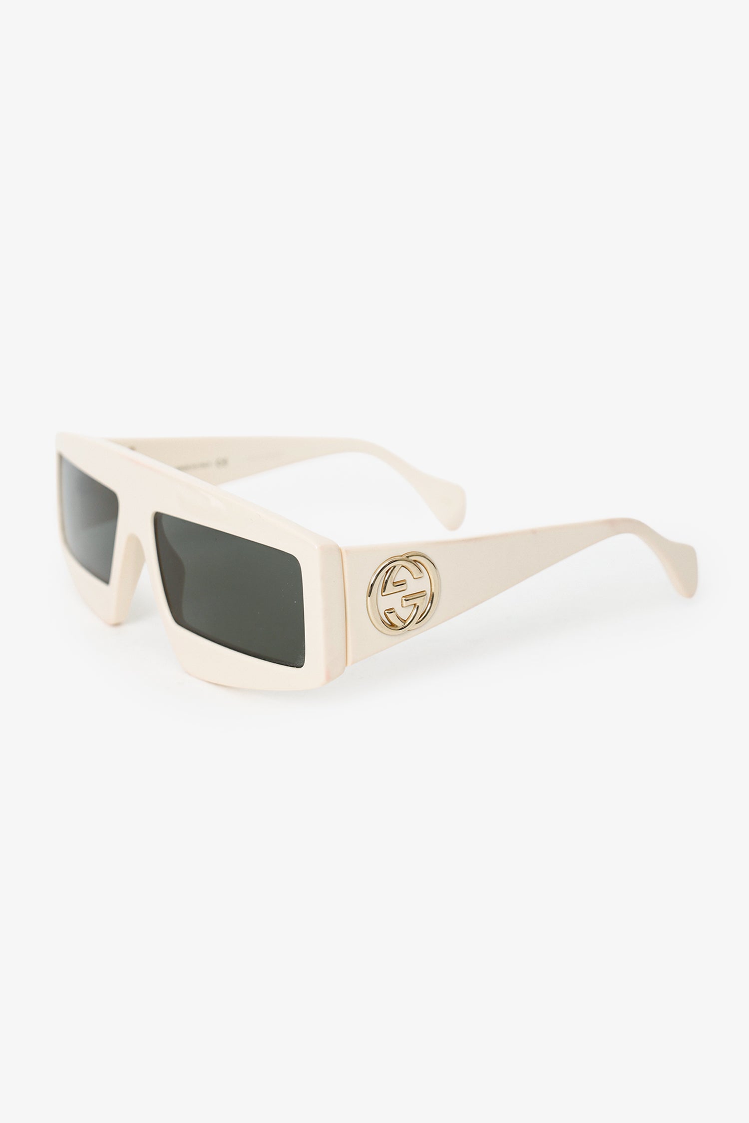 Refresh availabilityGucci White Frame GG Rectangle Sunglasses. Built-in nose pads. Gold and silver-tone hardware.