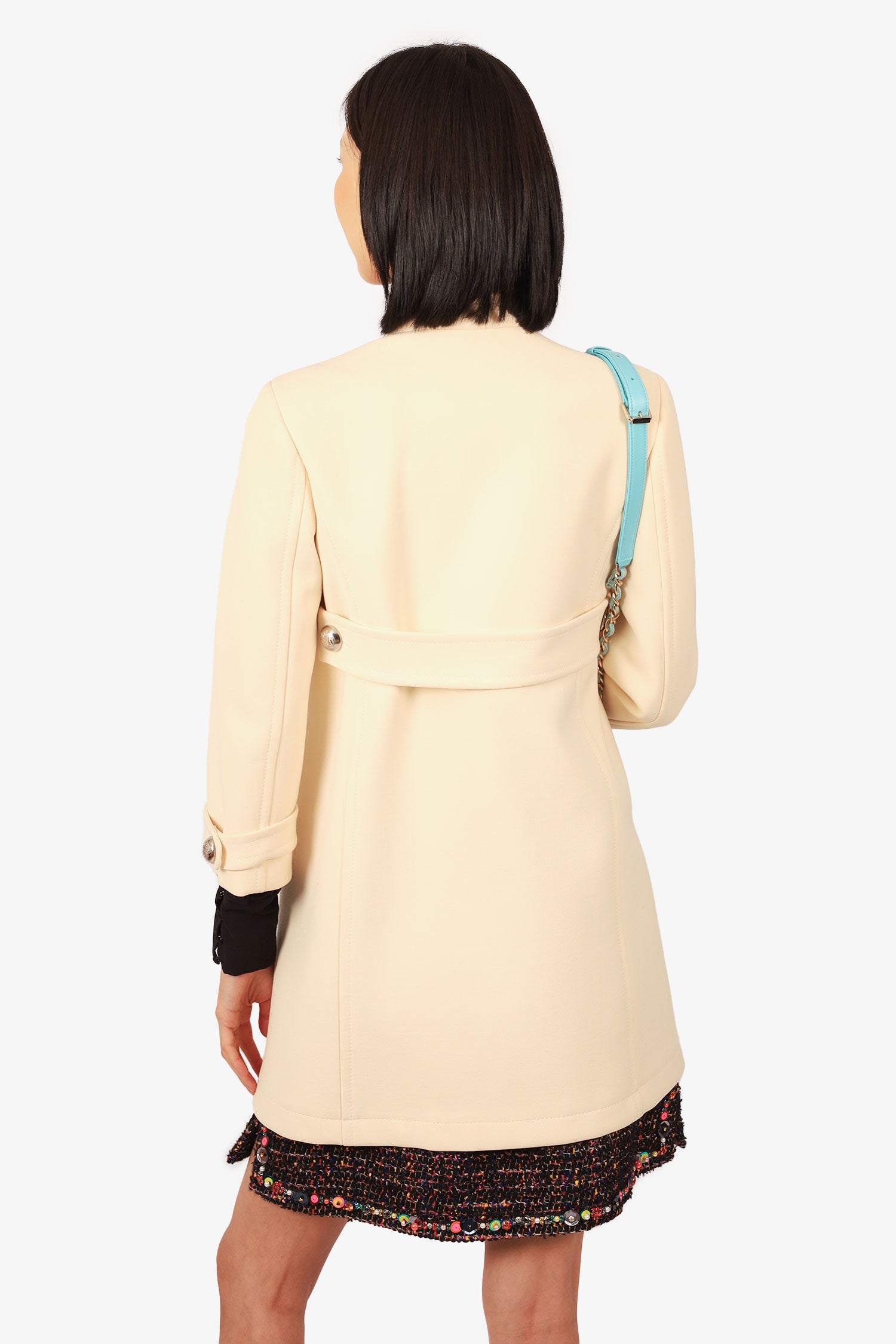 Condition: This item is in good pre-loved condition. Some wear on button holes. Minor pilling to exterior. Loose threads to interior. Minor scratches to hardware.