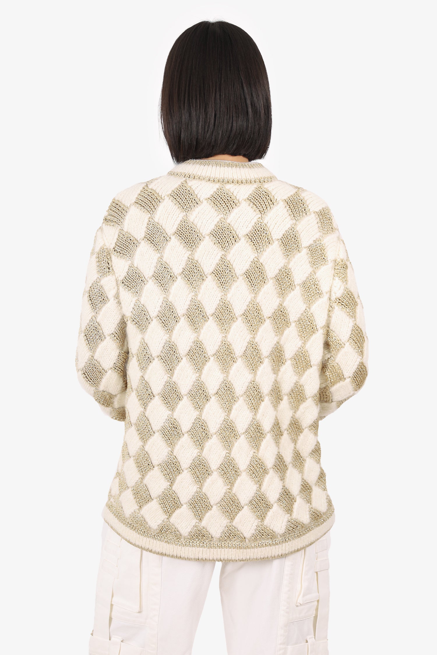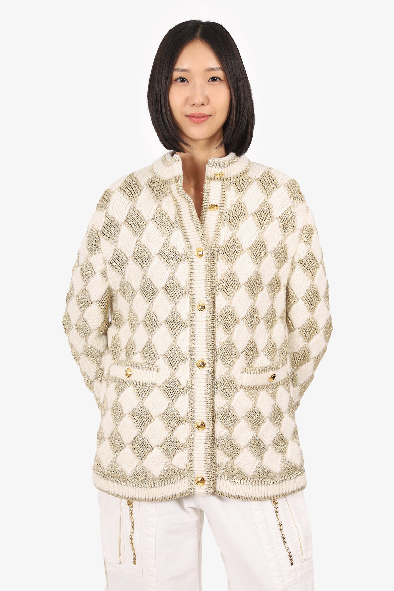 Gucci White/Gold Check Knitted Cardigan Size XS