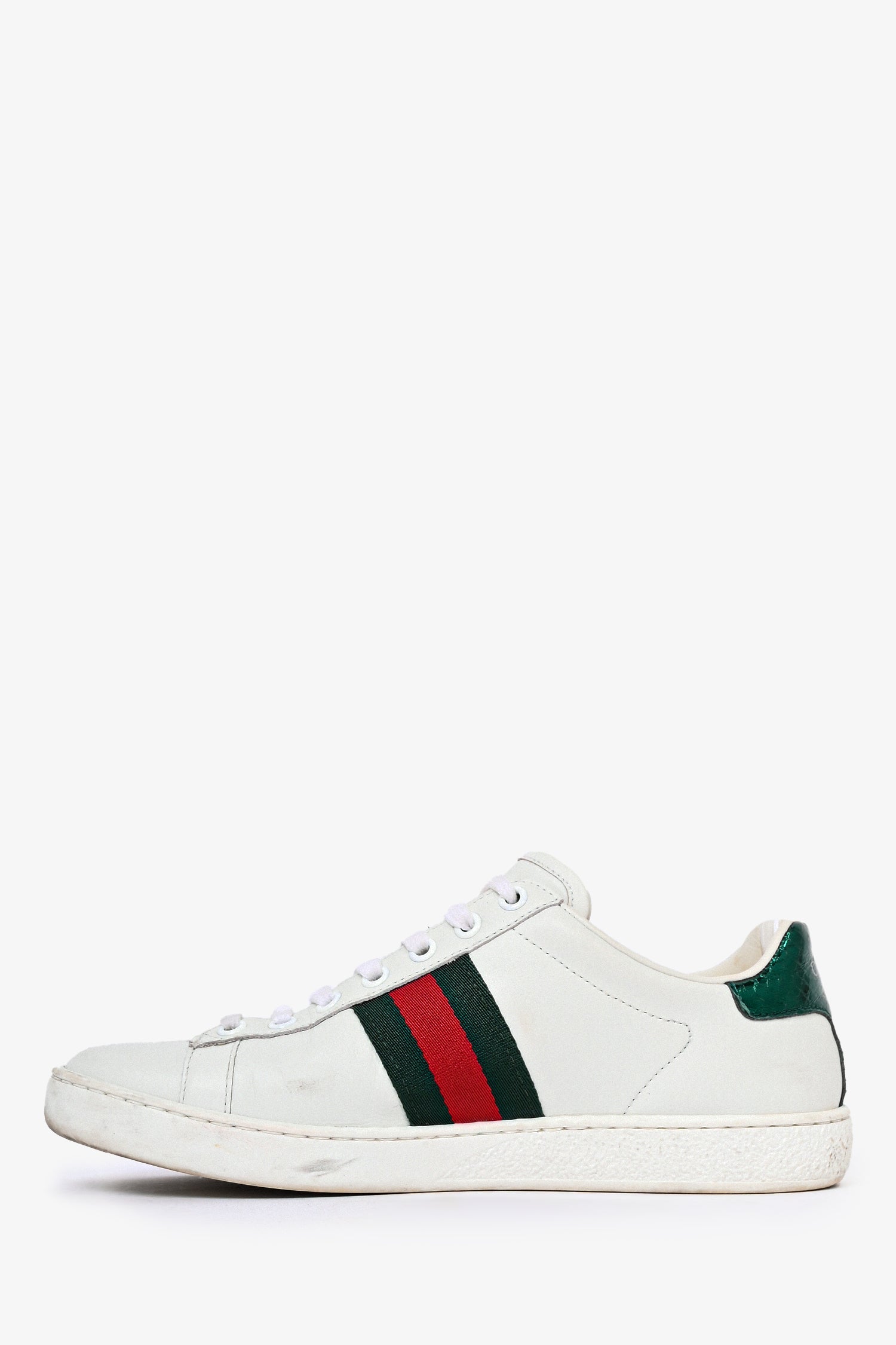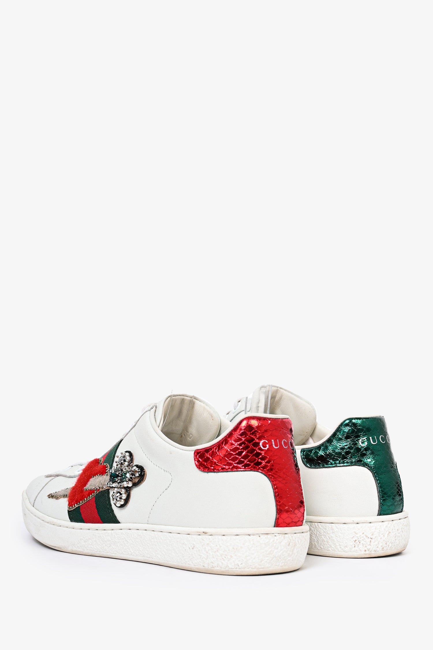 Gucci White/Green Embellished 'Ace' Sneakers Size 37
