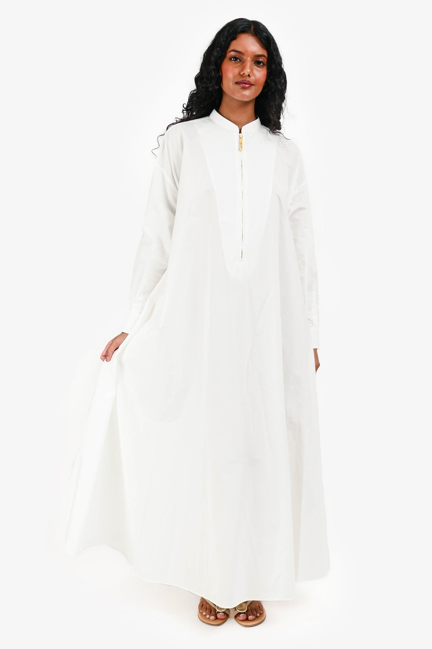 Refresh availabilityGucci White Half Zip Up Maxi Shirt Dress. Half front zipper. Tonal stitching.