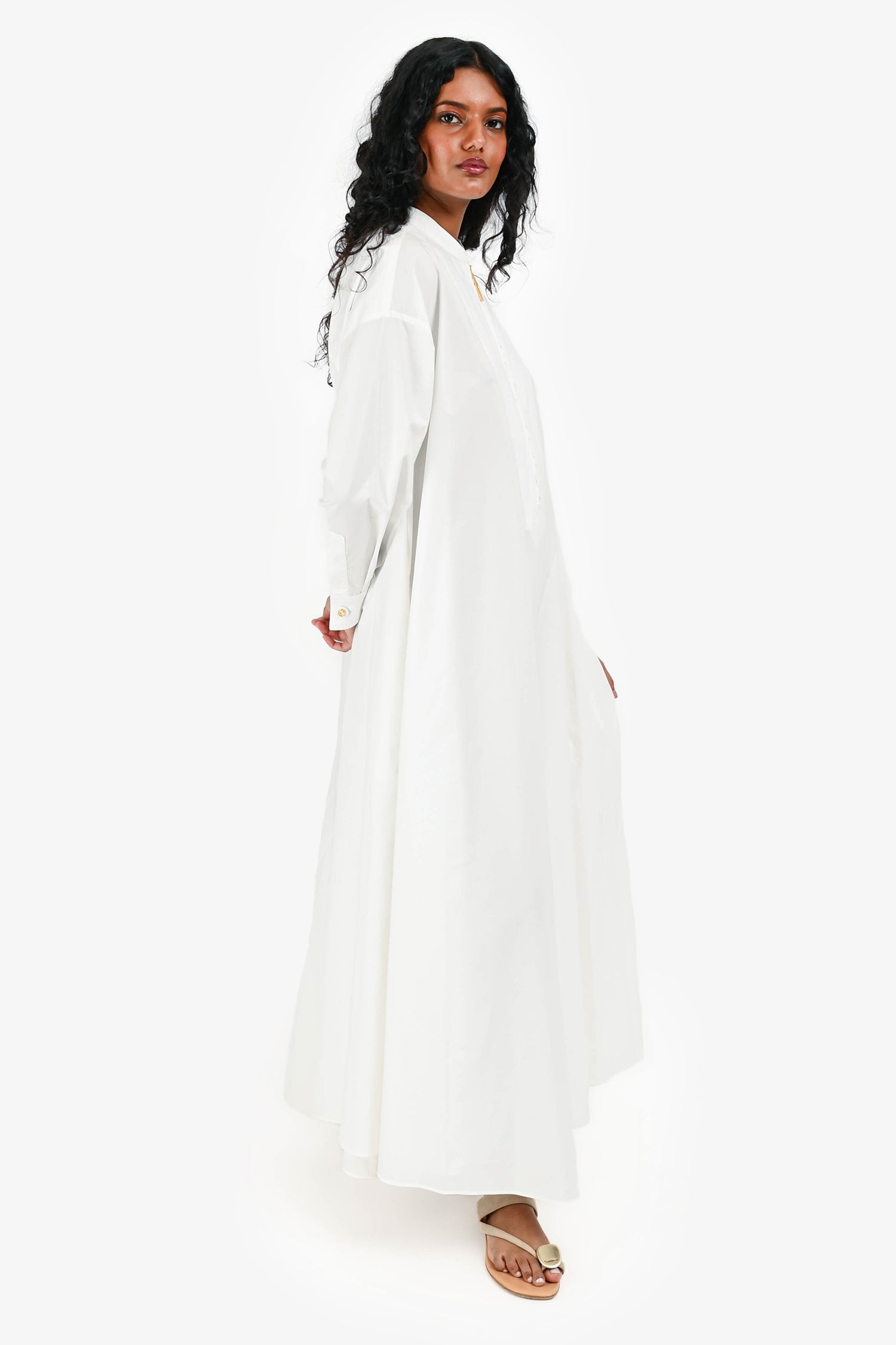 Gucci White Half Zip Up Maxi Shirt Dress Size 38