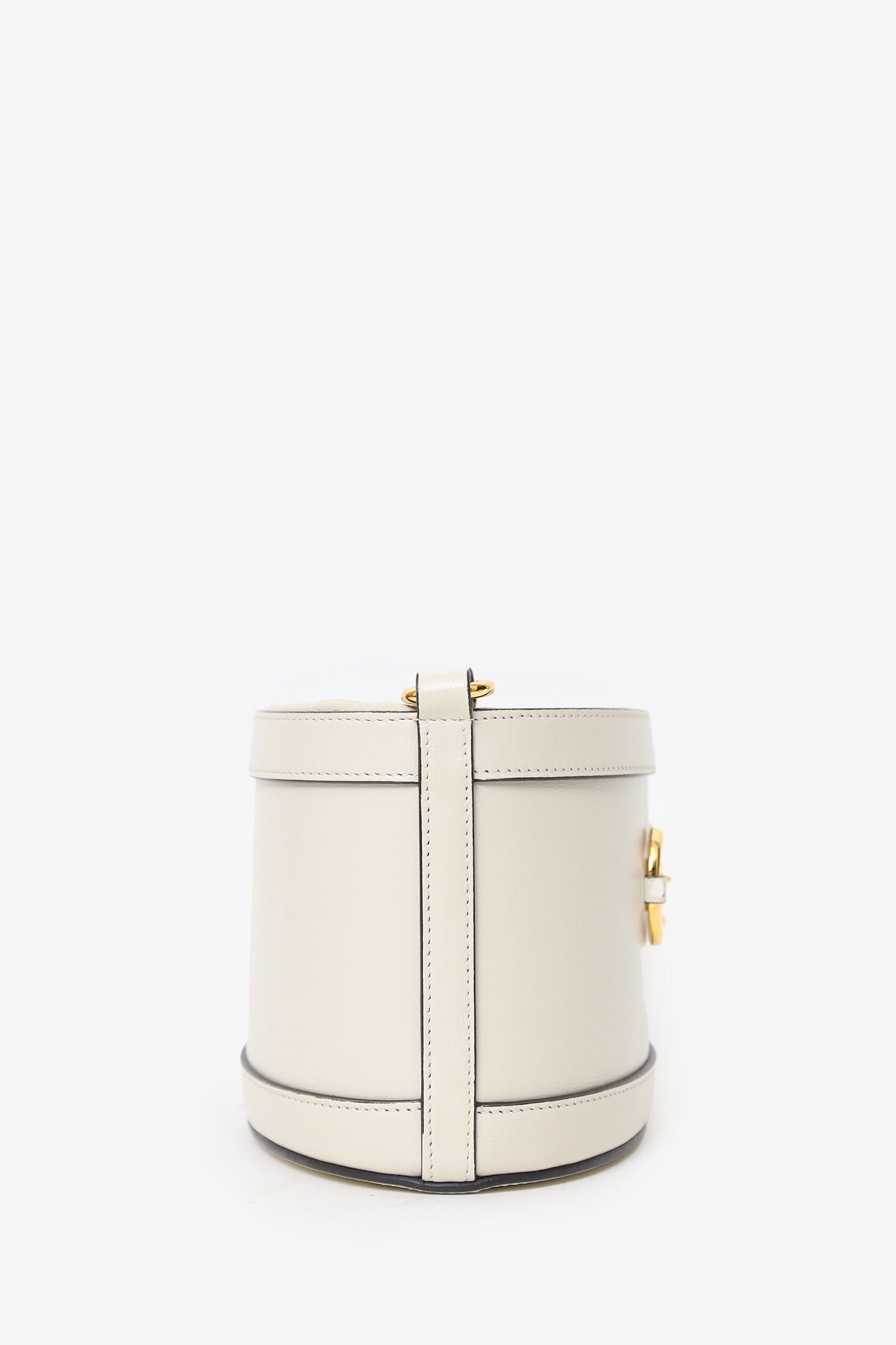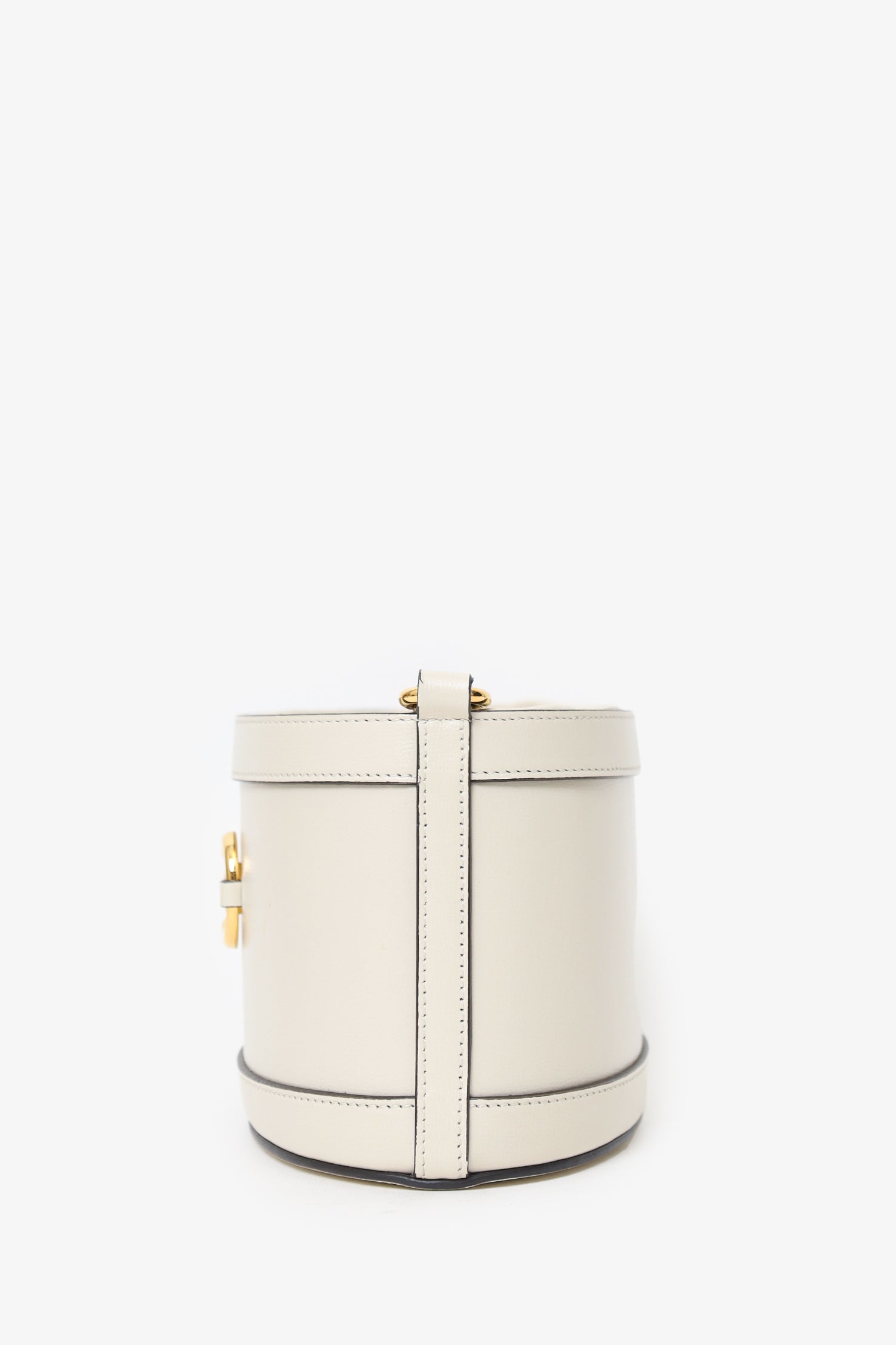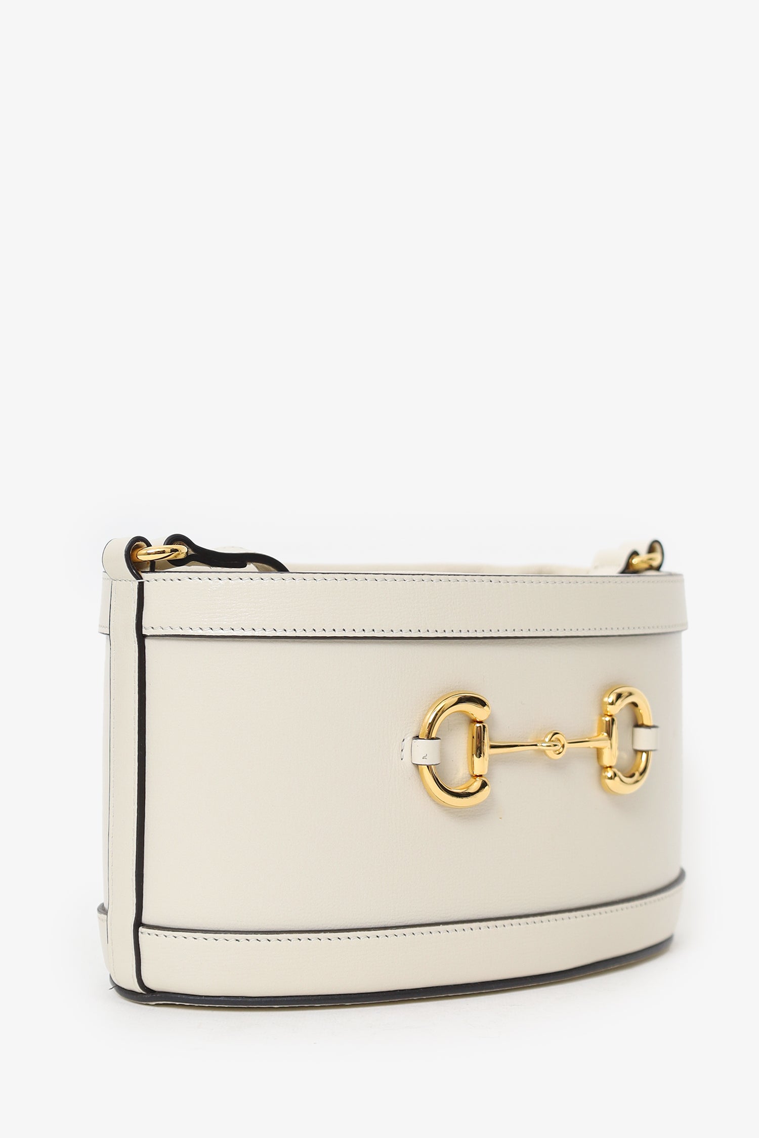 Gucci White Leather 1955 Horsebit Drawstring Bucket Bag