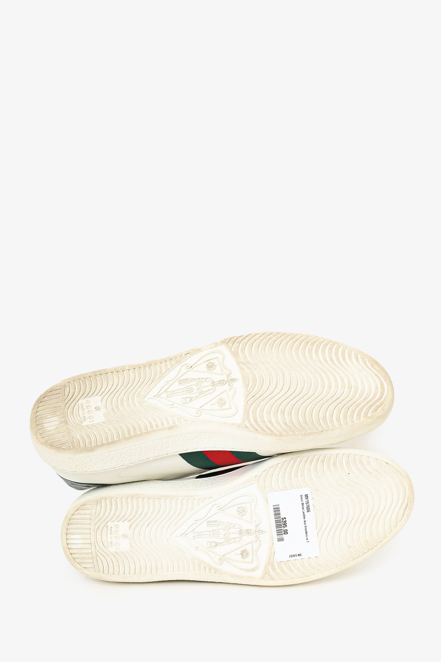 Refresh availabilityGucci White Leather Ace Sneakers. Slip-on. Round-toe. Top lace-up closure. Tonal stitching.