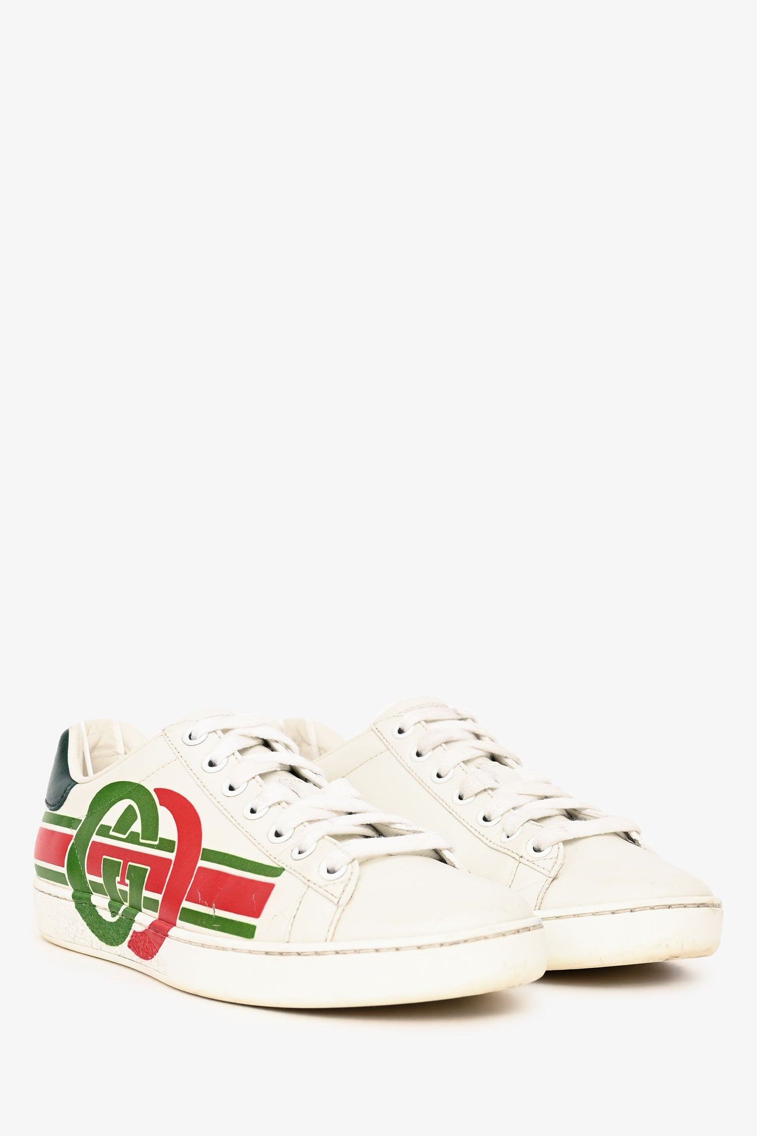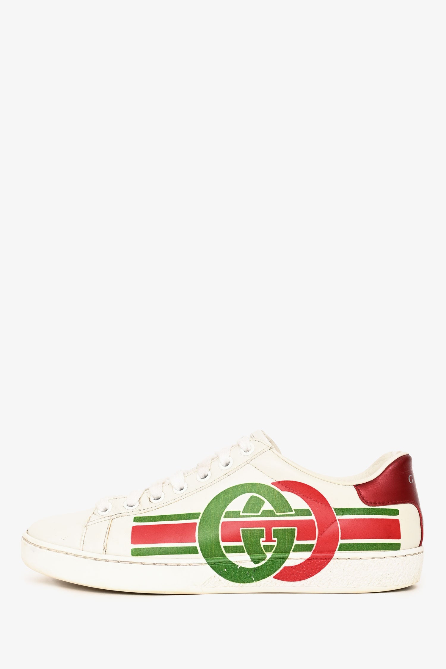 Gucci White Leather GG Printed Logo Ace Sneakers Size 35