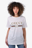 Gucci White Logo T-Shirt with Embroidered Flower Patch Size XXS