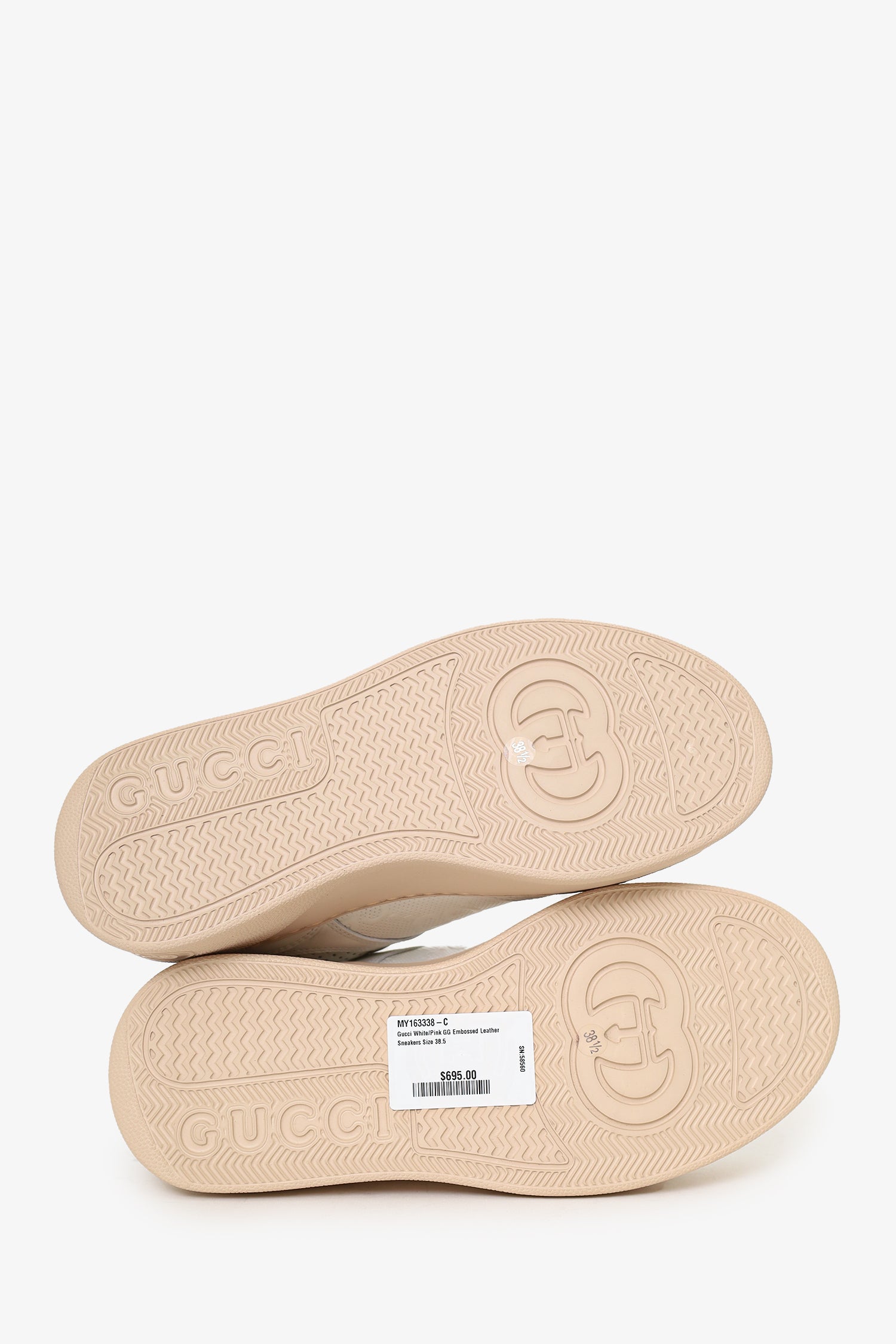 Gucci White/Pink GG Embossed Leather Sneakers Size 38.5