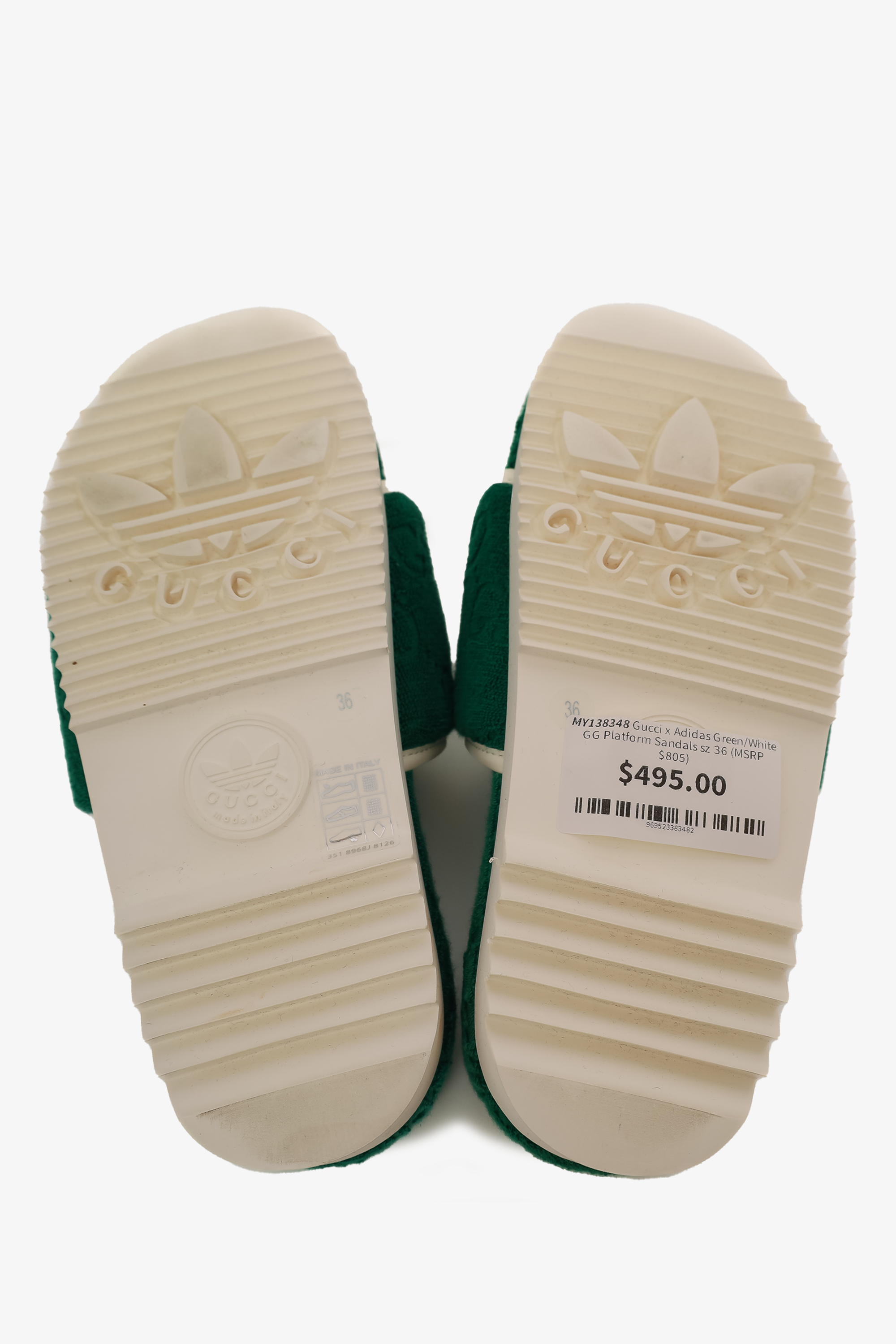Gucci x Adidas Green/White GG Platform Sandals Size 36