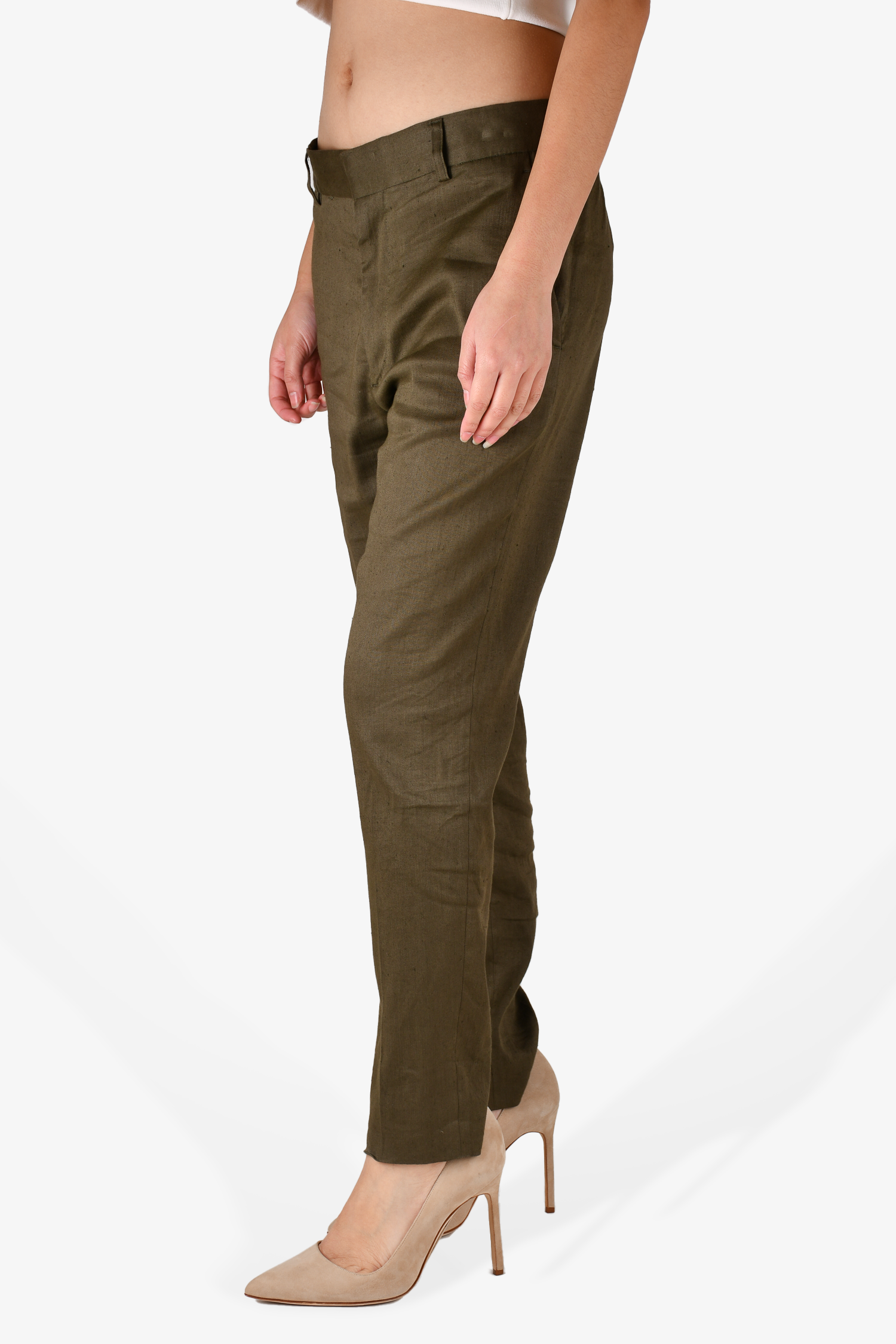 Refresh availabilityHaider Ackermann Dark Green Trousers. Front zip and hook closure. Front and rear pockets. Waist belt loops. Tonal stitching.