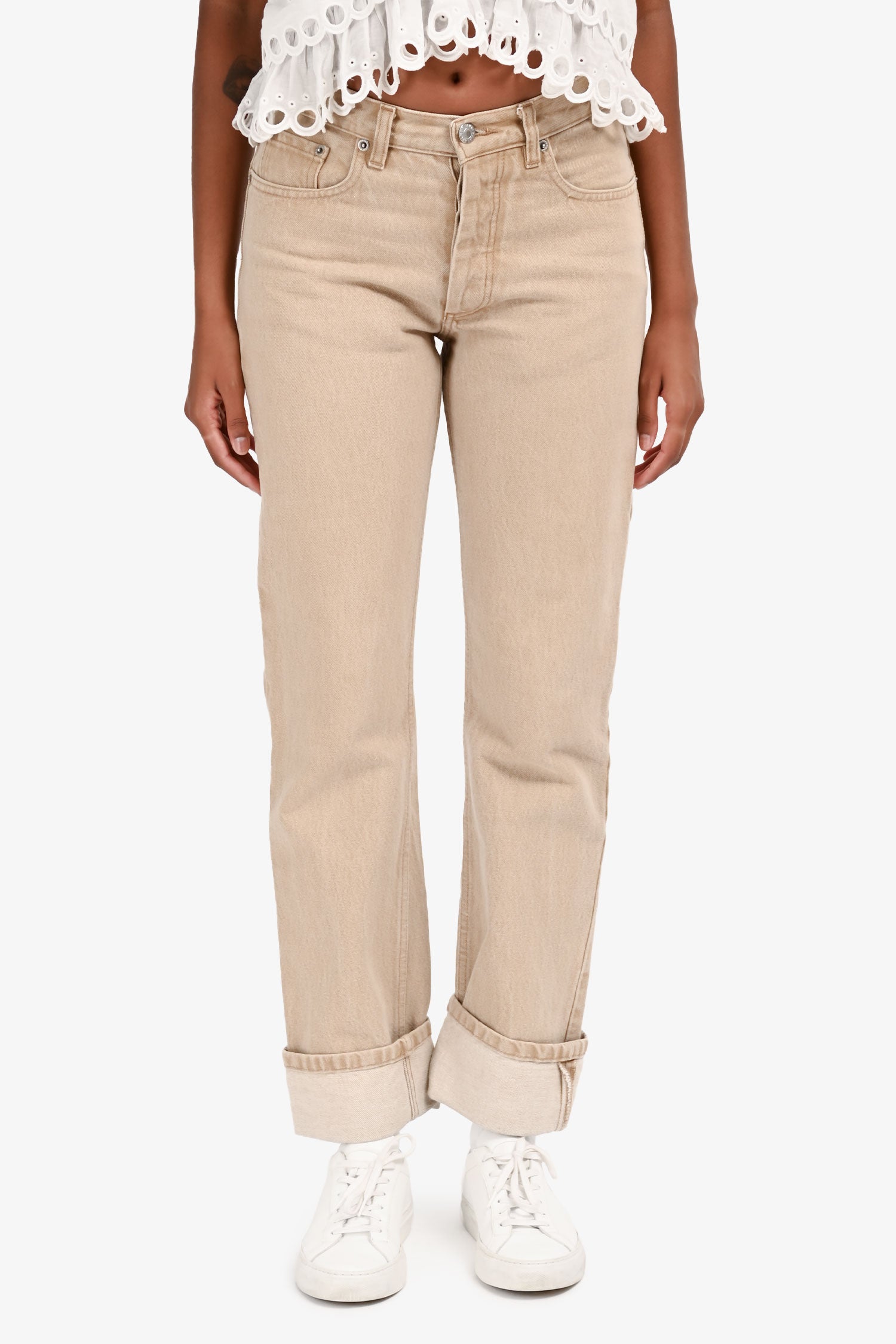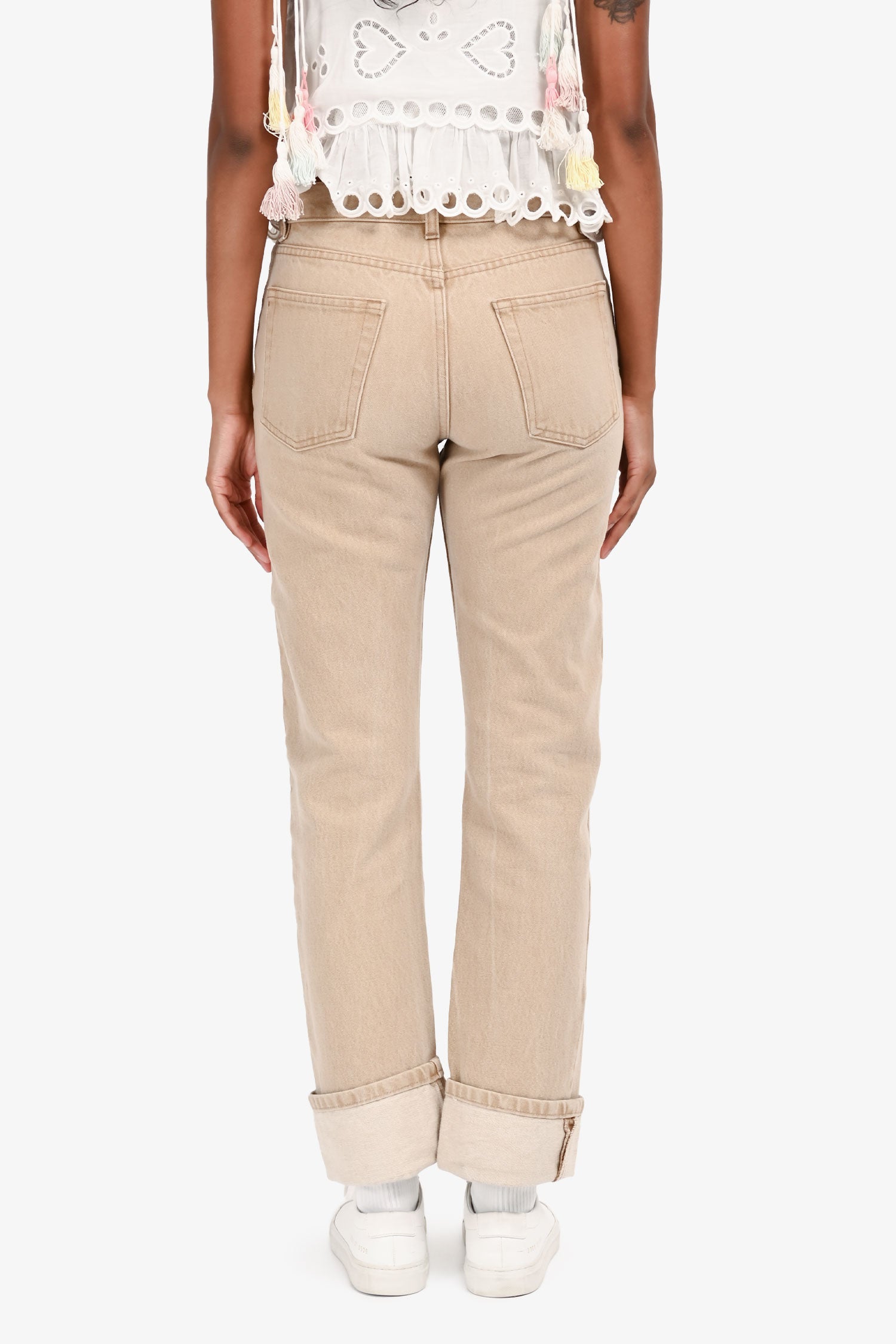 Refresh availabilityHelmut Lang Beige Straight Leg Cuff Denim. Multi-buttoned closure. 5 slip pockets. Tonal stitching.
