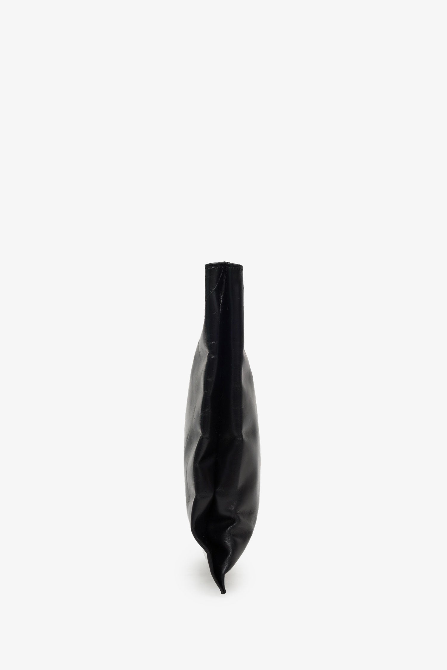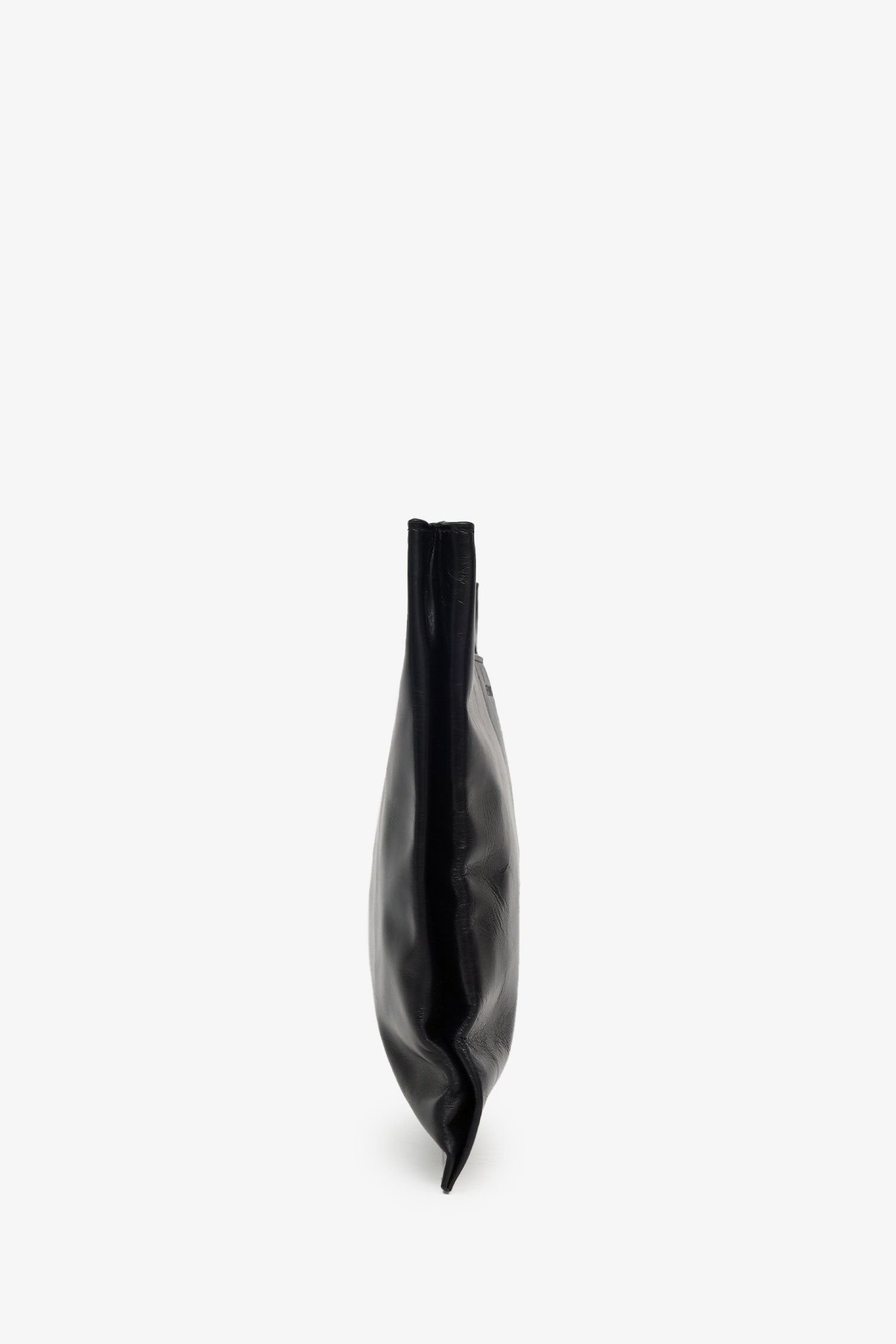 Refresh availabilityHelmut Lang Black Leather Cut-out Handle Flat Clutch. Top open. Twin top handles. Open lined interior with 2 pockets; 1 slip, and 1 zip. Silver-tone hardware. Tonal stitching.