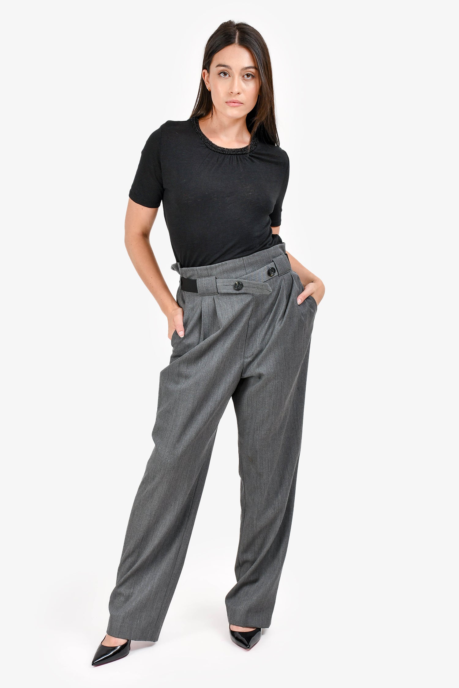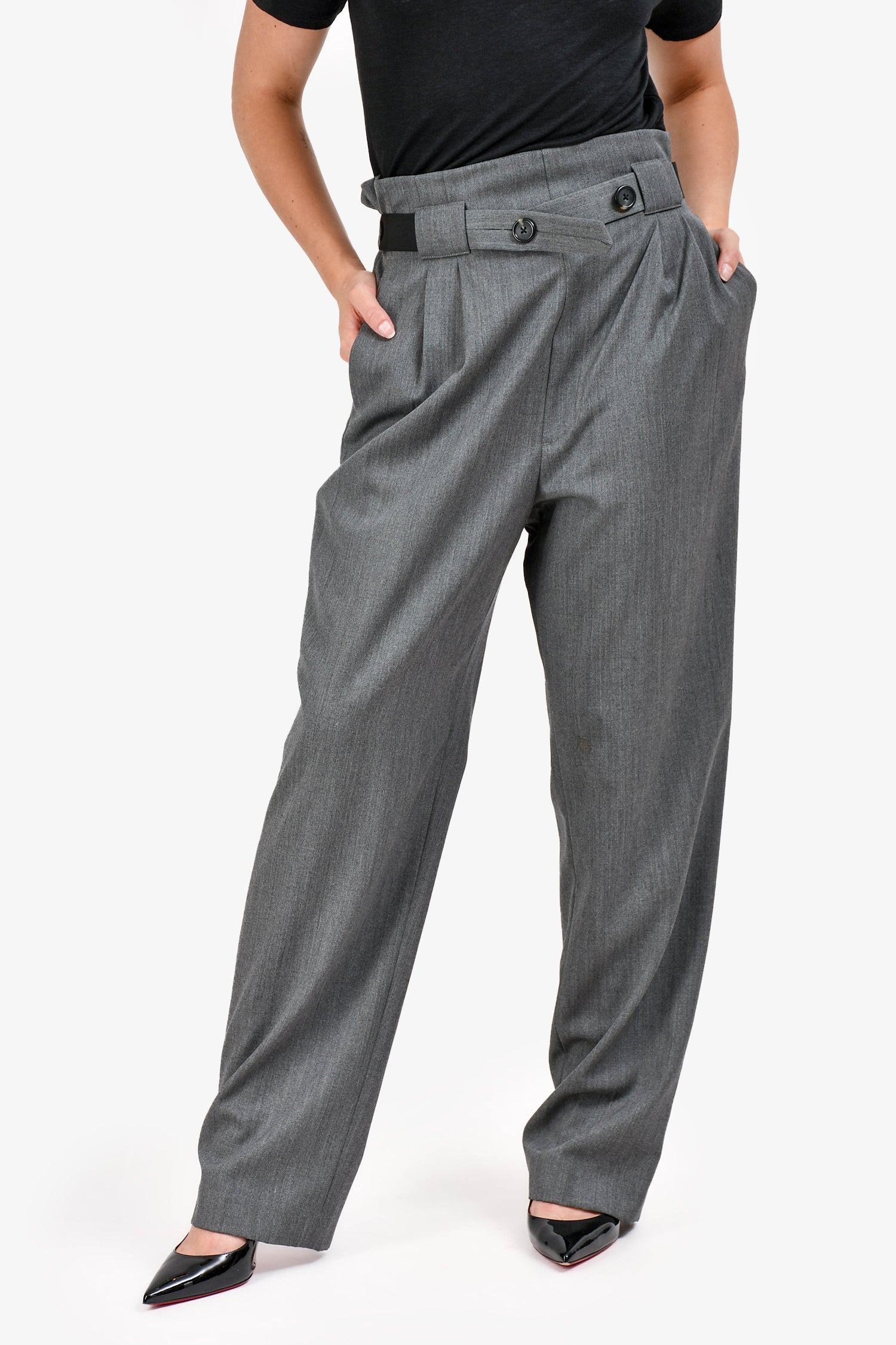 Helmut Lang Grey Belt Detailed High Waisted Wide Legged Pants Size 4