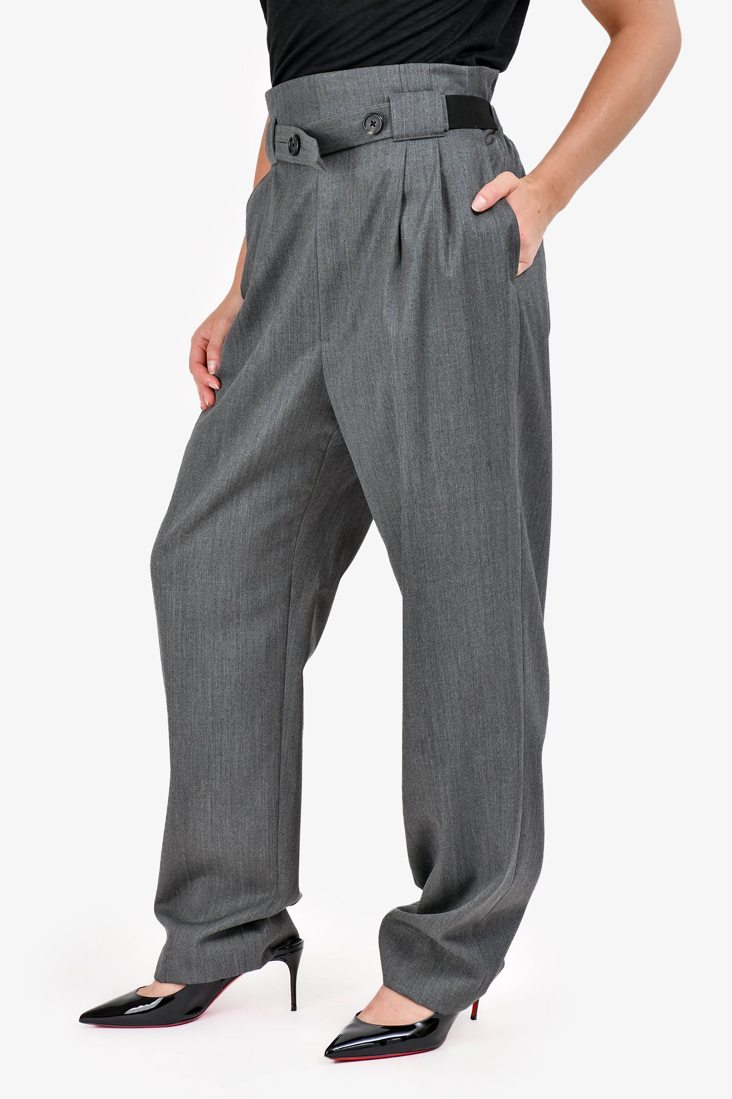 Refresh availabilityHelmut Lang Grey Belt Detailed High Waisted Wide Legged Pants. High-rise waist with matching belt. Elasticized back waistband. Side pockets and back. Tonal stitching.