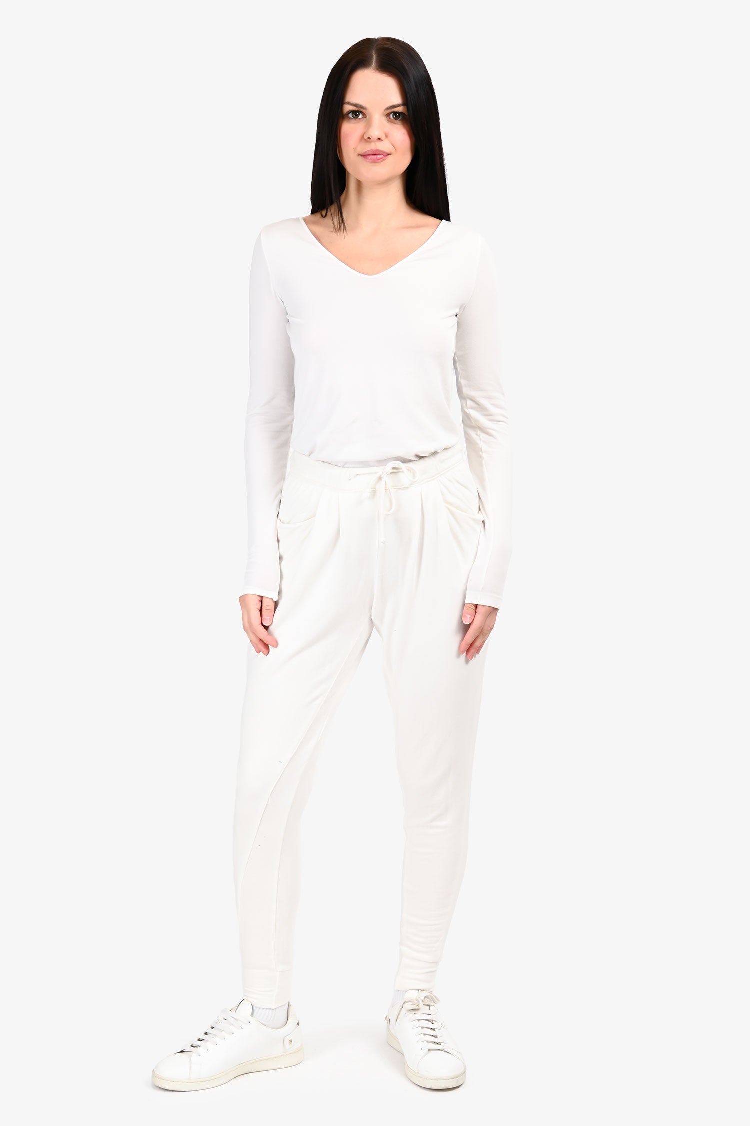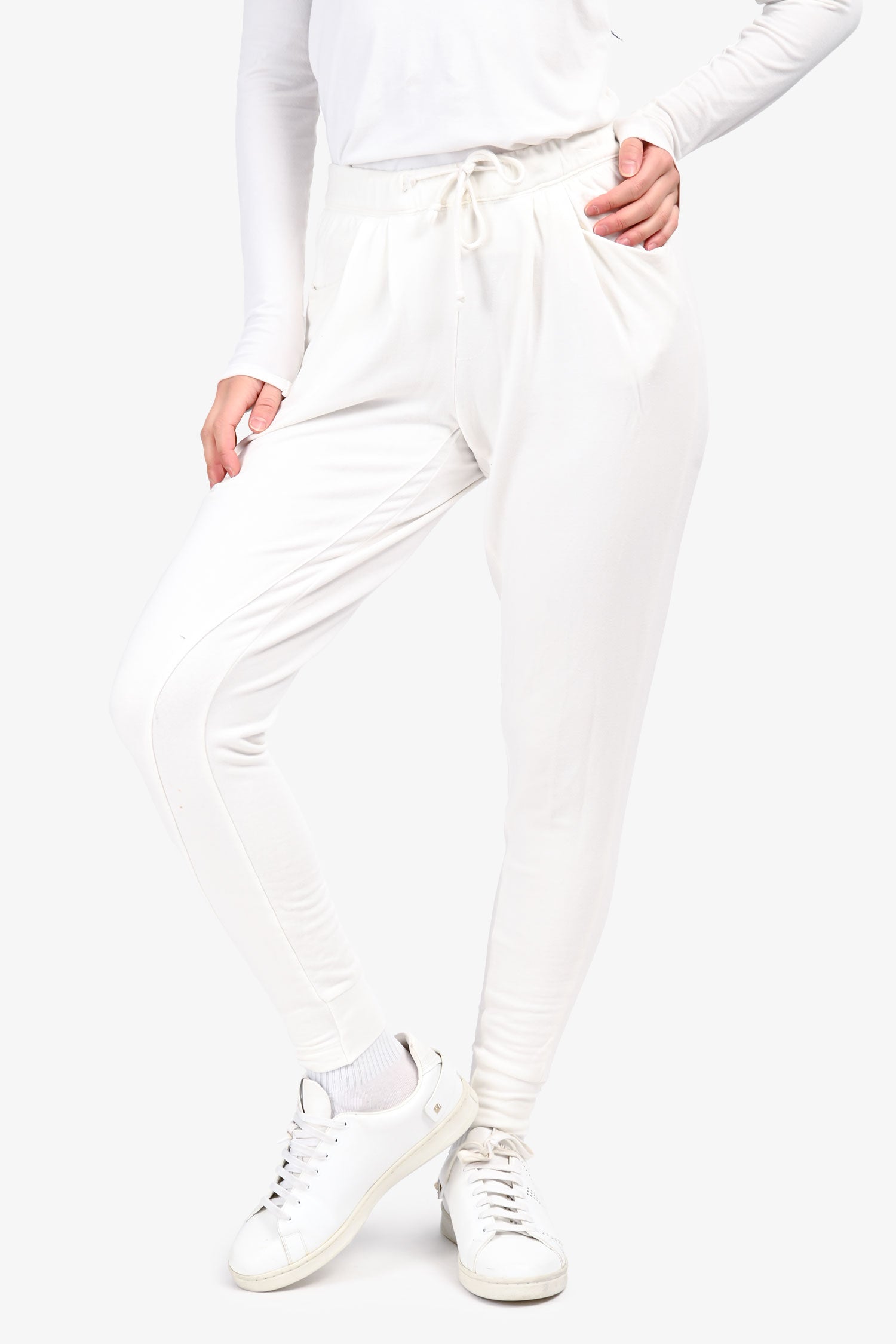 Refresh availabilityHelmut Lang White Cotton Joggers. Elasticized waistband with adjustable drawstring. 2 exterior side slip pockets; 2 rear patch pockets. Tonal stitching.