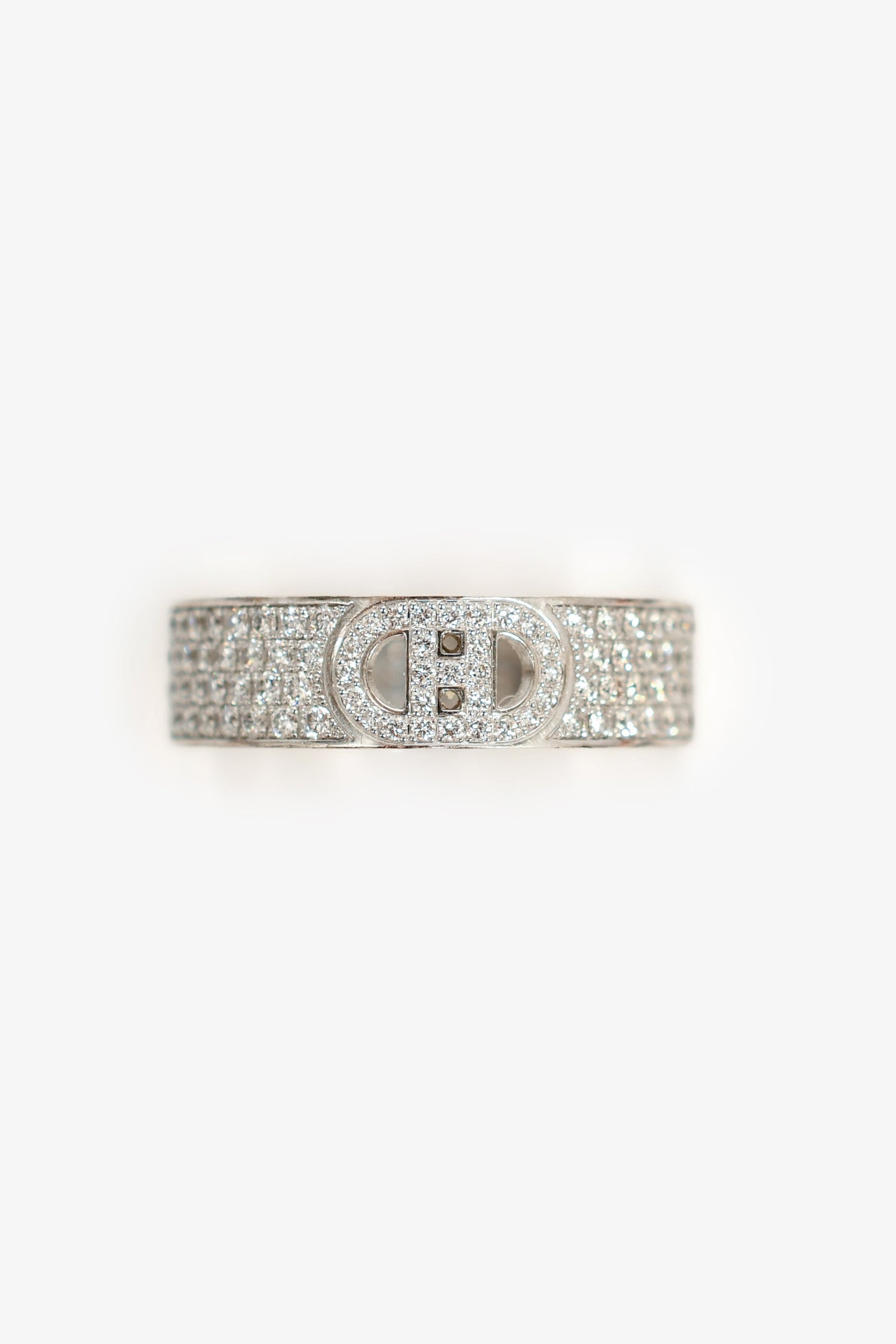 Hermès 18K White Gold Diamond Small H d'Ancre Ring Size 54