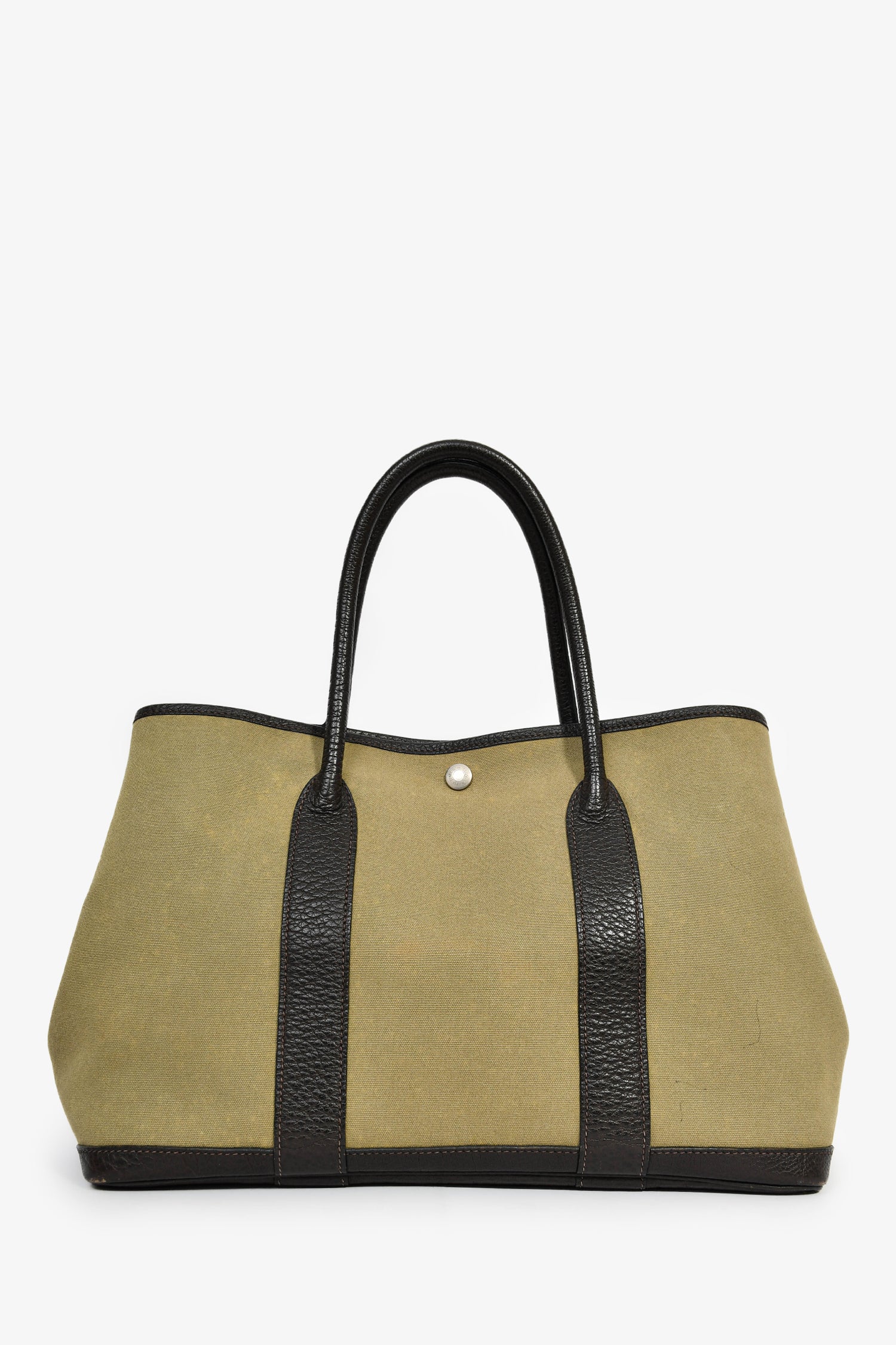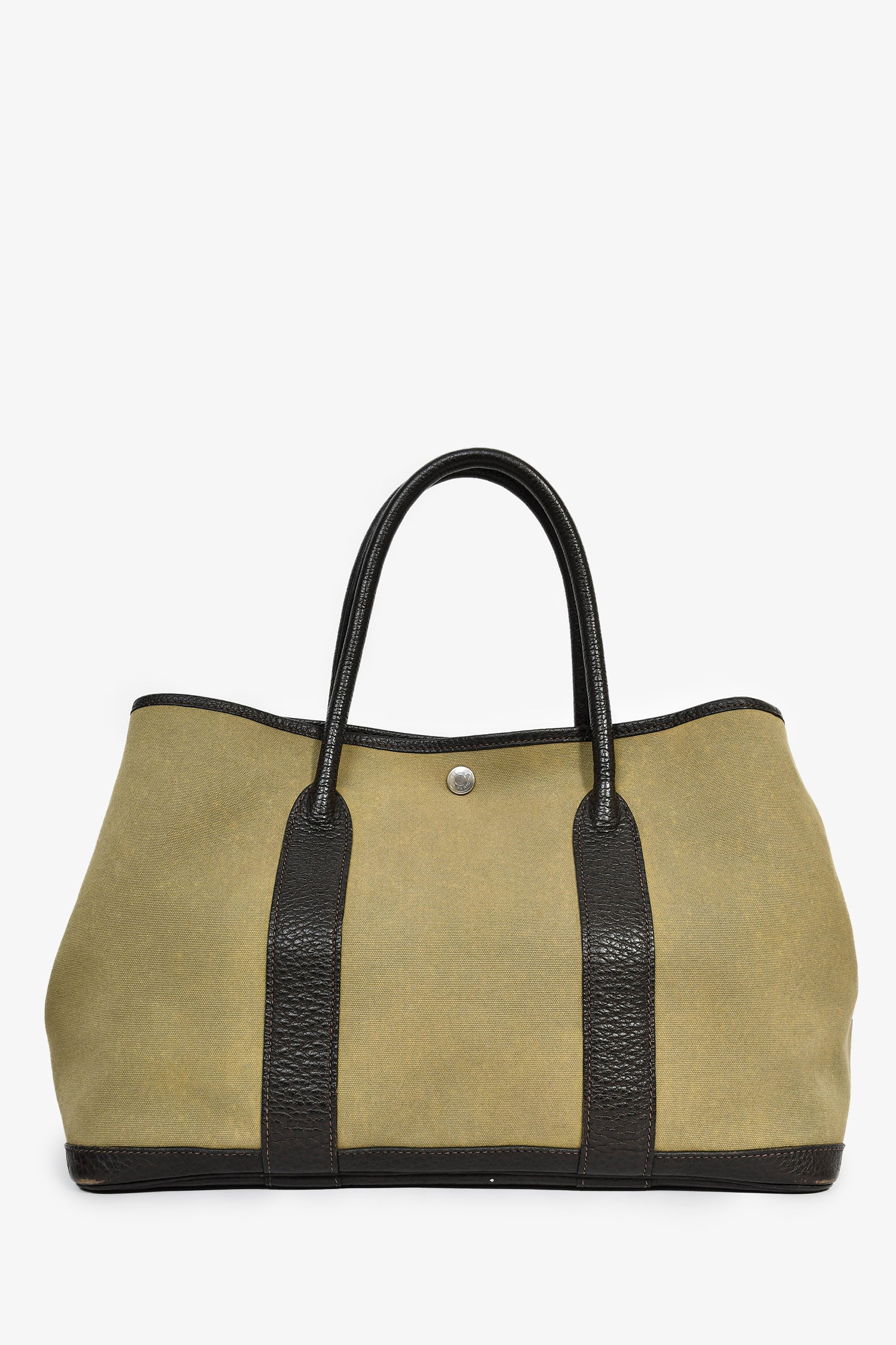 Hermès 2003 Green/Brown Canvas/Leather Garden Party 36