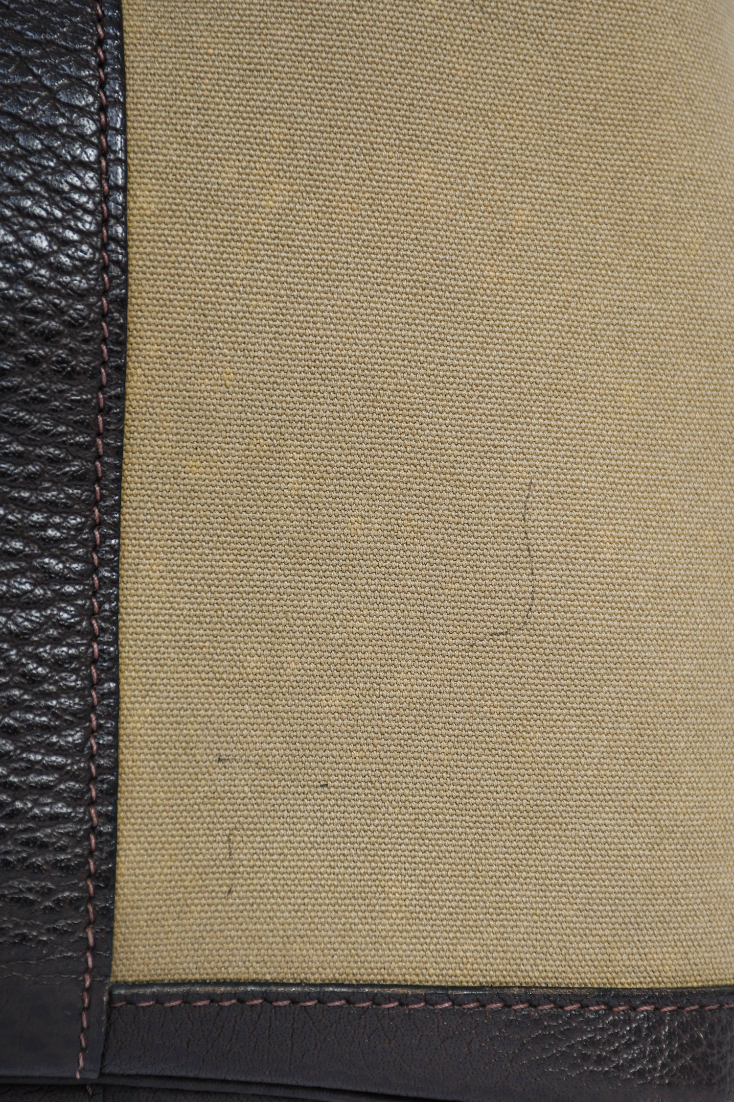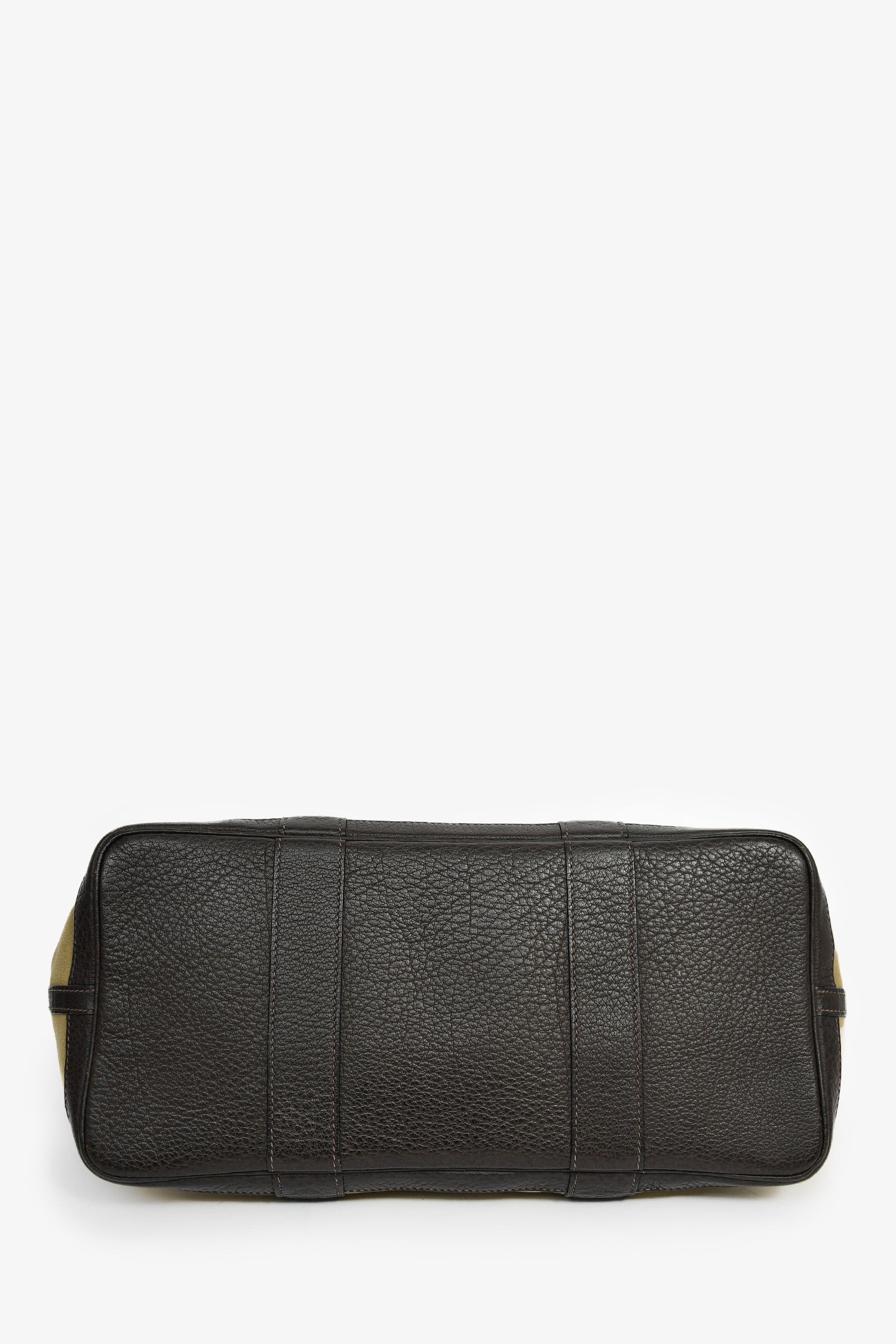 Refresh availabilityHermès 2003 Green/Brown Canvas/Leather Garden Party 36. Green canvas body with brown leather trim and handles. Snap button closure at top. Tonal stitching.
