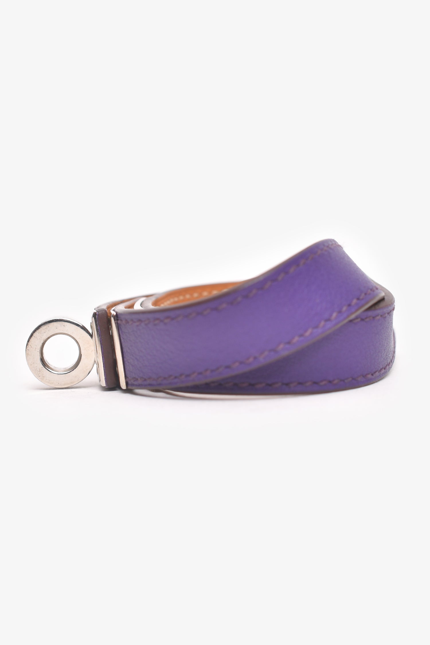 Refresh availabilityHermès 2010 Purple Swift Leather Double Tour Bracelet. Turn-lock closure. Silver-tone hardware. Tonal stitching.