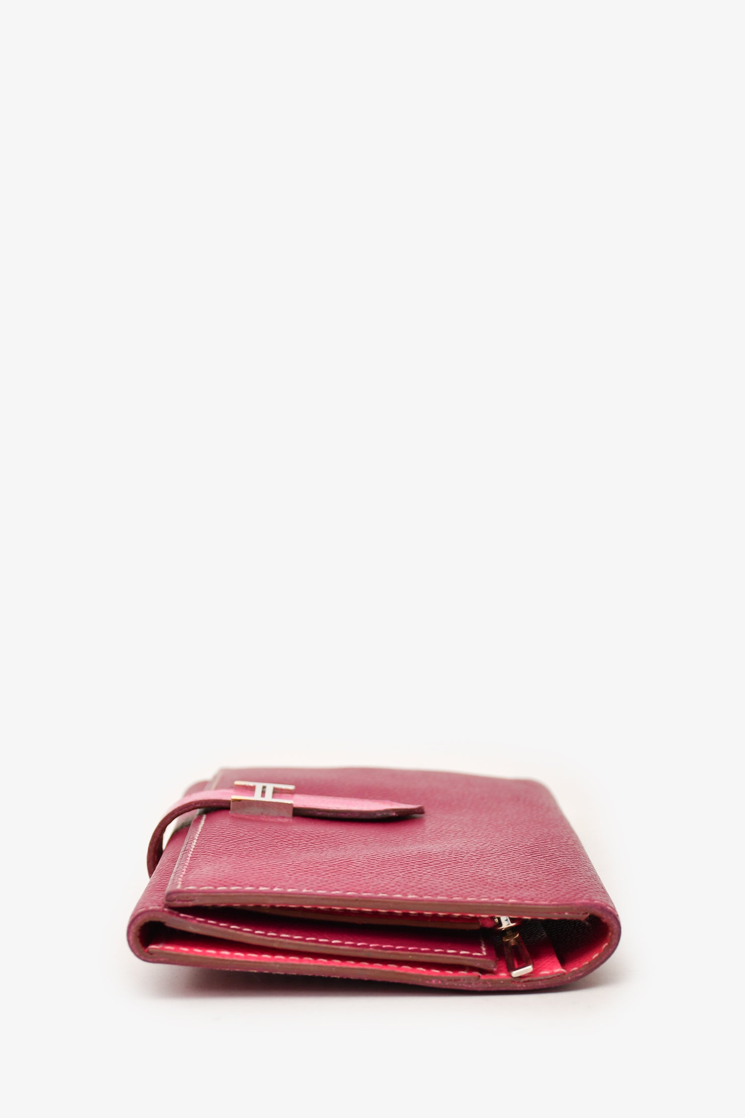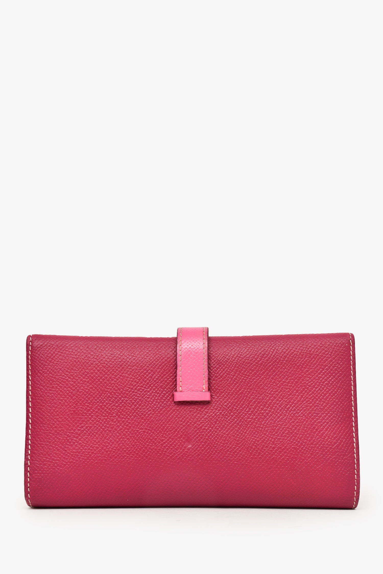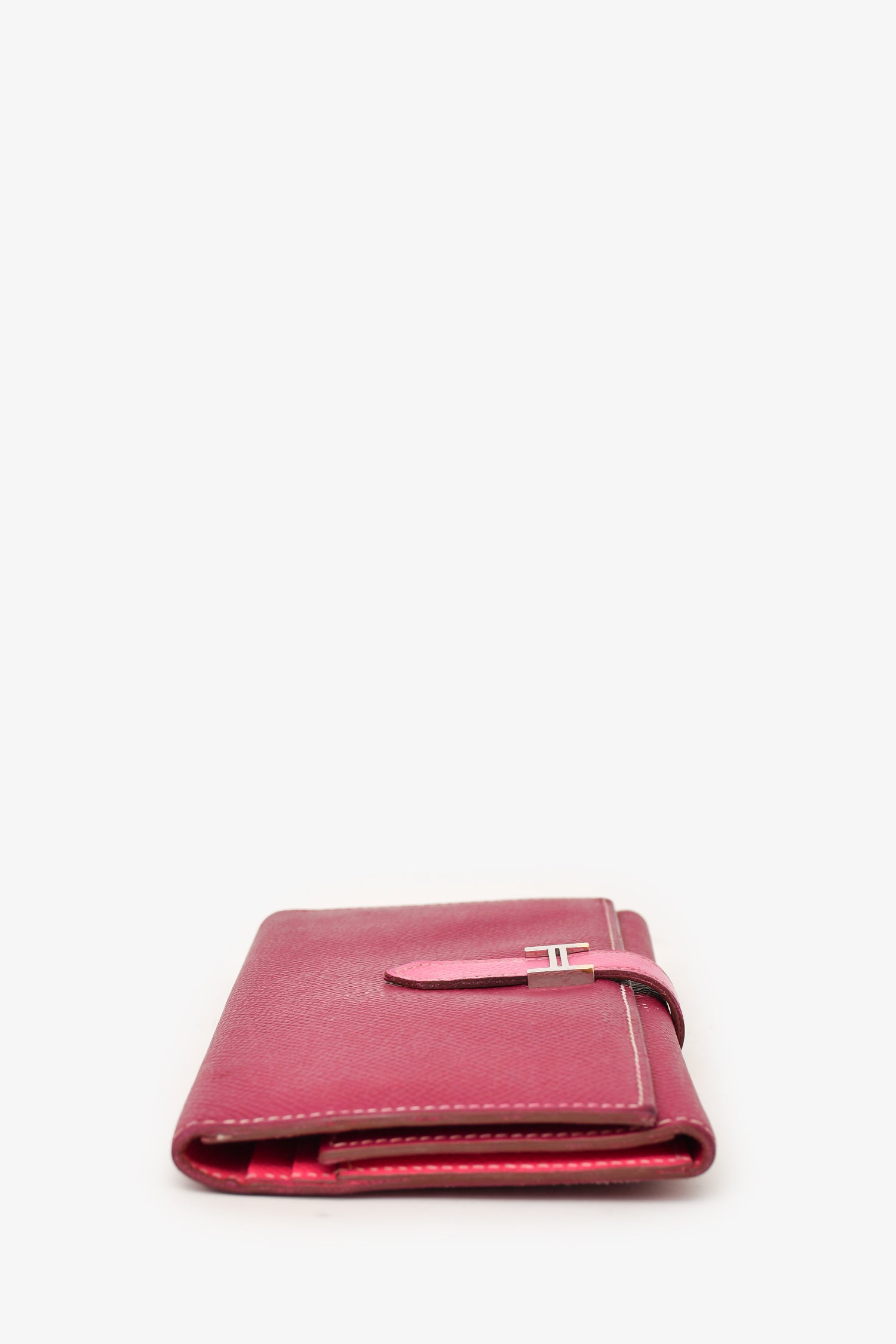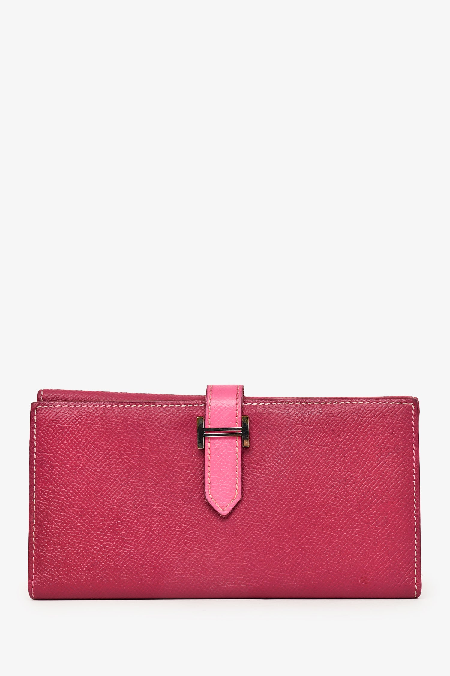 Refresh availabilityHermès 2012 Pink/Purple Epsom Long Bearn Wallet. Ten cardholders. Six interior pockets, One with zipper closure. Silver-tone hardware. Front flap closure. Contrast stitching.