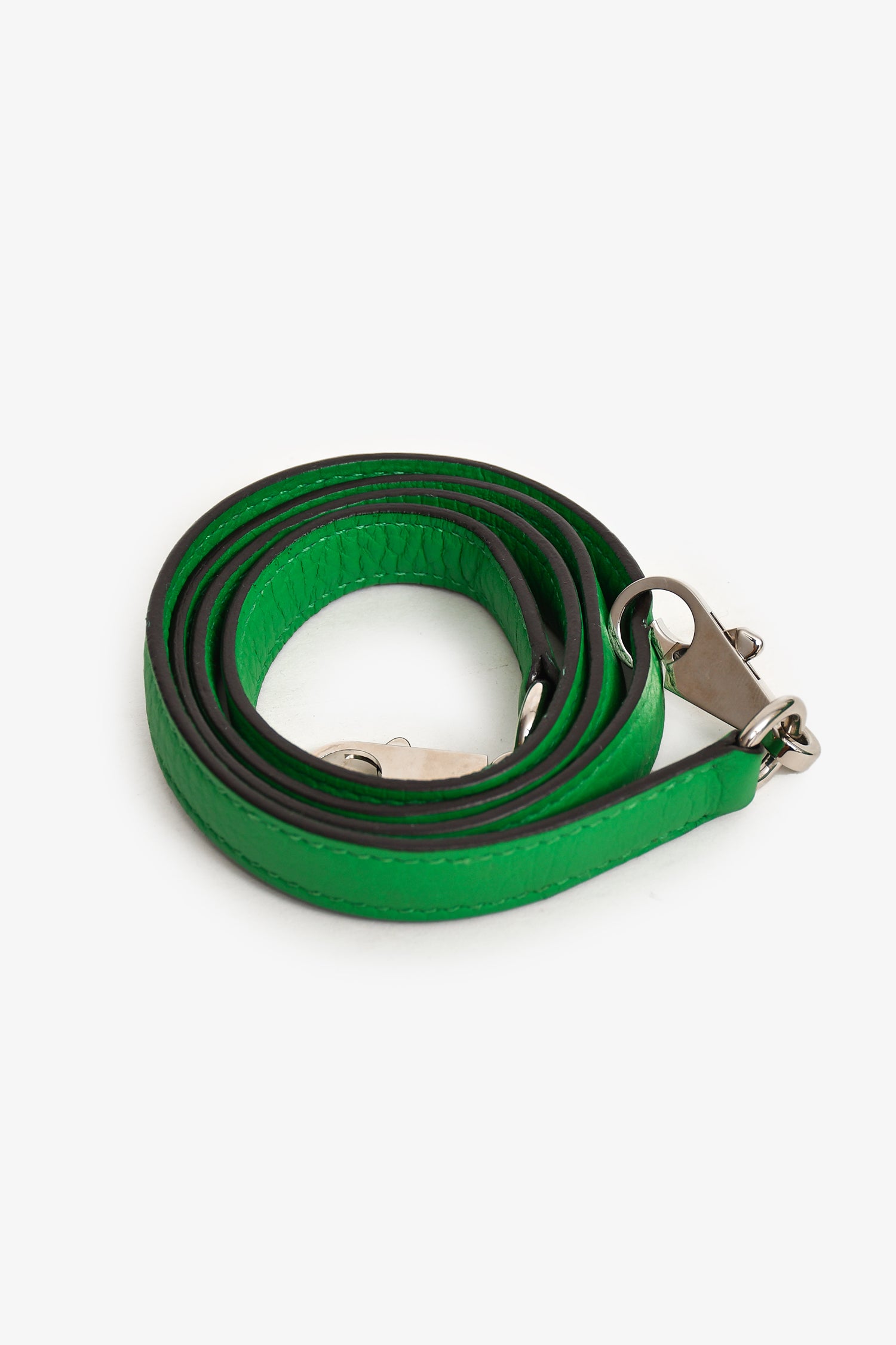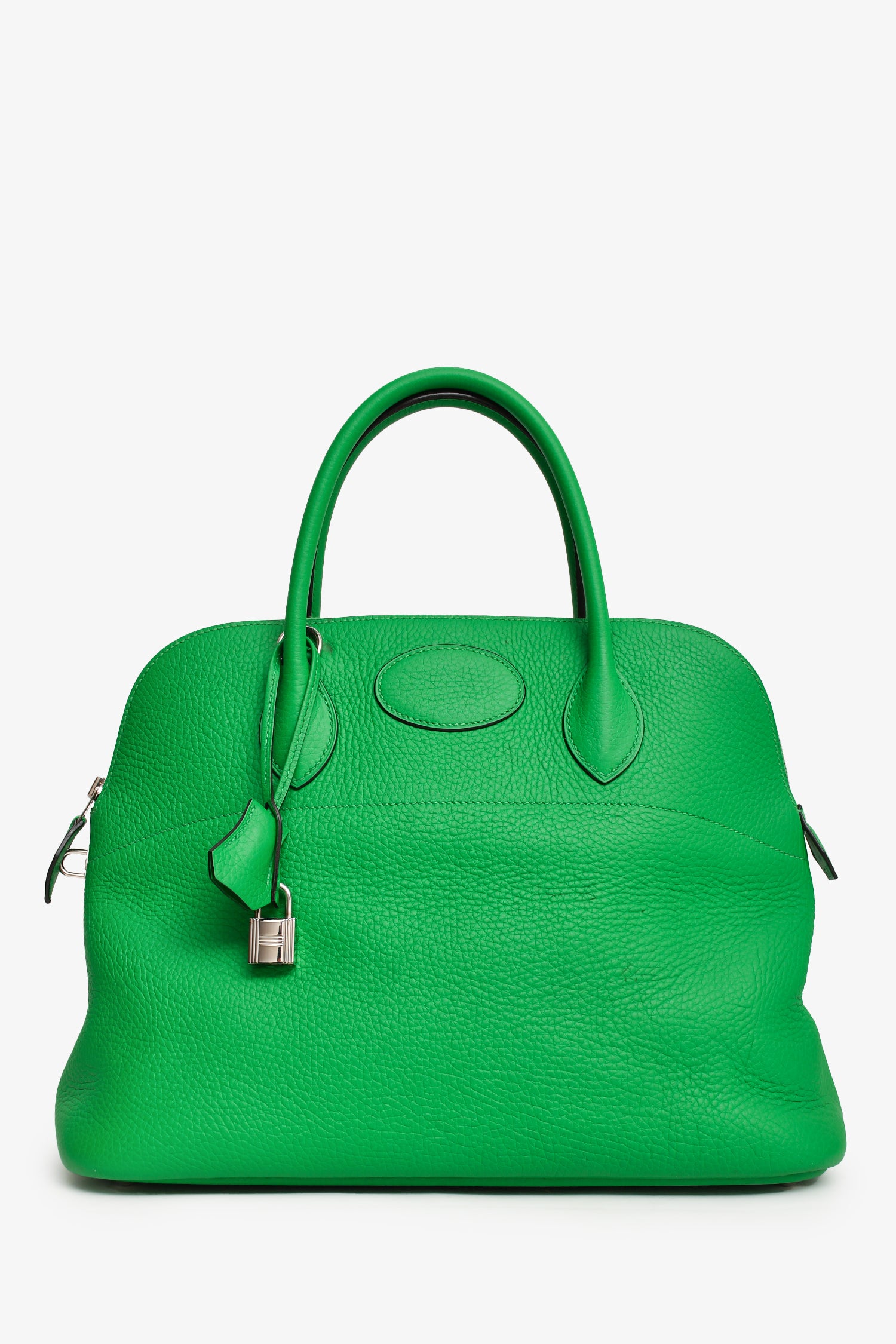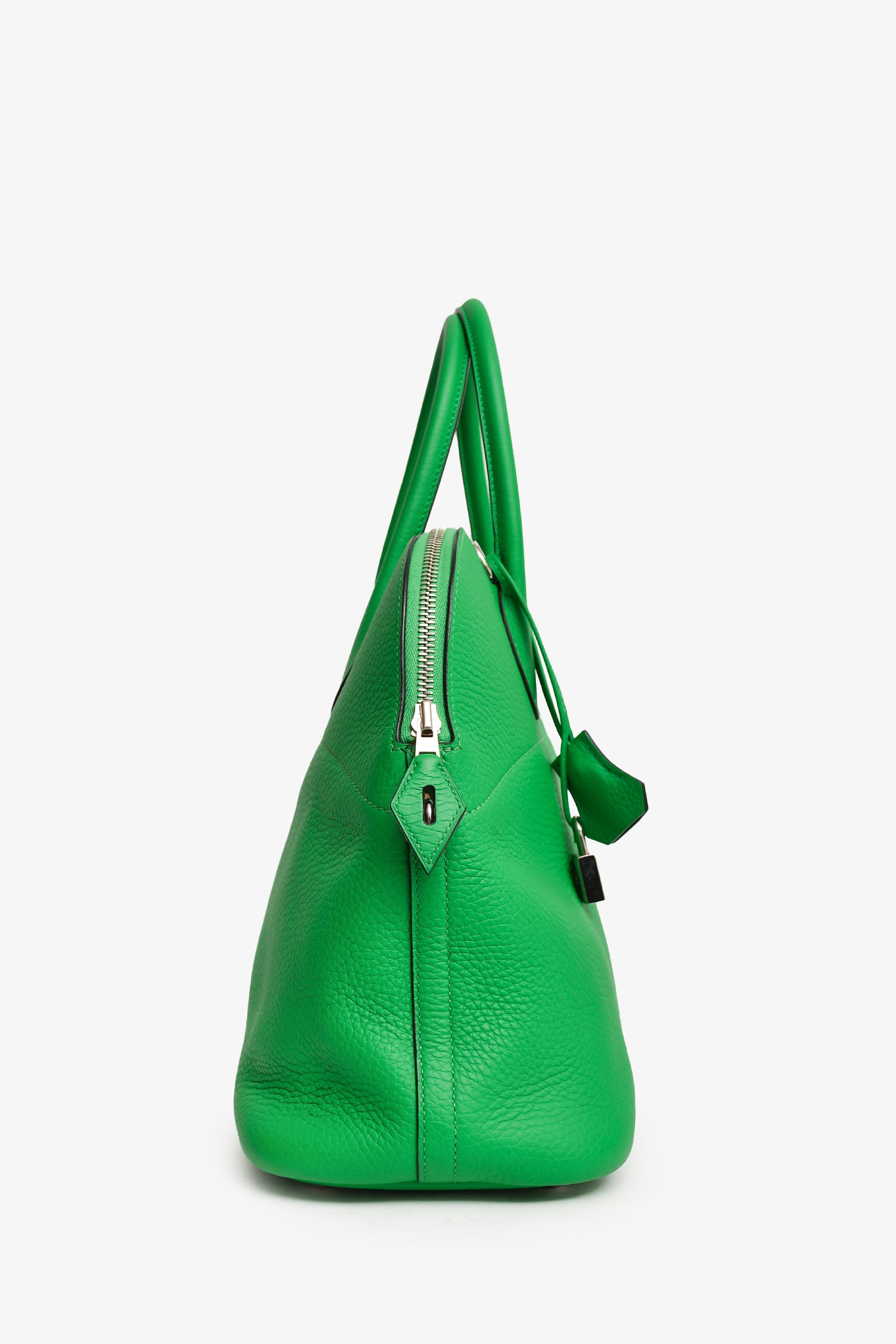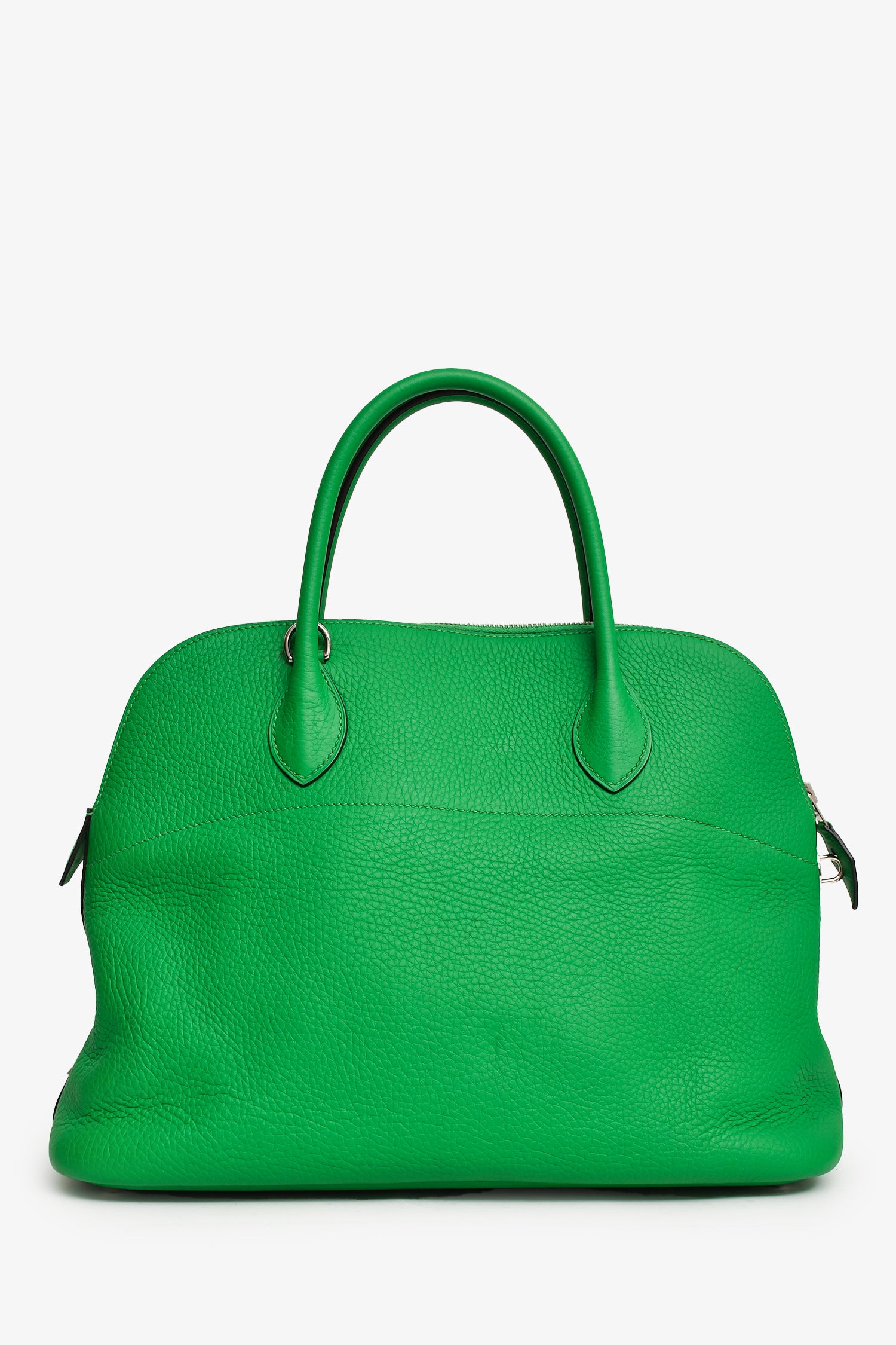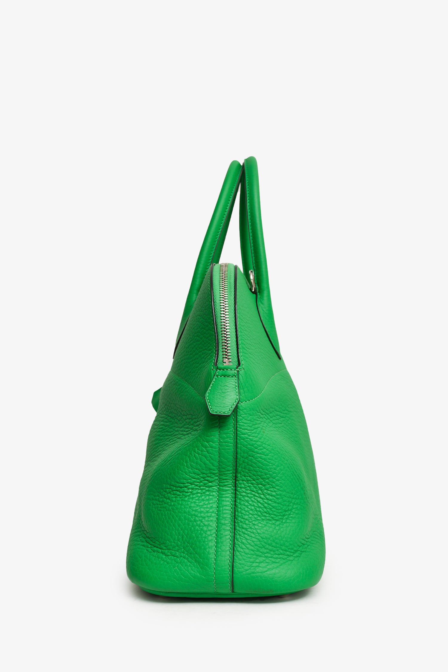 Refresh availabilityHermès 2014 Green Clemence Leather Bolide 34 PHW with Strap. Top zipper closure. Interior pocket. Detachable strap. Silver-tone hardware. Tonal stitching.