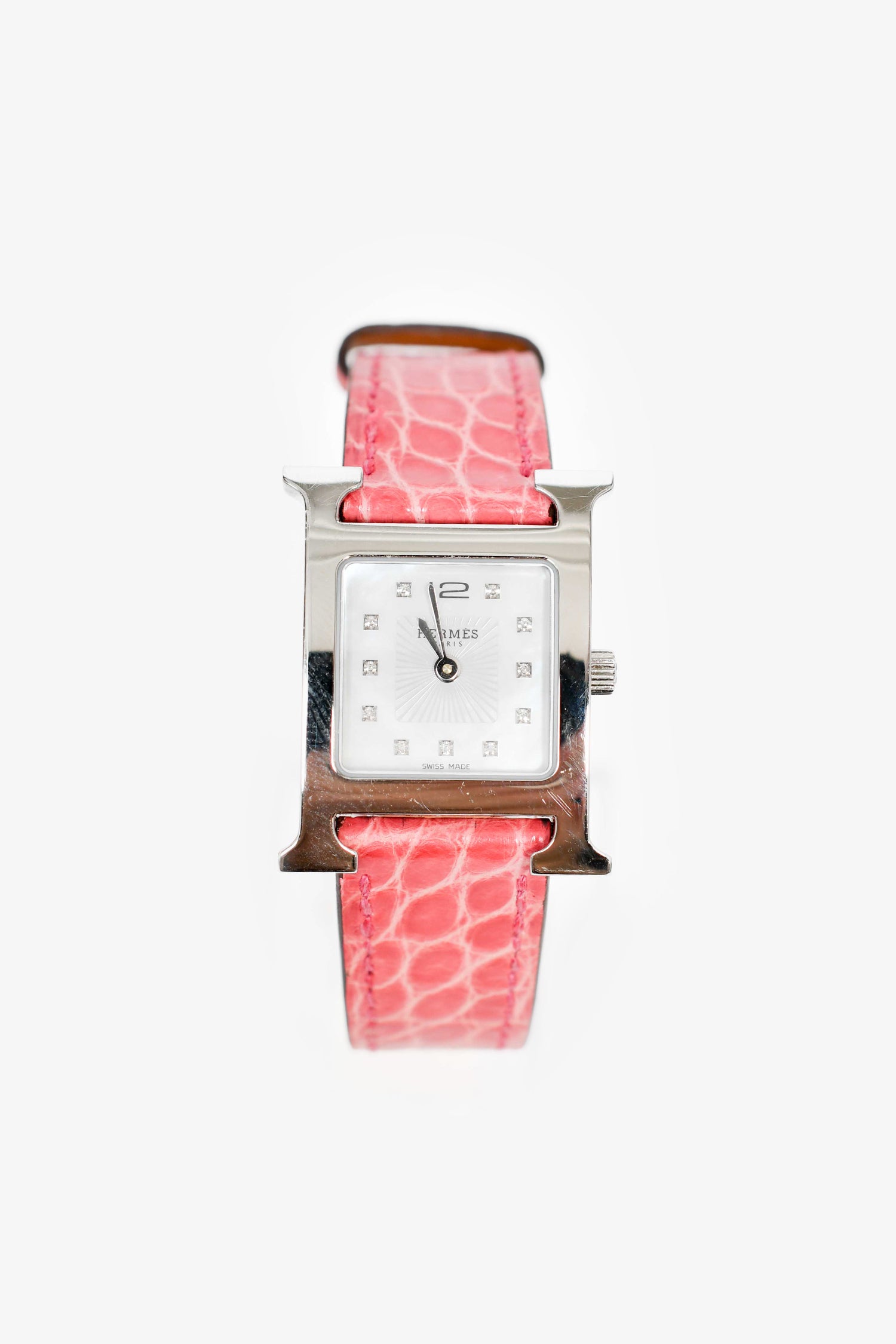 Hermès 2014 Pink Alligator Stainless Steel H Heure Watch