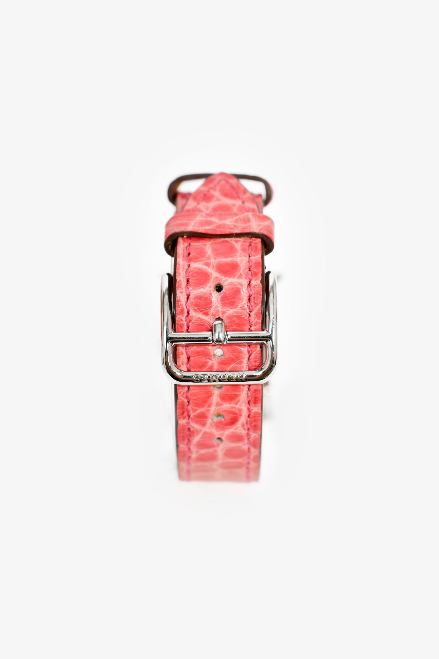 Refresh availabilityHermès 2014 Pink Alligator Stainless Steel H Heure Watch. Push tab buckle closure. Square face.